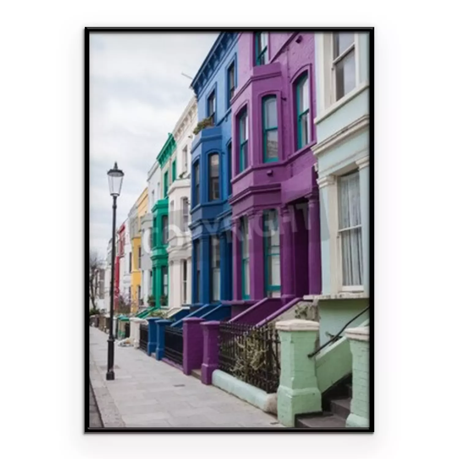 Poster: Londen en kleurrijke huizen op Notting Hill
