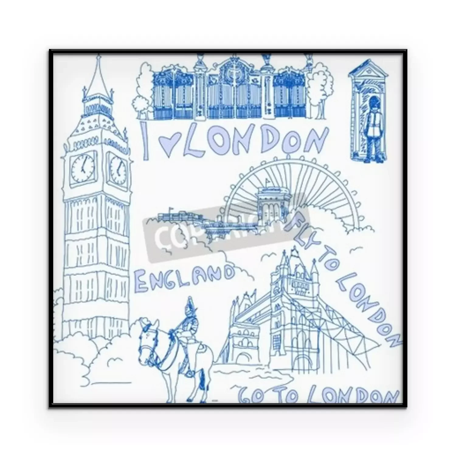 Poster: Londen en met de hand geschilderde symbolen