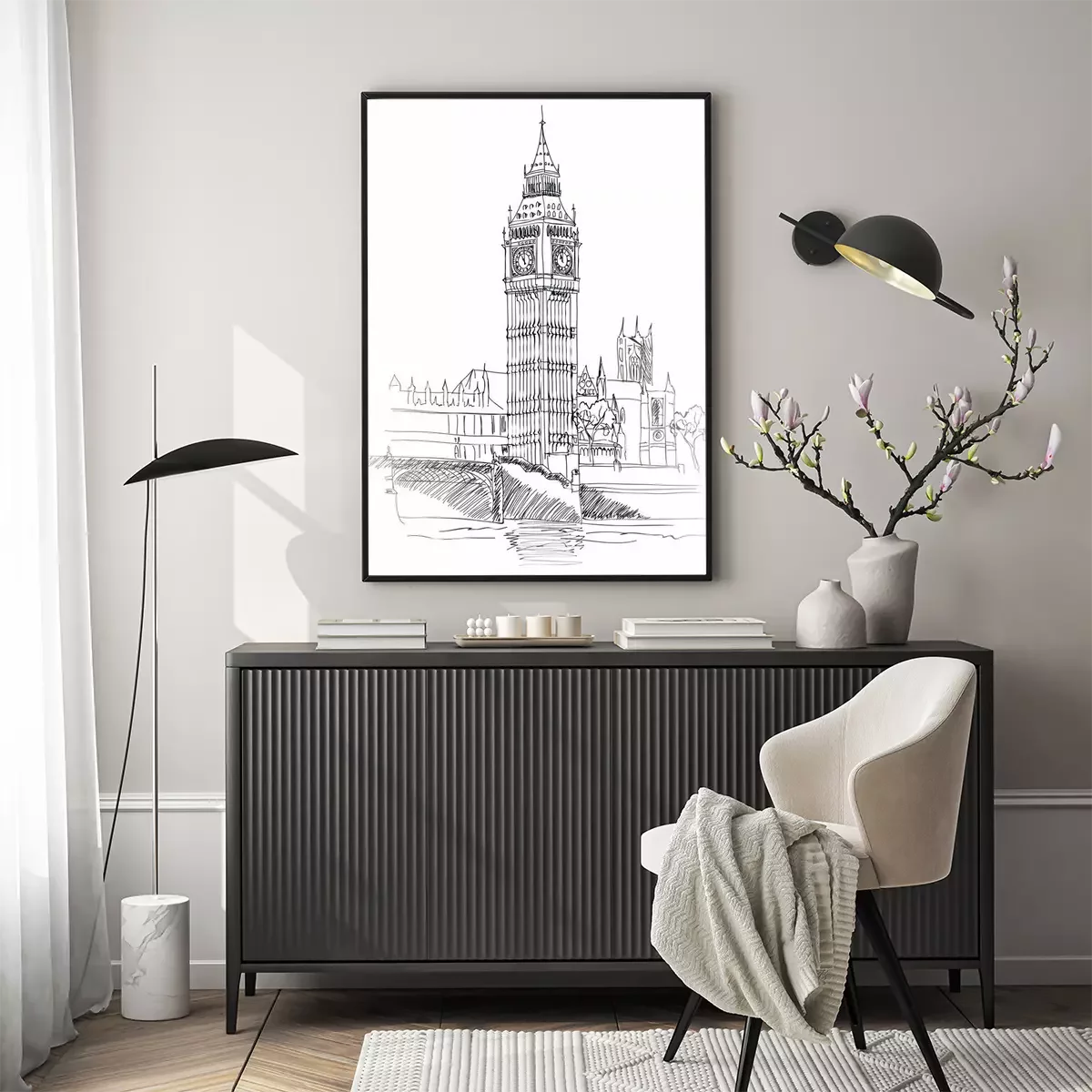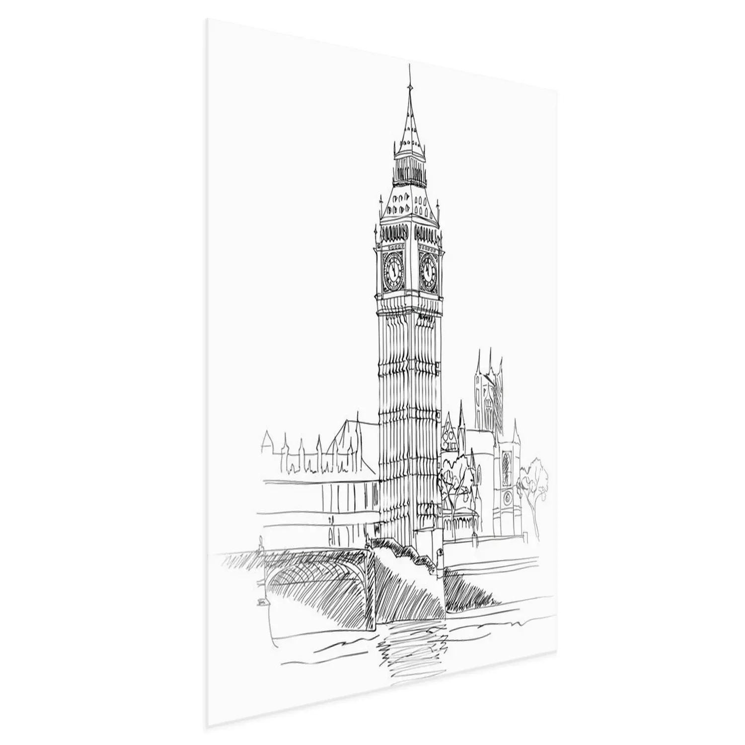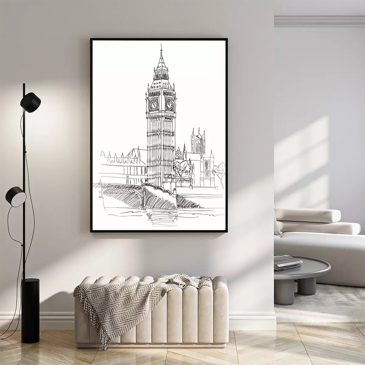 Poster Londen Landmark. Landschap van Londen. Big Ben toren. Vector hand getrokken schets Illustratie.