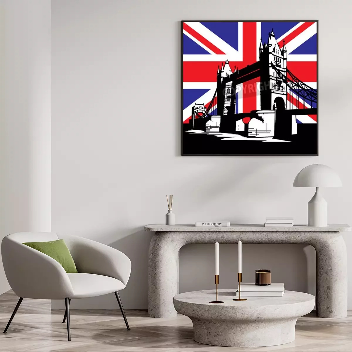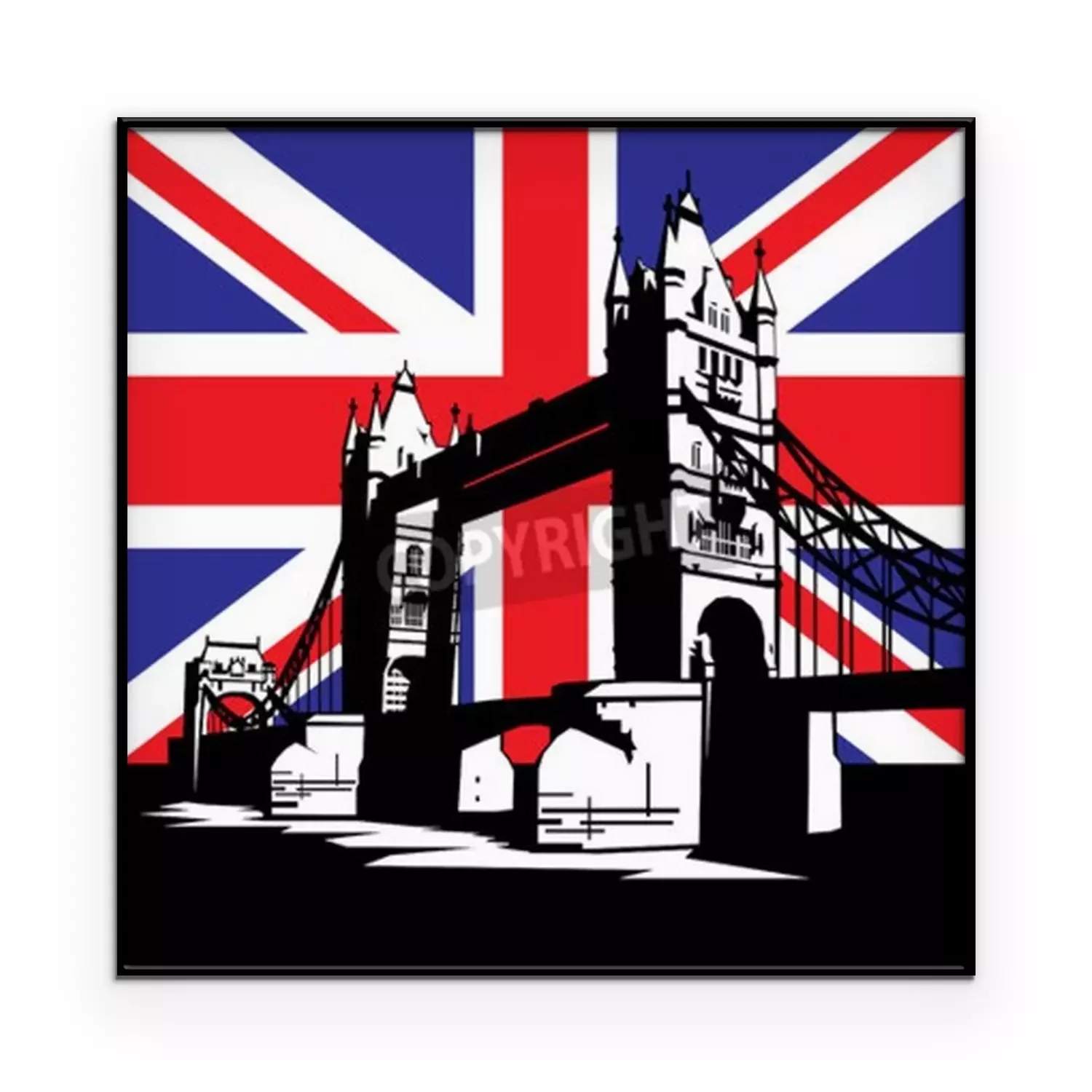Poster London Bridge tegen de achtergrond van de Britse vlag