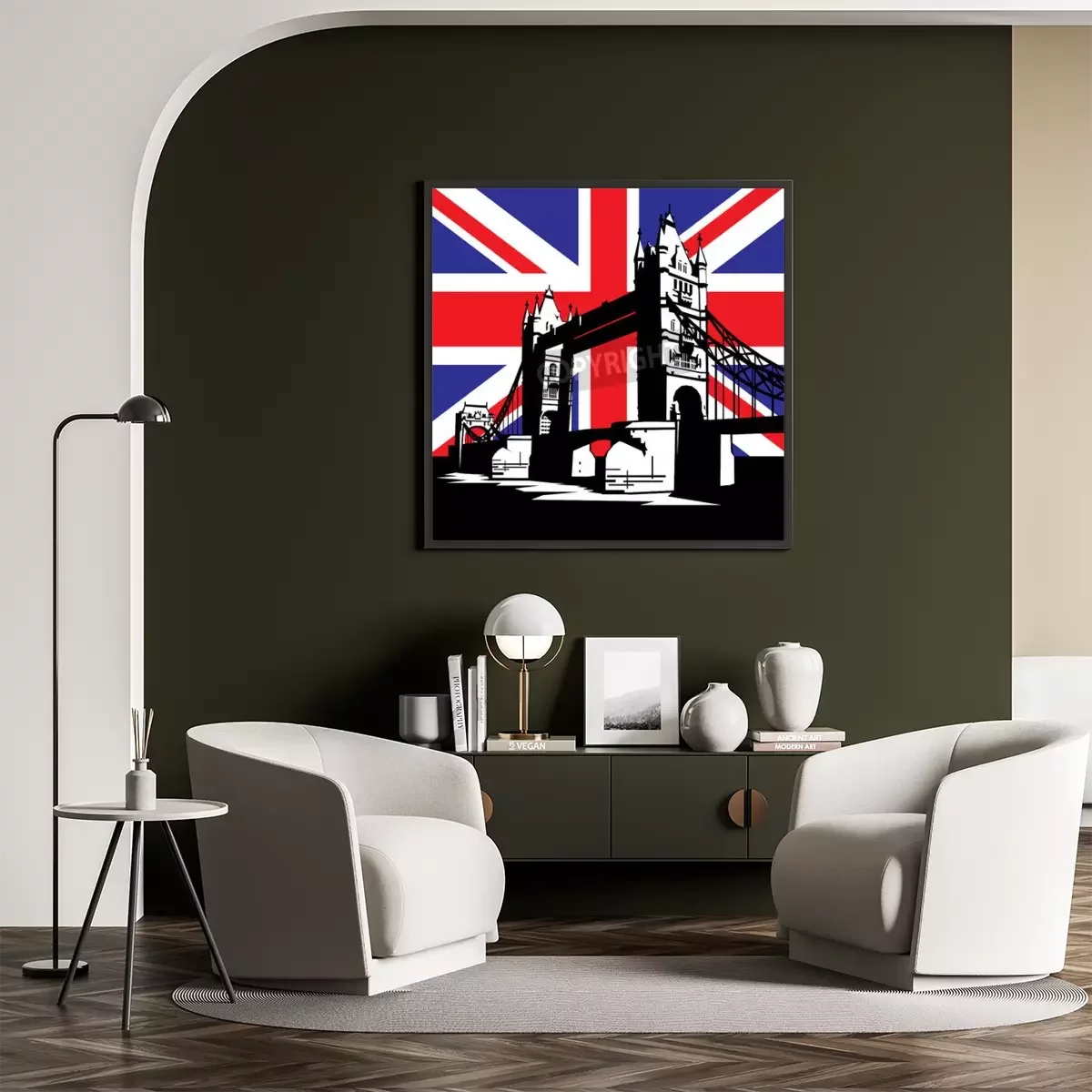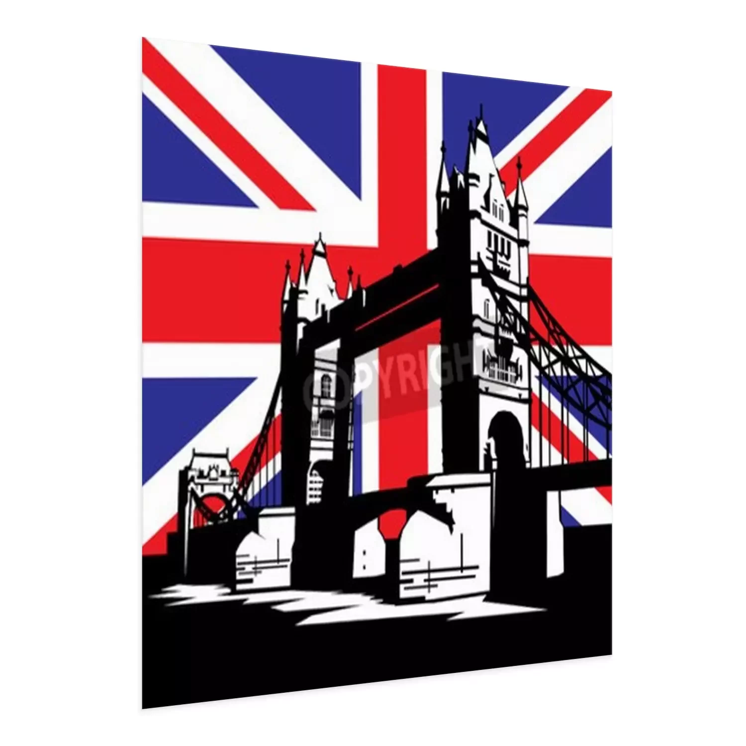 Poster: London Bridge tegen de achtergrond van de Britse vlag