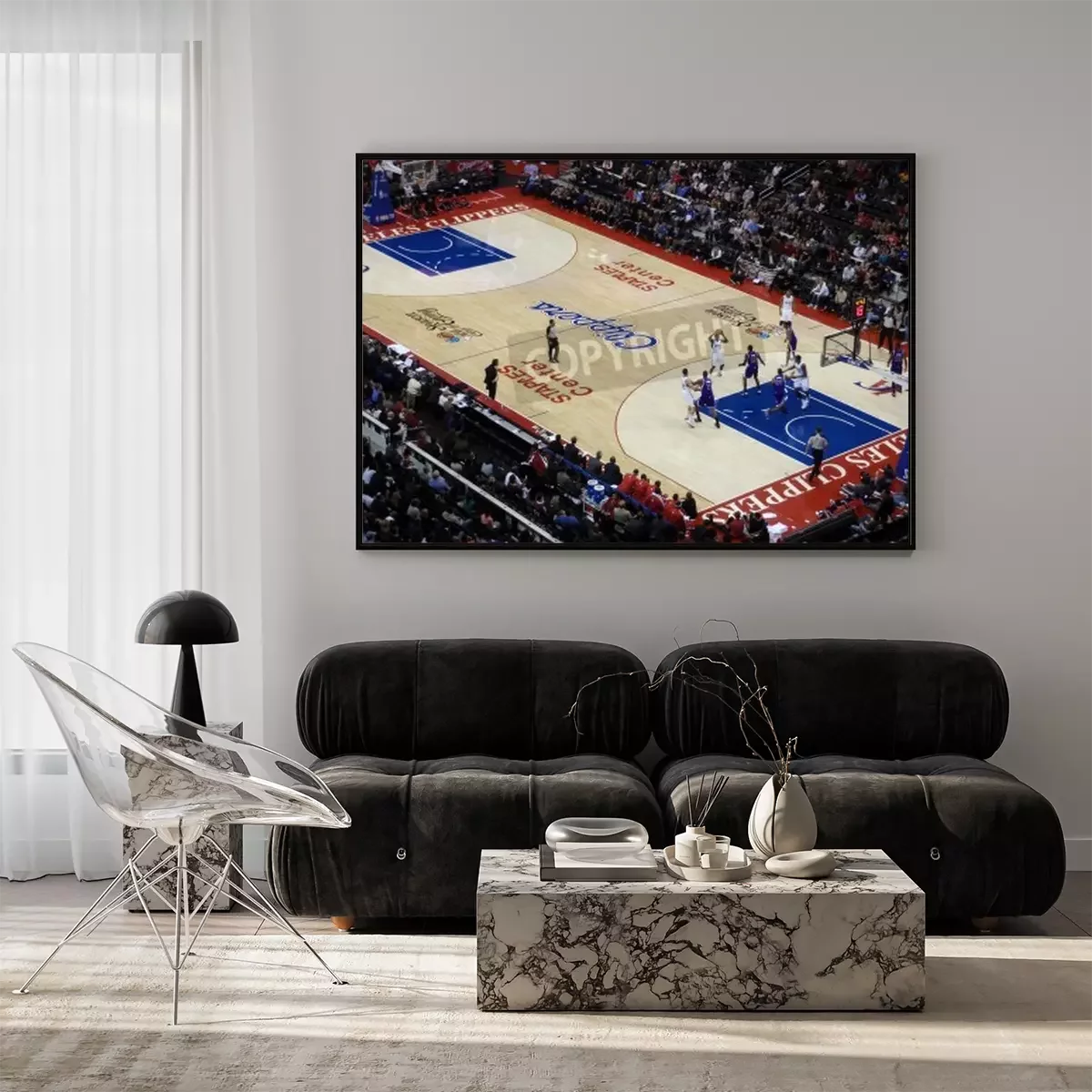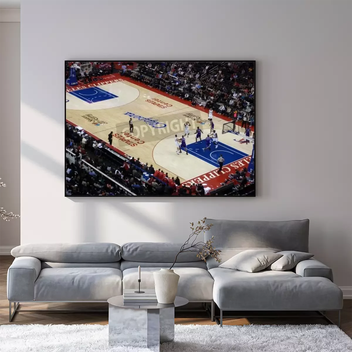 Poster LOS ANGELES, 25 november: Clippers versus Kings: Clippers speler houdt bal op zoek naar iemand die bij Staples Center doorgeven aan gehouden 25 november 2010 Los Angeles Californië.