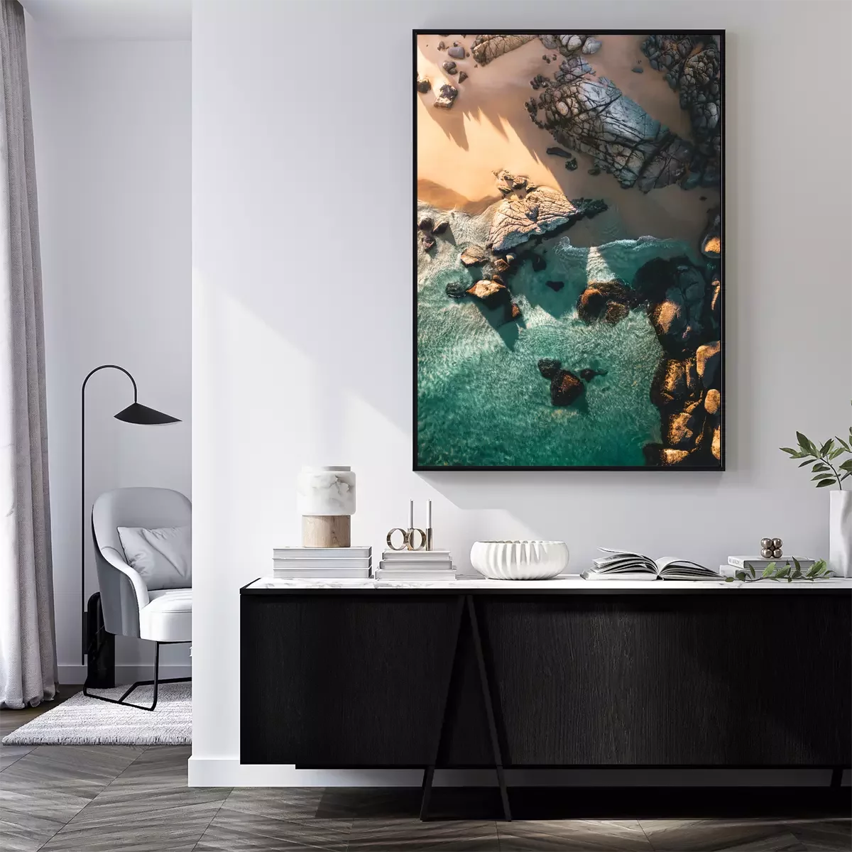Deze posters zijn gedrukt in zeer hoge resolutie (1440 dpi) op papier van uitstekende kwaliteit. Het gebruik van HP Latex-technologie zorgt voor jarenlang levendige kleuren die bestand zijn tegen de schadelijke effecten van UV-straling. Posters zien er geweldig uit in aluminium lijsten met een plexiglas plaat, wat het een elegant karakter geeft. Premium posters worden gedrukt op halfglanzend papier.