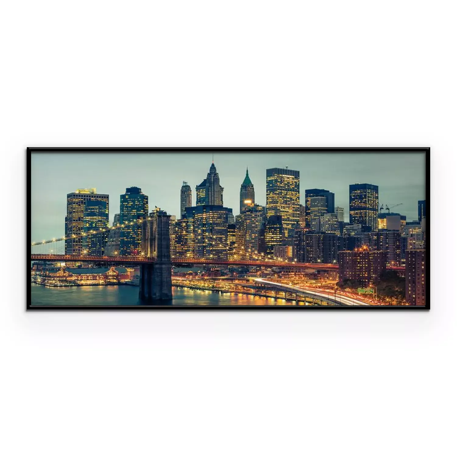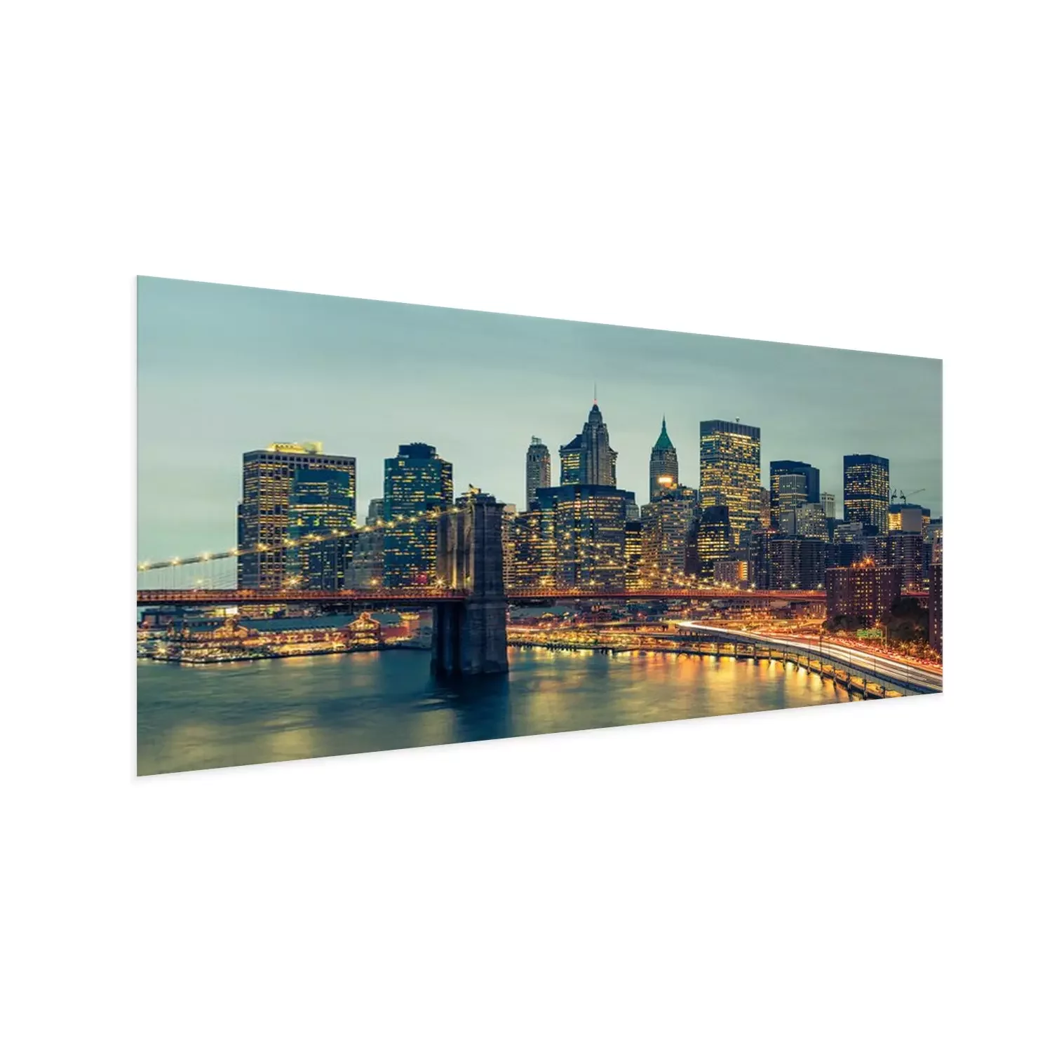 Manhattan bij nacht met uitzicht op de Brooklyn Bridge