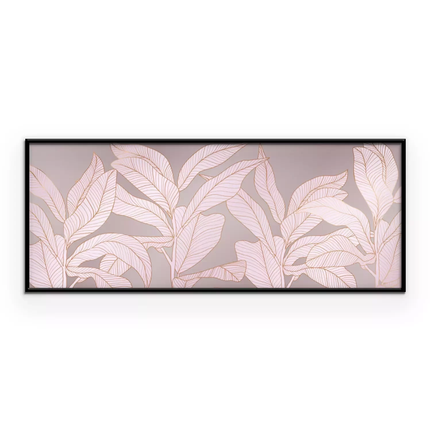 Poster Luxury rose gold and pink floral background vector. Botanical leaves pattern. Golden Wallpaper design with tropical plant line arts, Vector illustration.