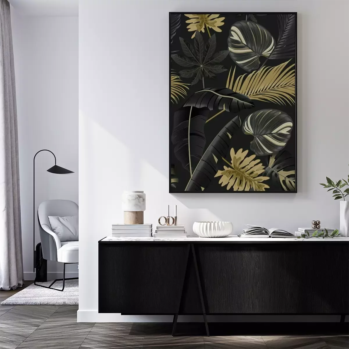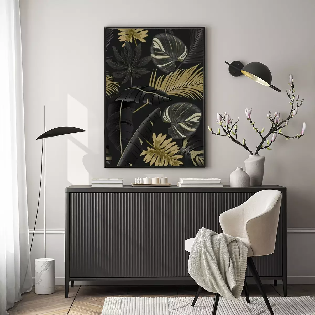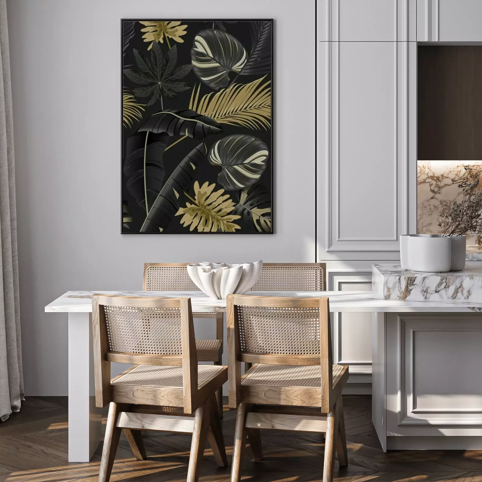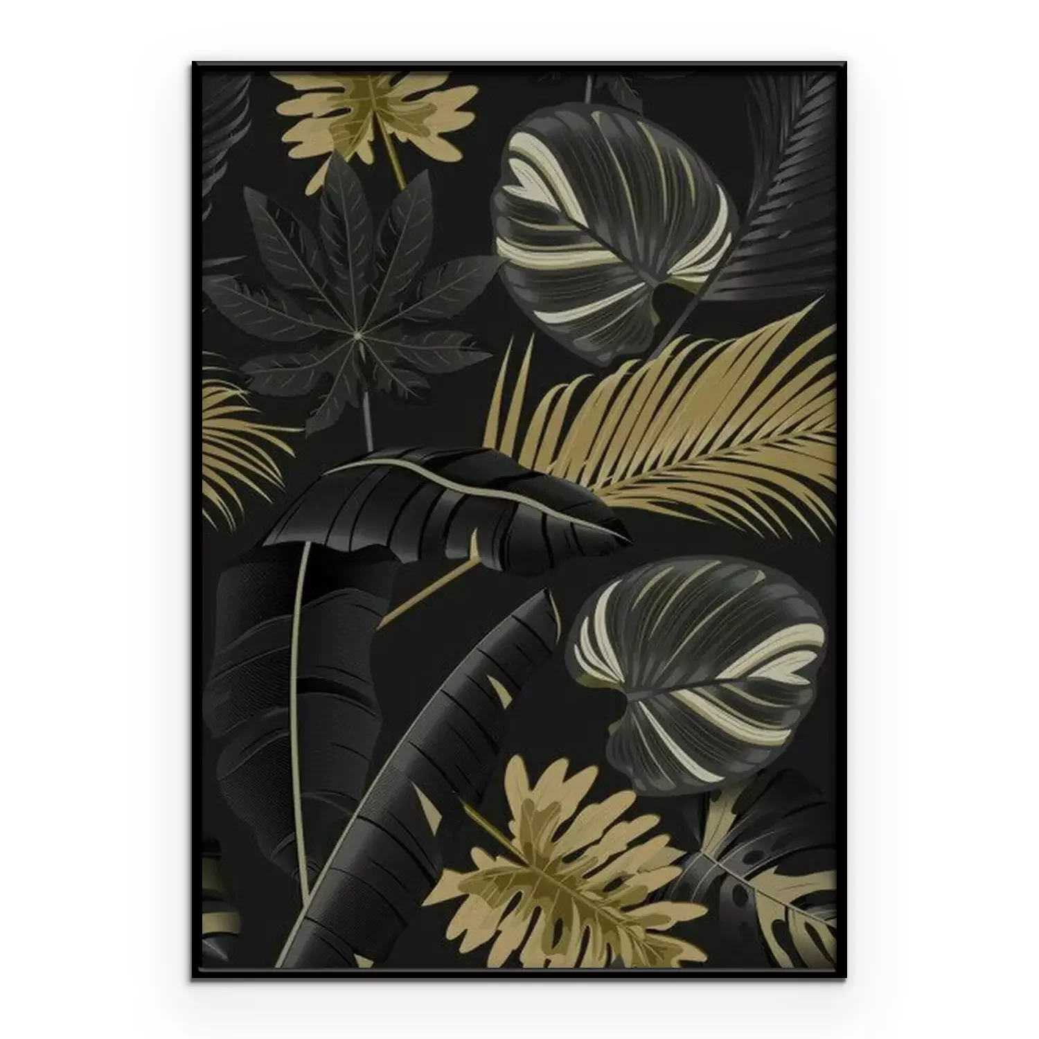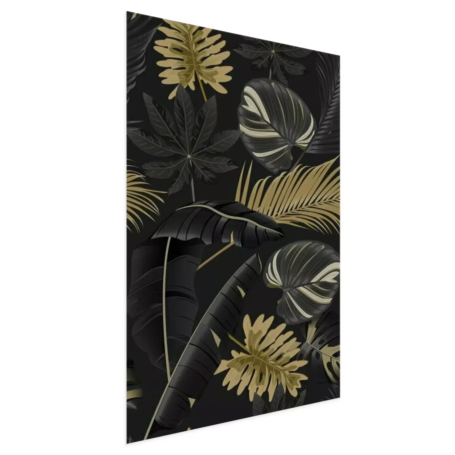 Poster Luxury seamless pattern with tropical leaves on dark background