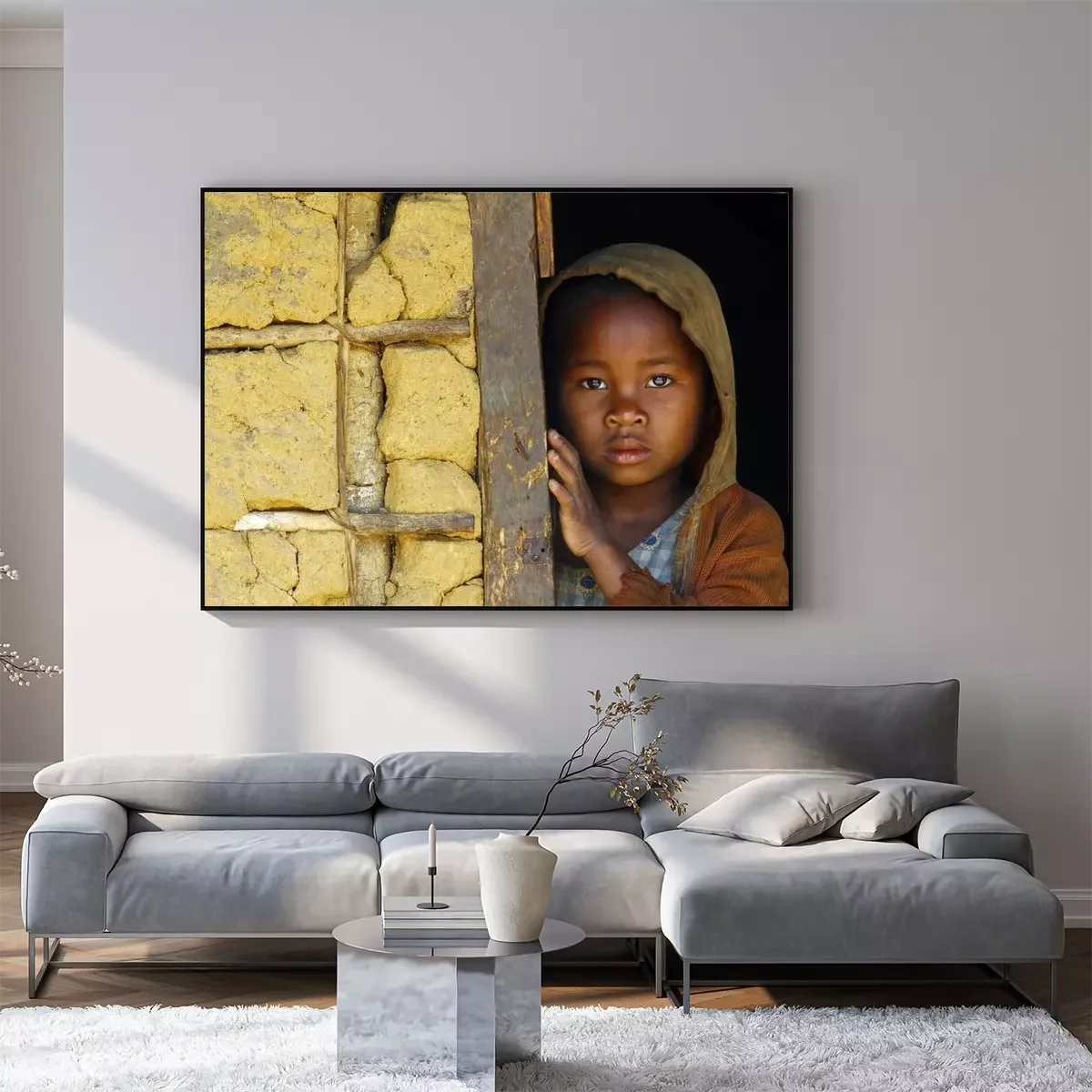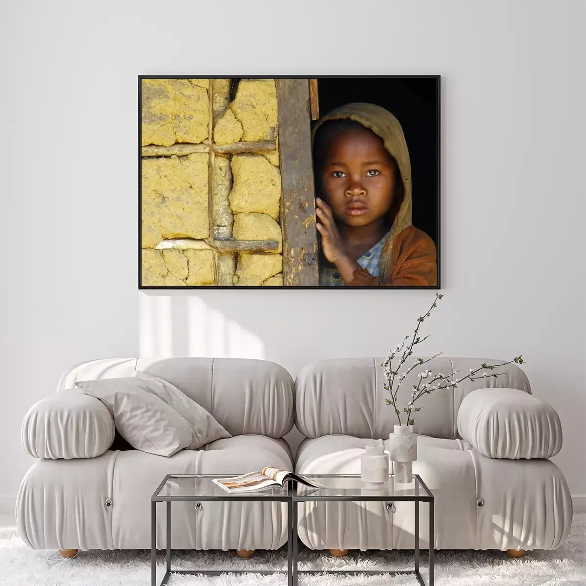 Poster: Madagascar-verlegen en arm Afrikaans meisje met hoofddoek