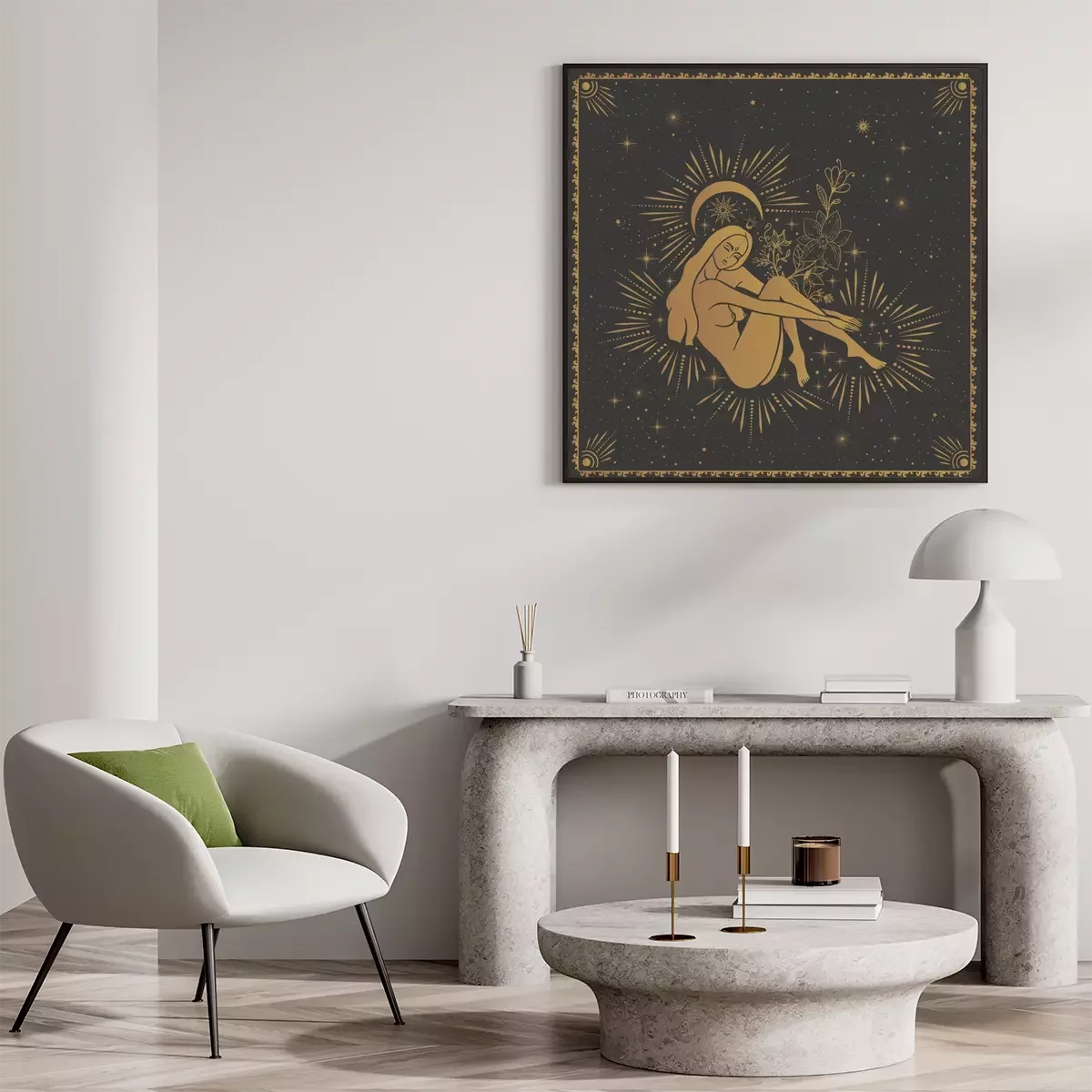 Poster magic girl, witch with the moon, tarot cards, occult symbol