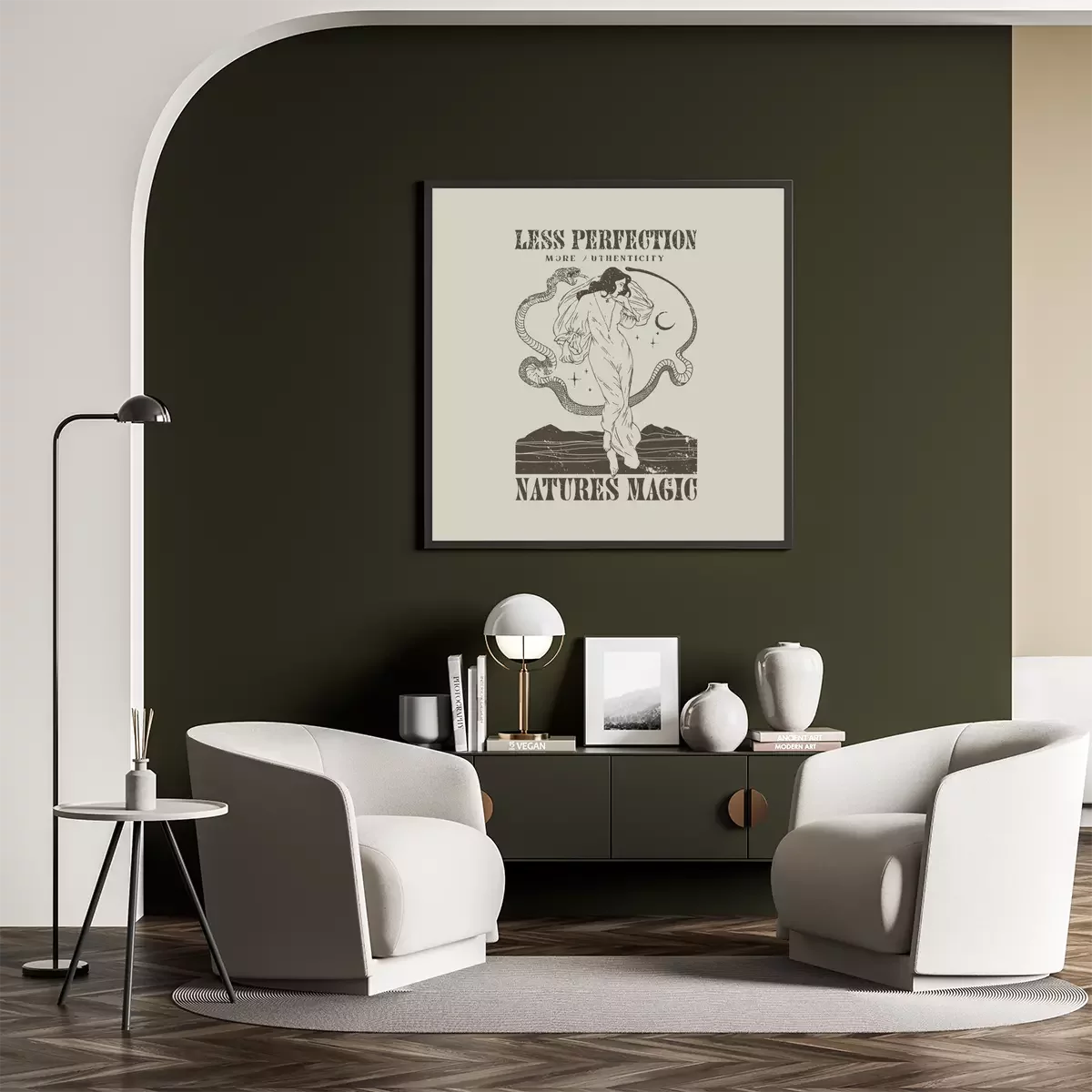 Poster: Magische vrouw met slang retro afbeelding