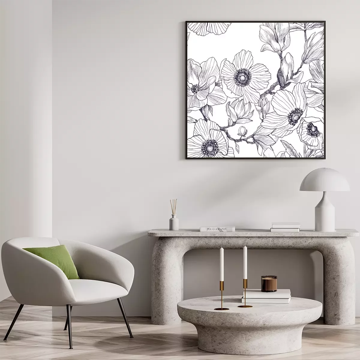 Poster: Magnolia bloemen monochrome schets