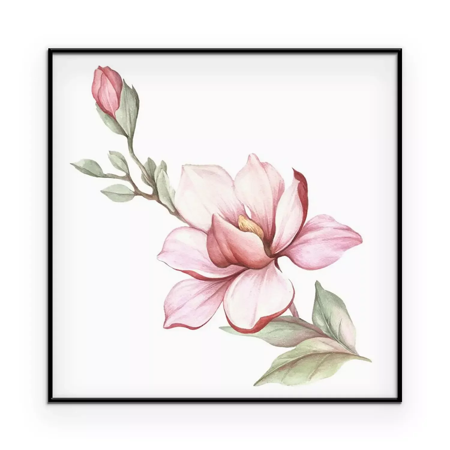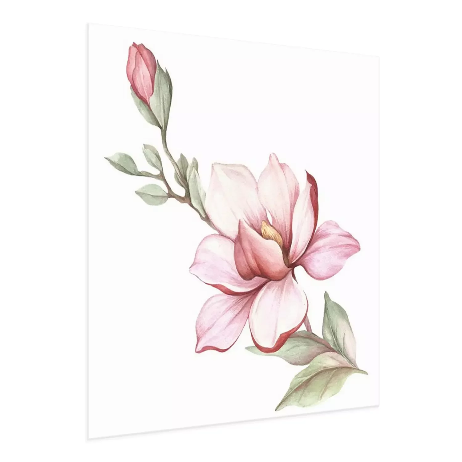 Poster Magnolia op een witte achtergrond en een onontwikkelde bloemknop
