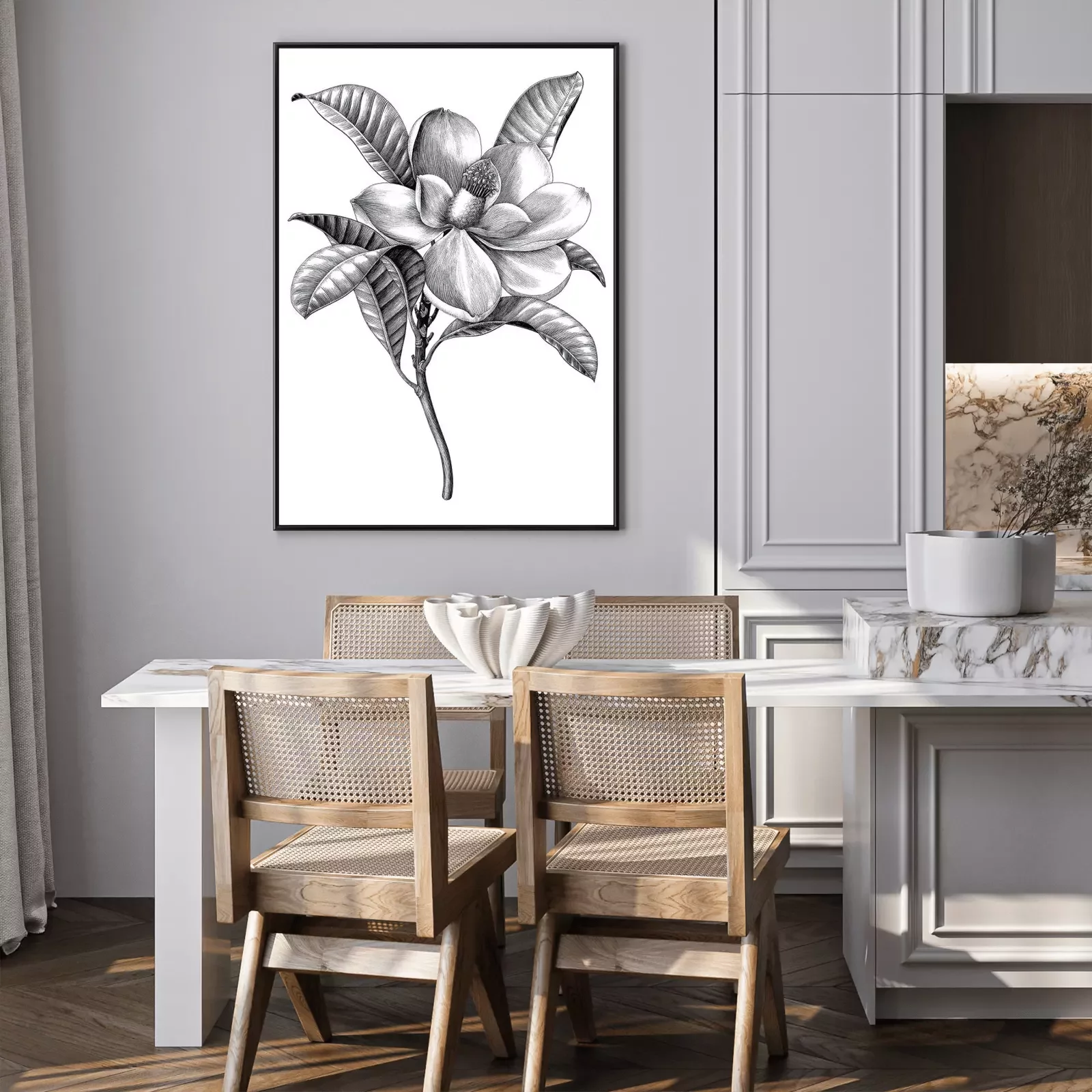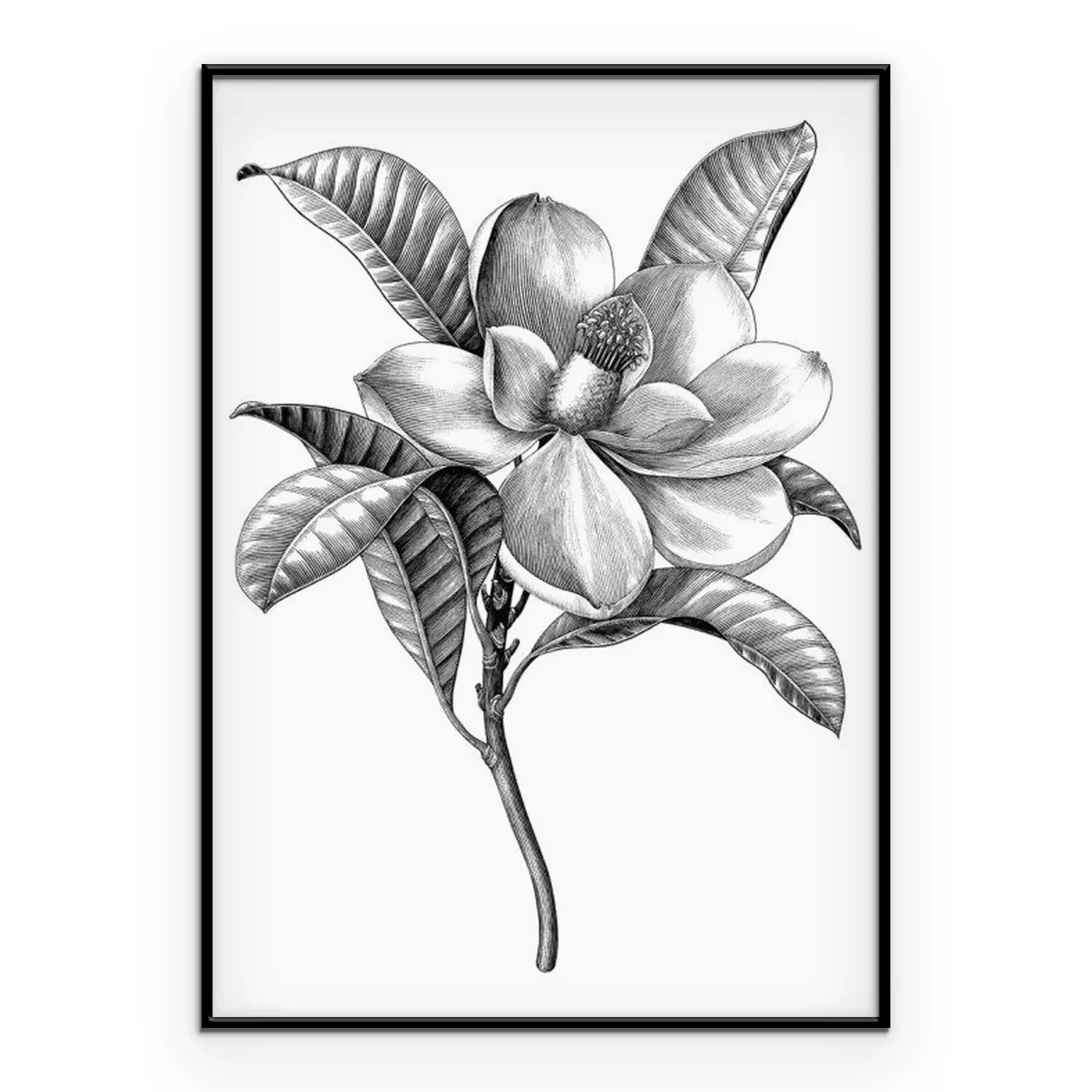 Poster: Magnolia op een witte achtergrond geschetst in zwart-wit