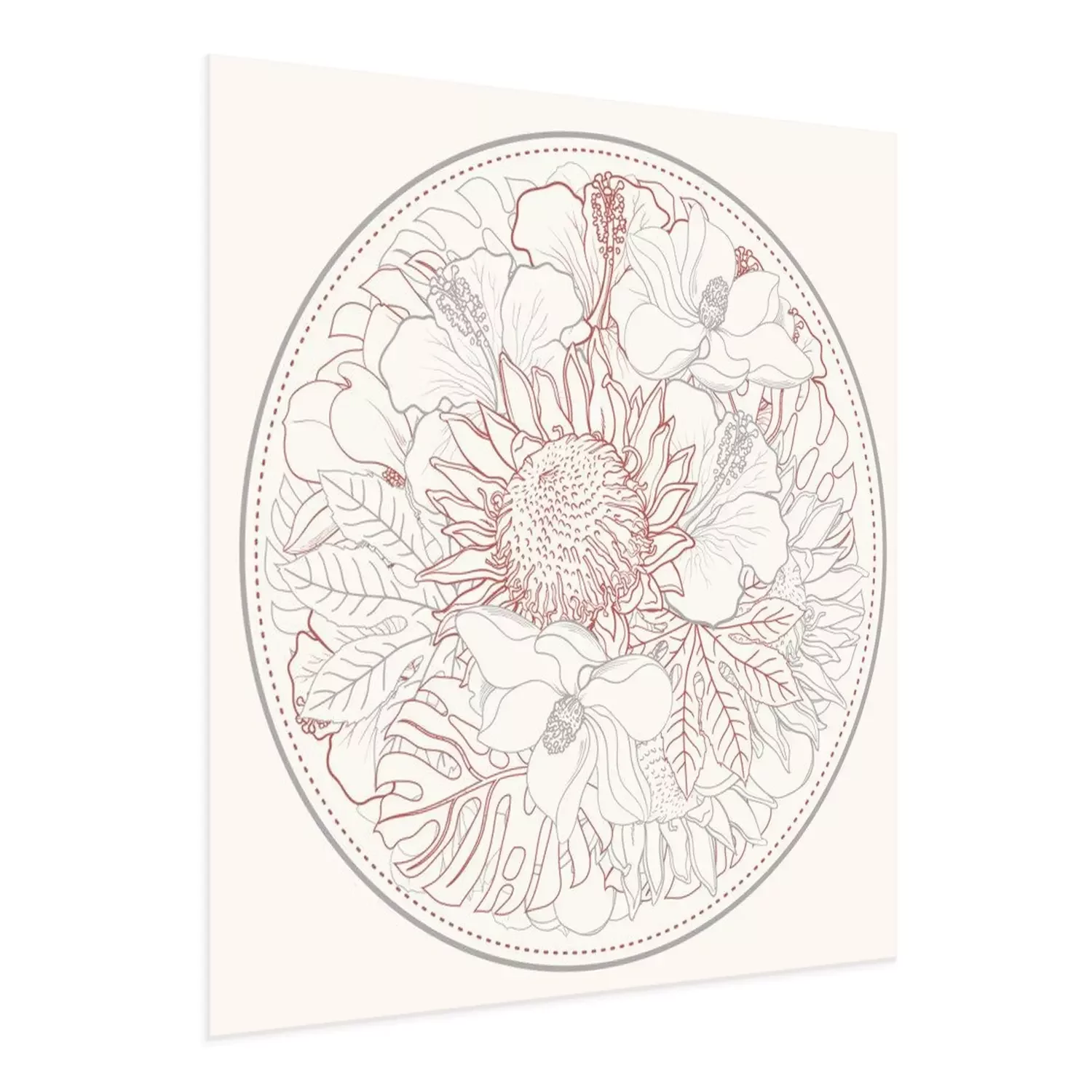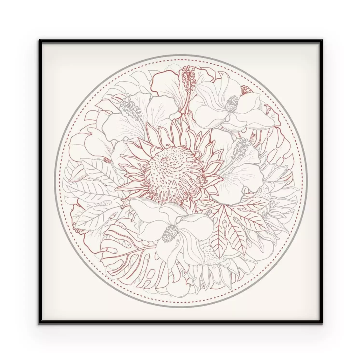 Poster: Magnolia's en tropische planten gekleurde contouren