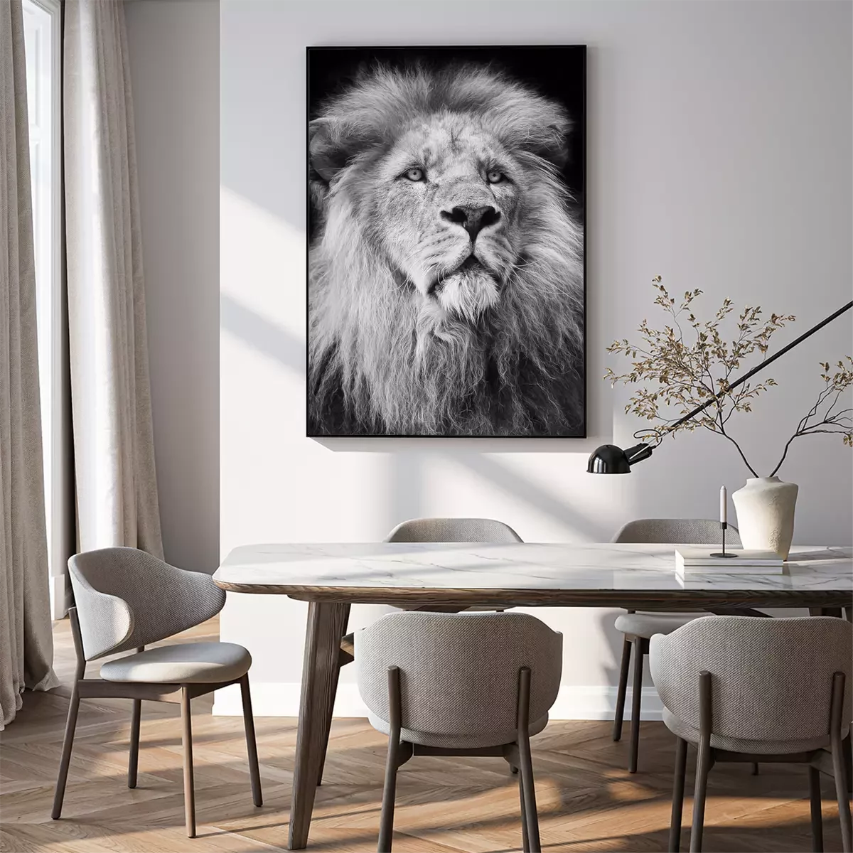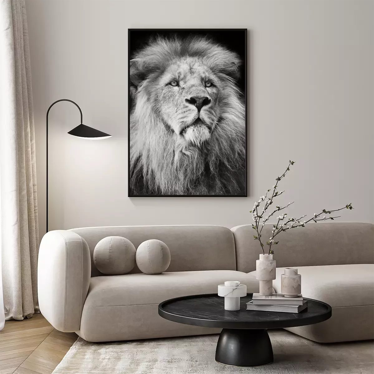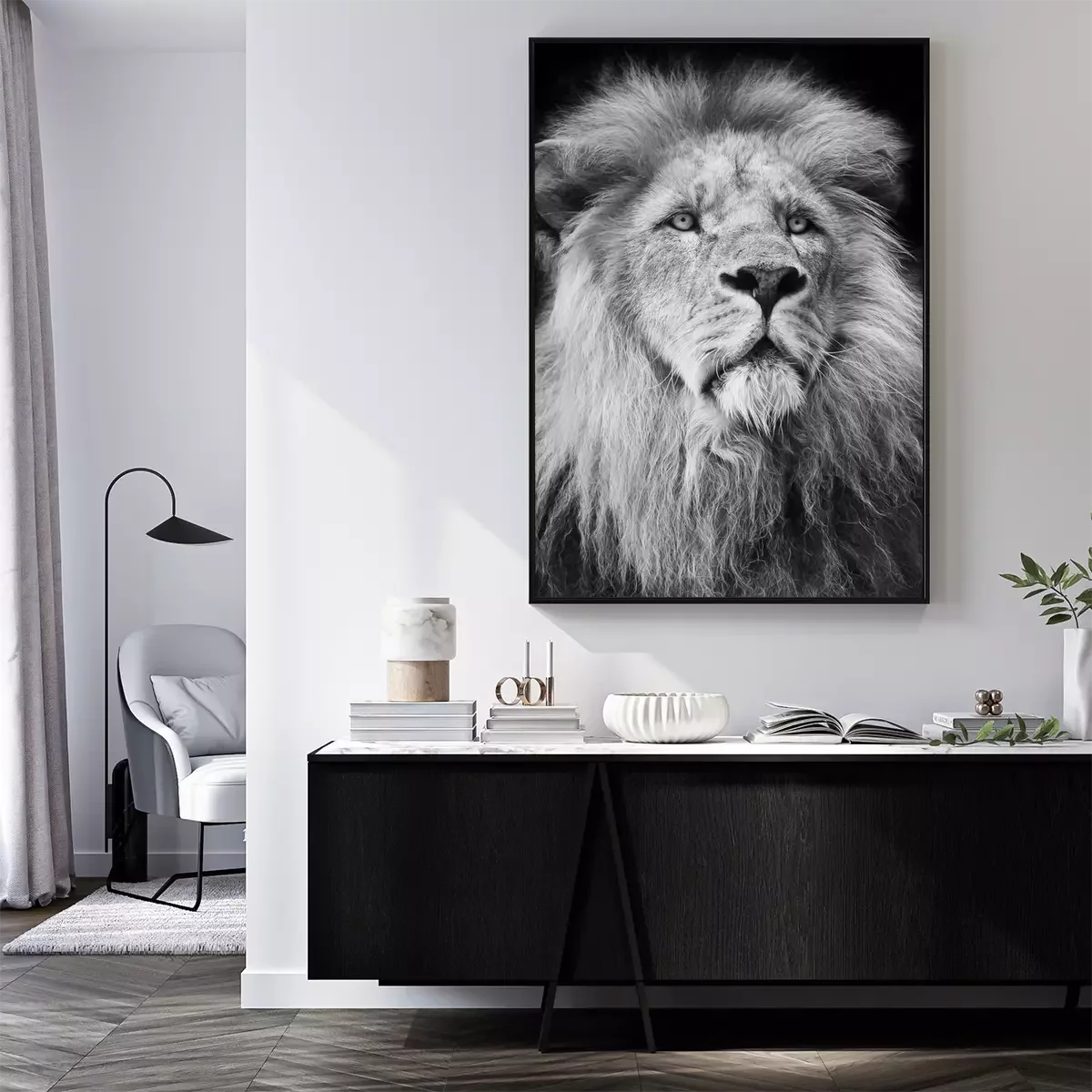 Poster: majestic lion Portrait in black and white;