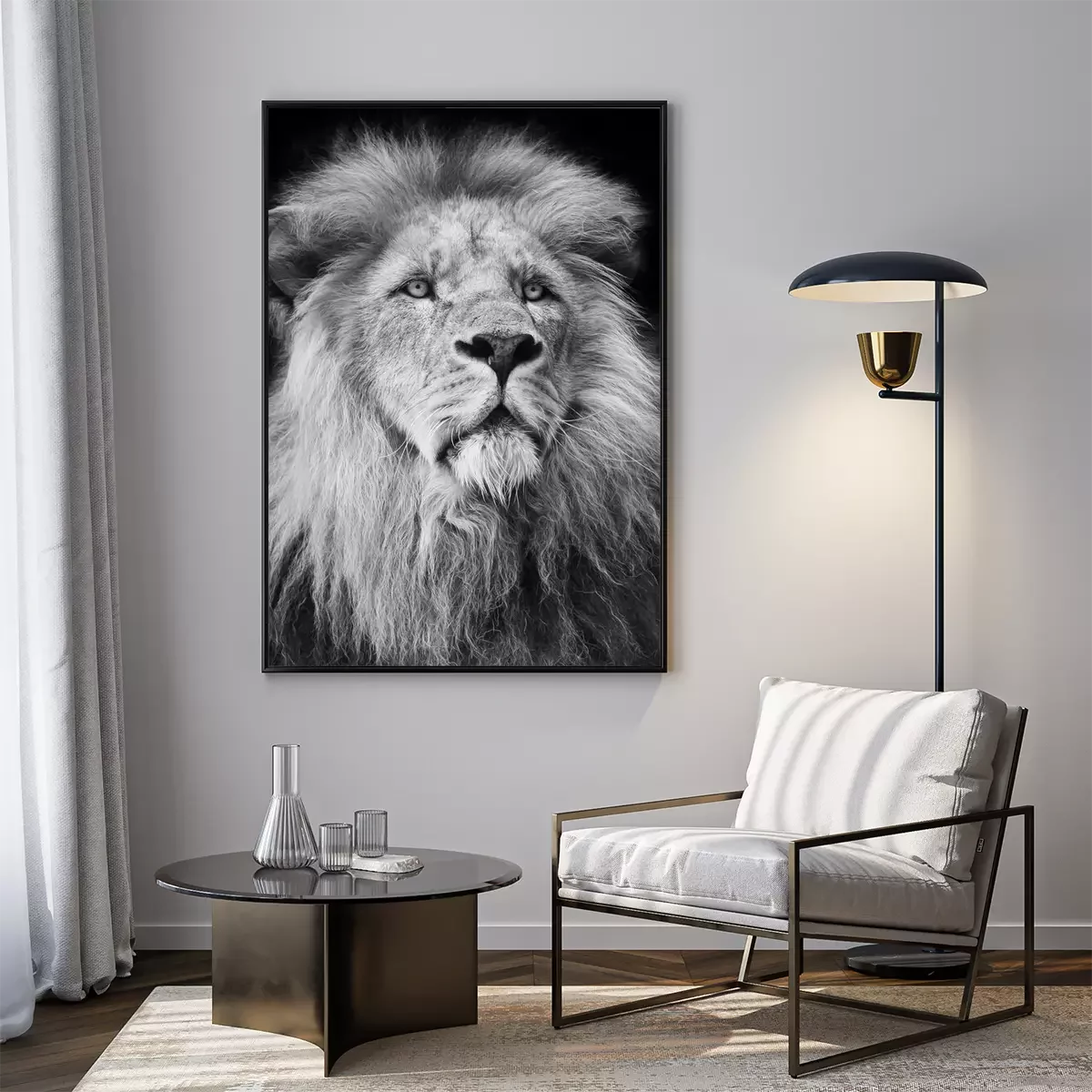 Poster majestic lion Portrait in black and white;