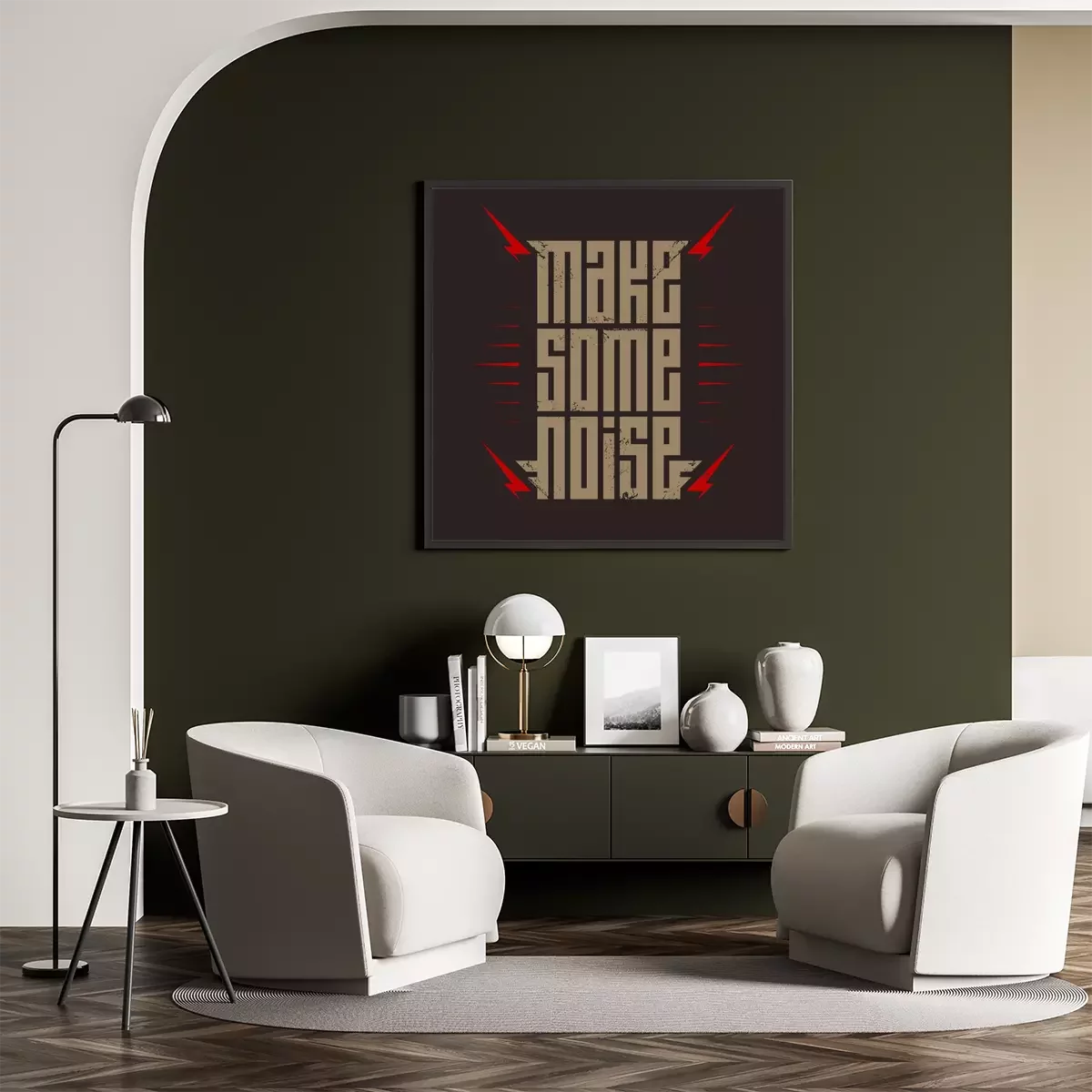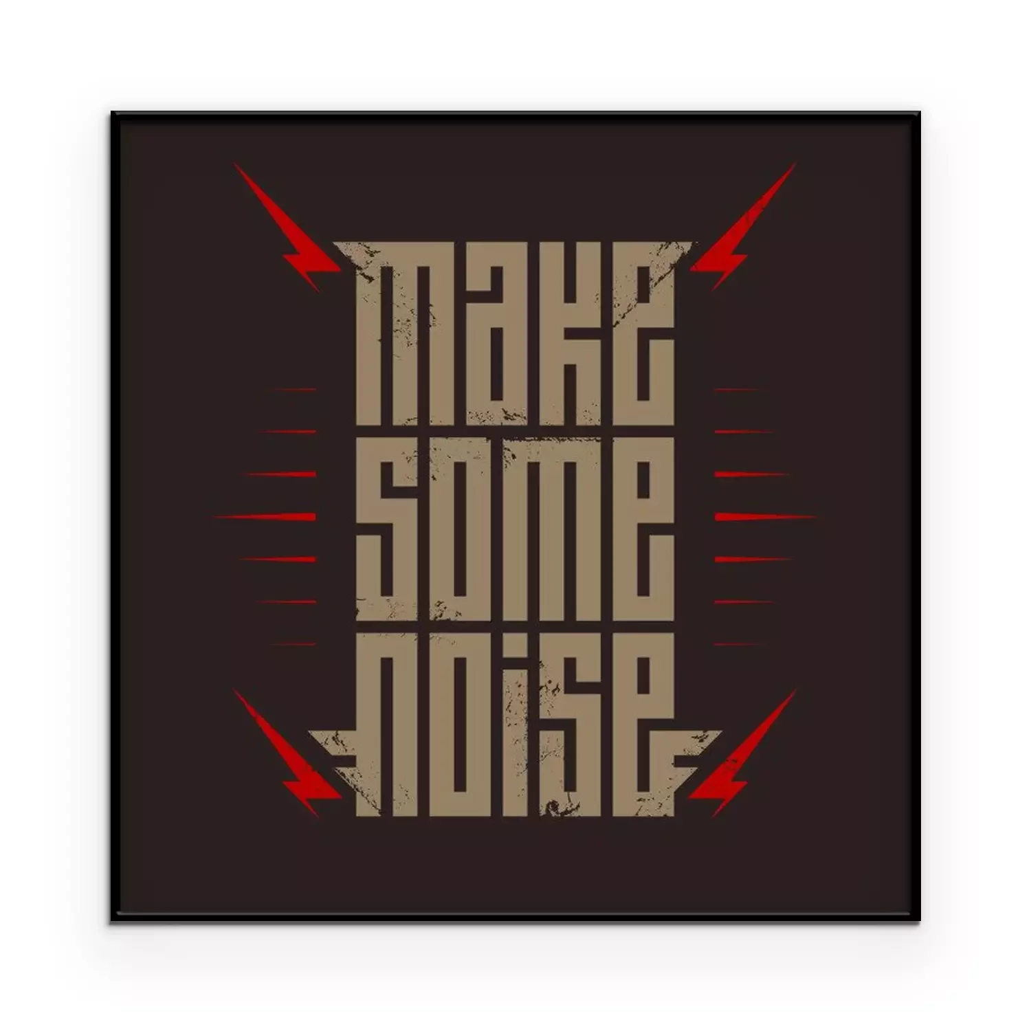 Poster Make Some Noise - music poster with red lightning. Rock t-shirt design. T-shirt apparels cool print.