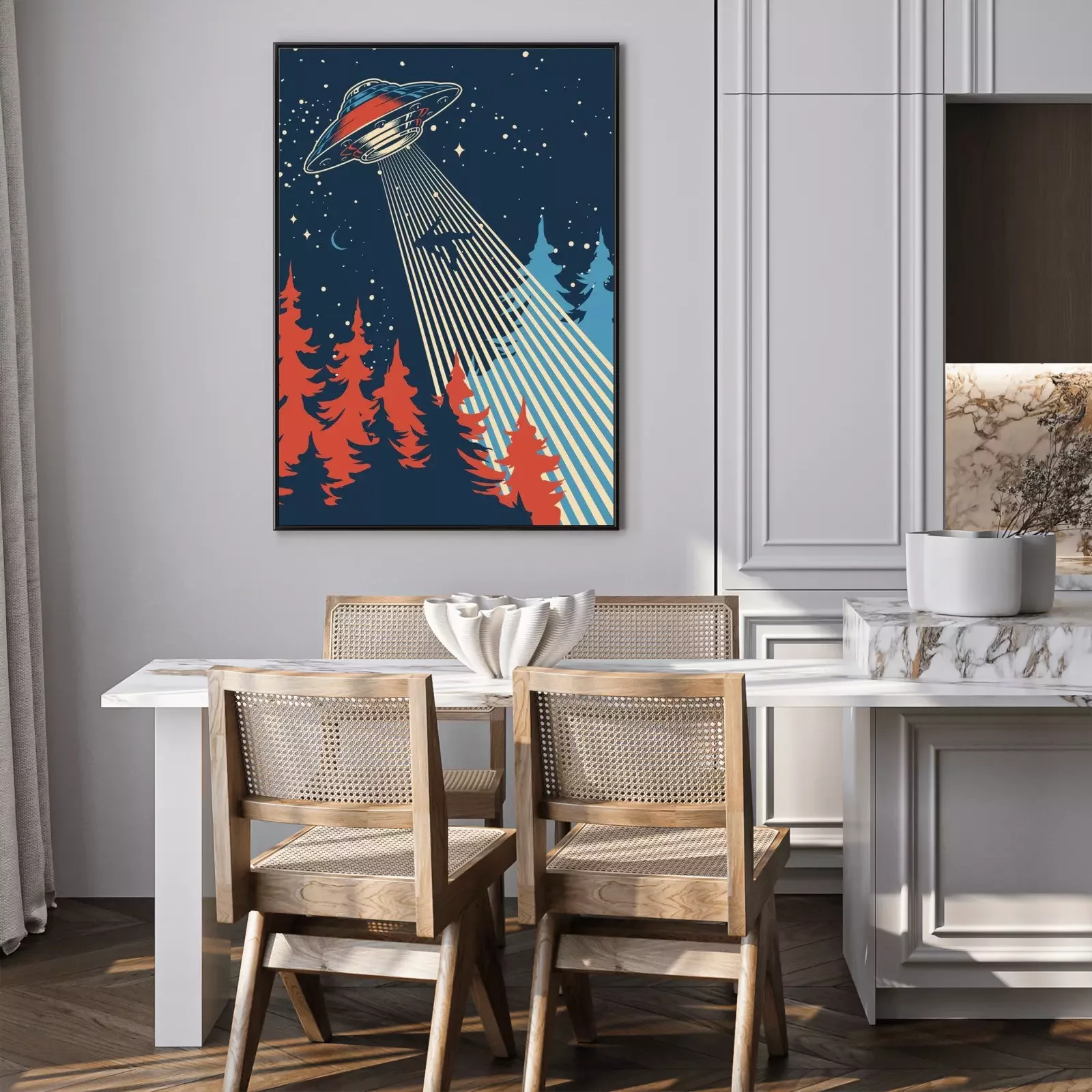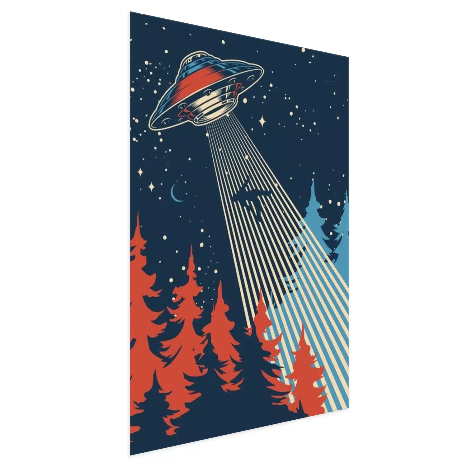 Poster Man abduction by UFO colorful poster