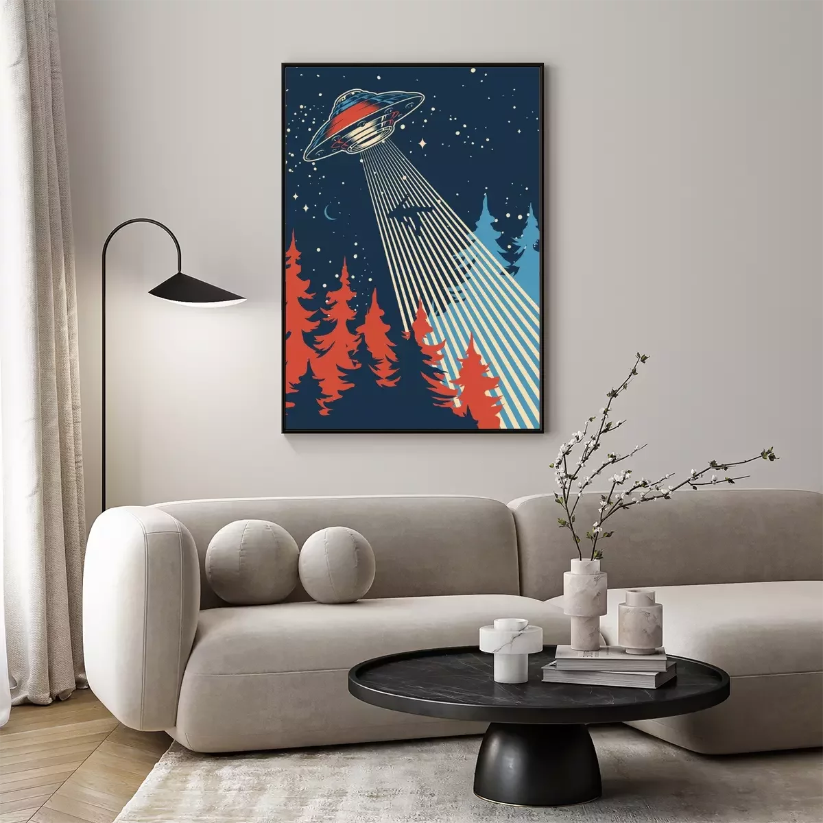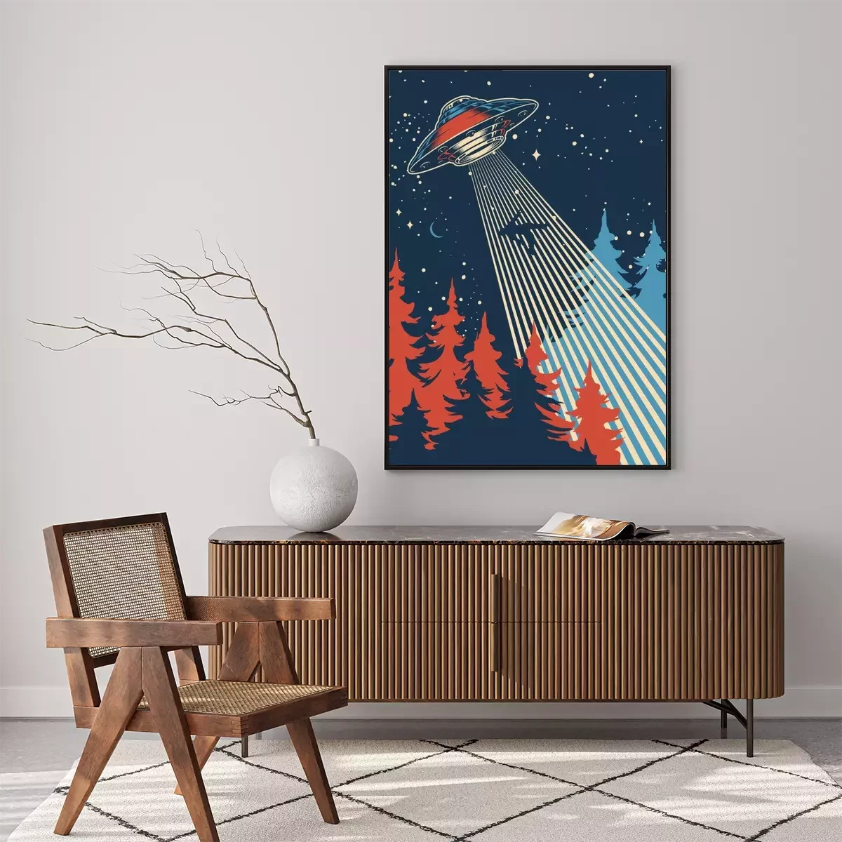UFO abducts man colorful poster