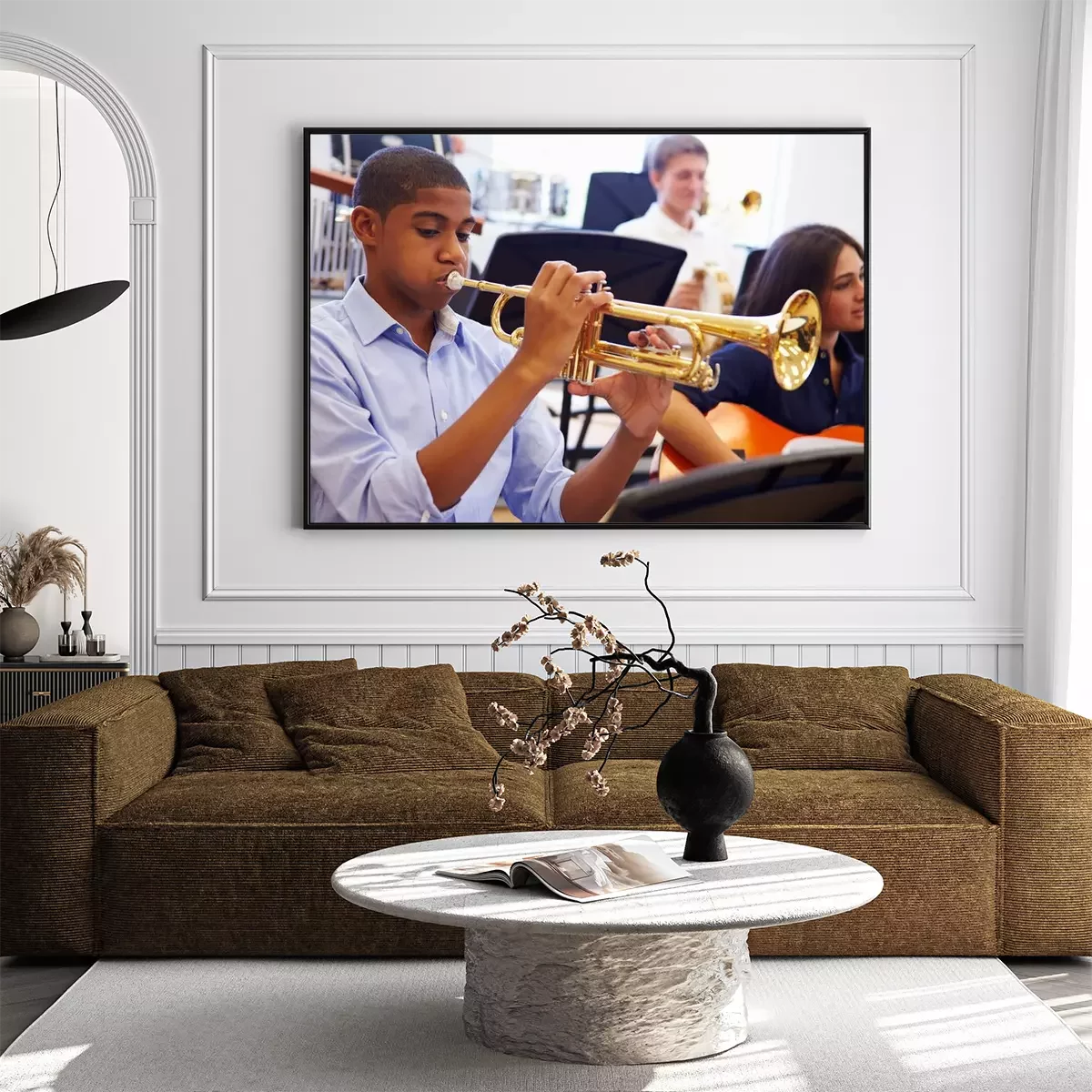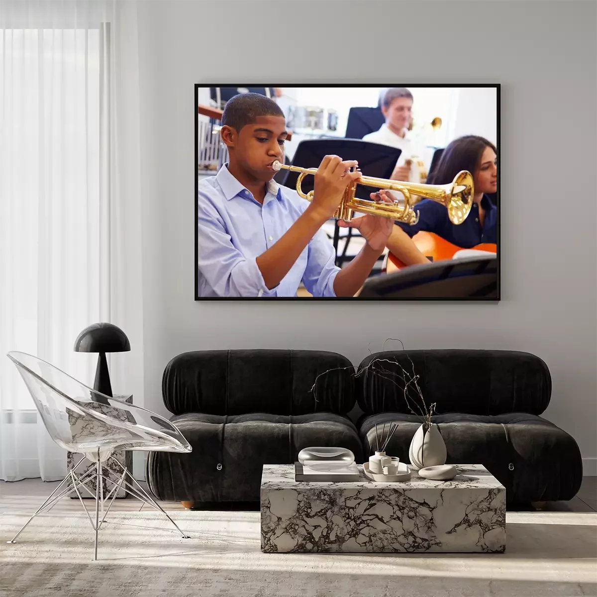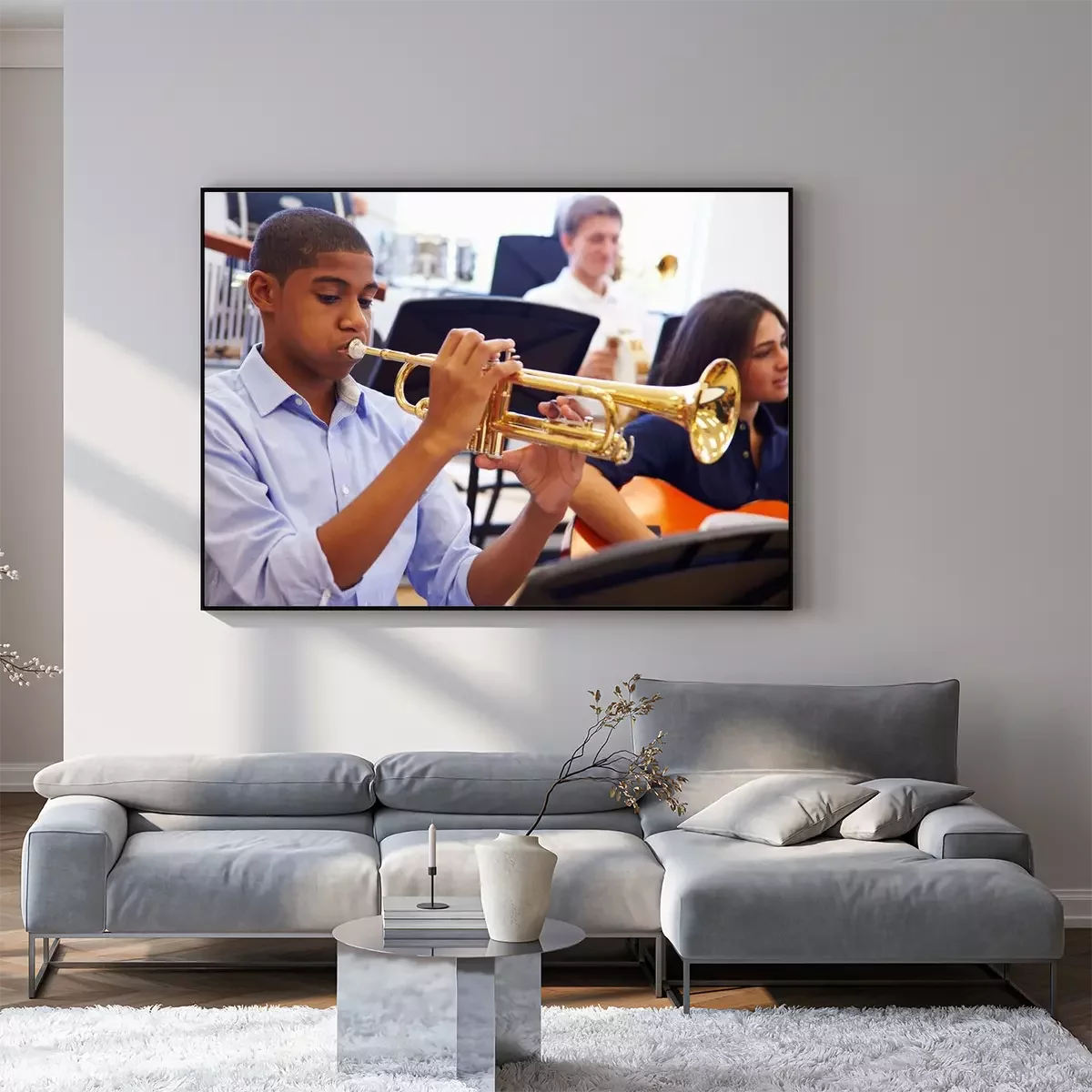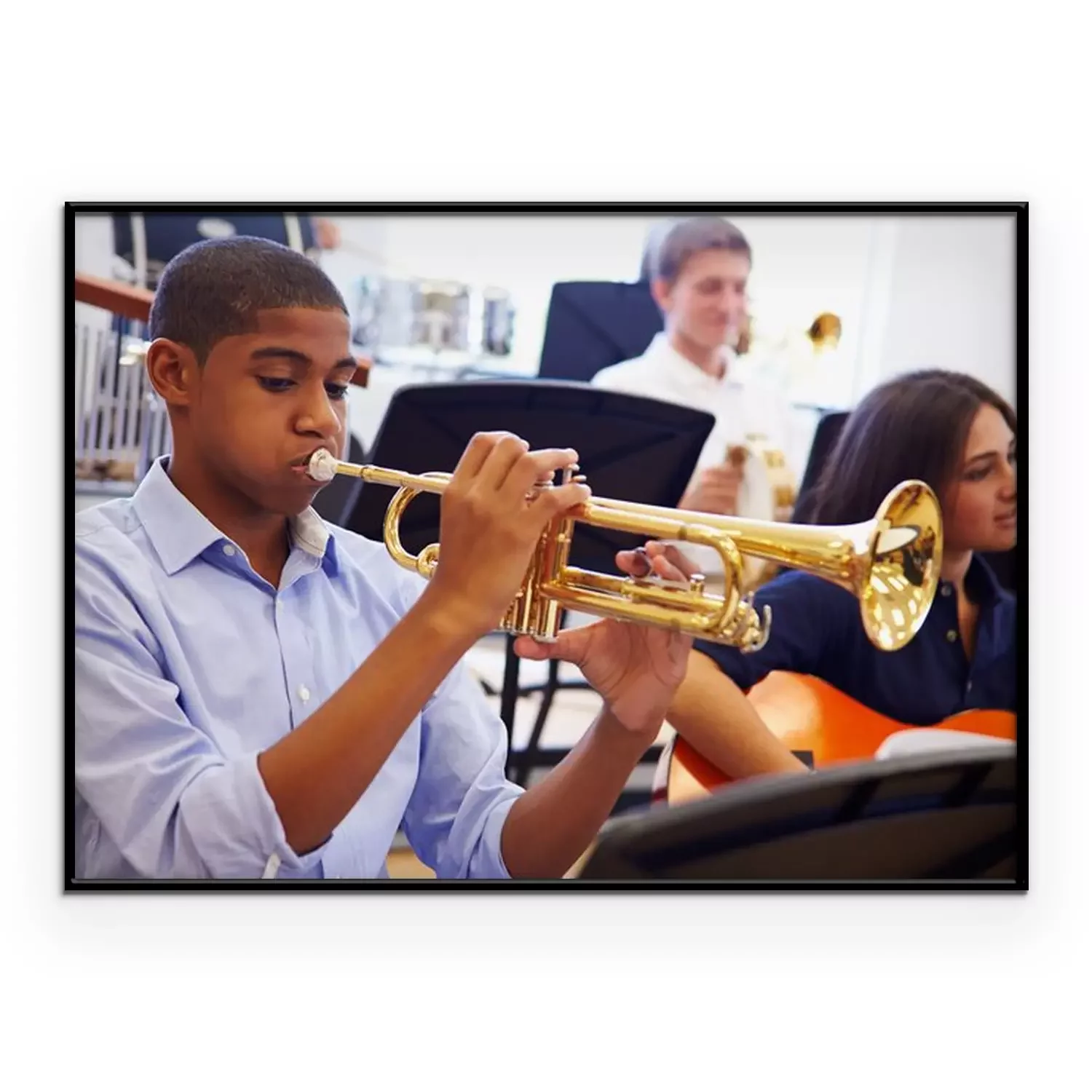 Poster Man Leerling Spelen Trompet In High School Orchestra