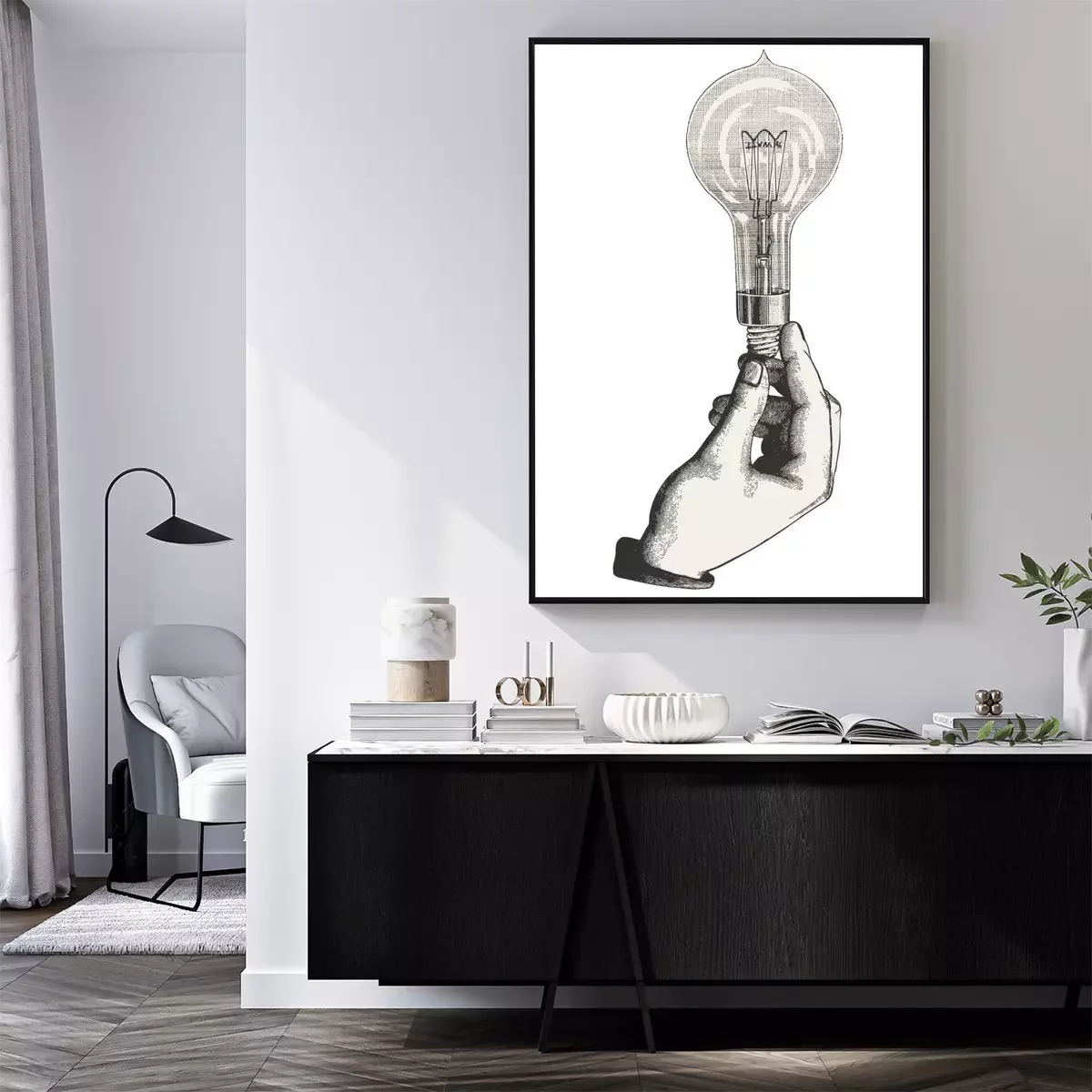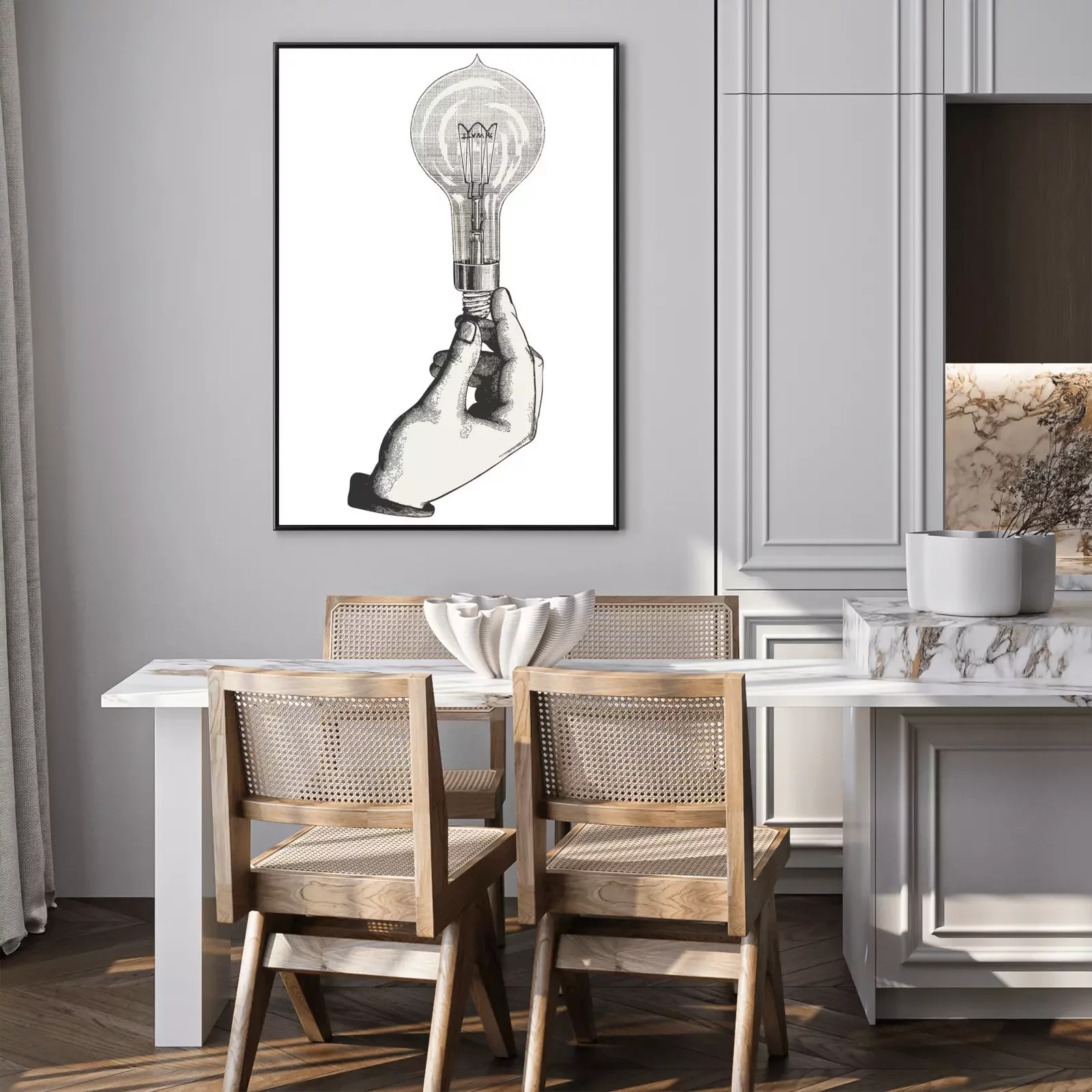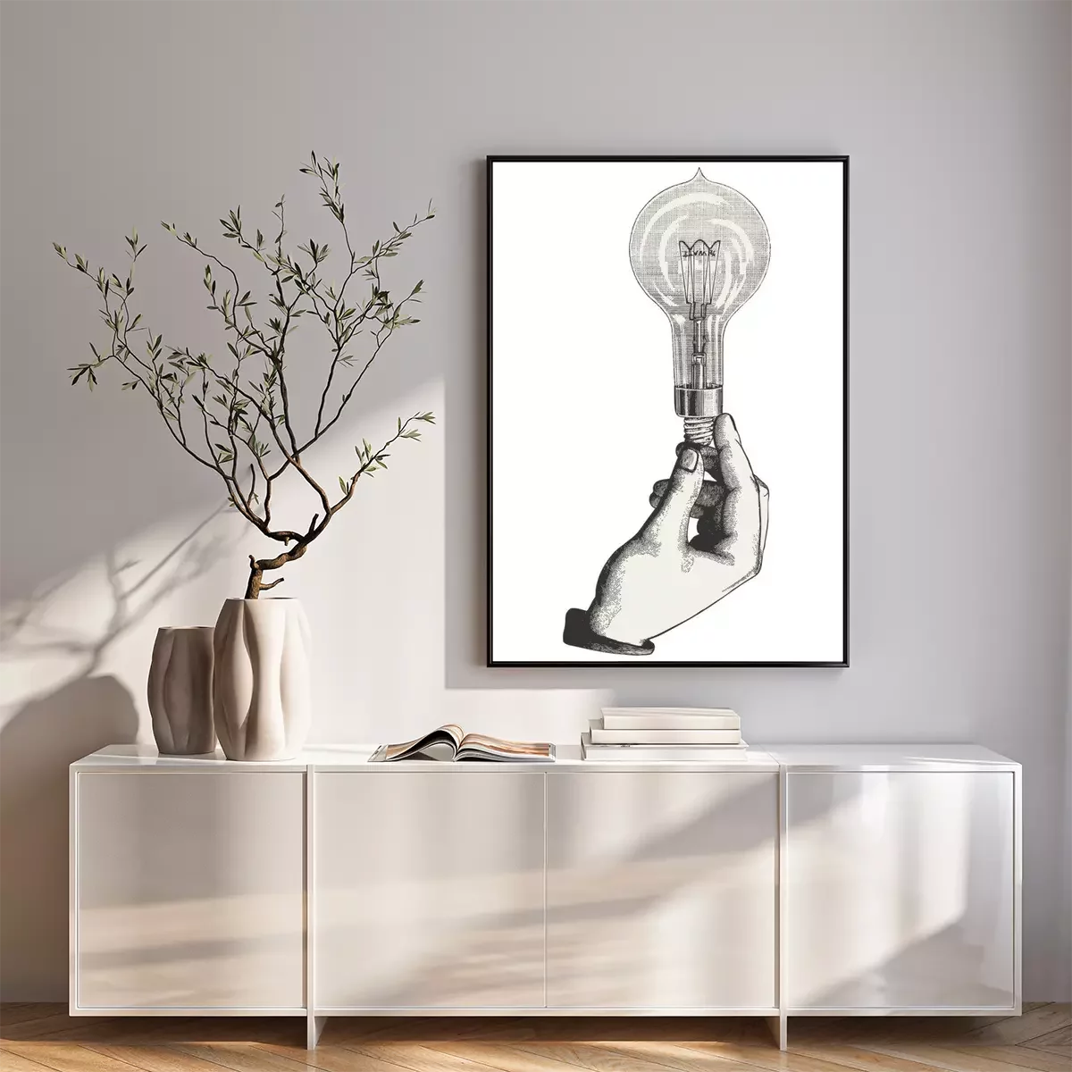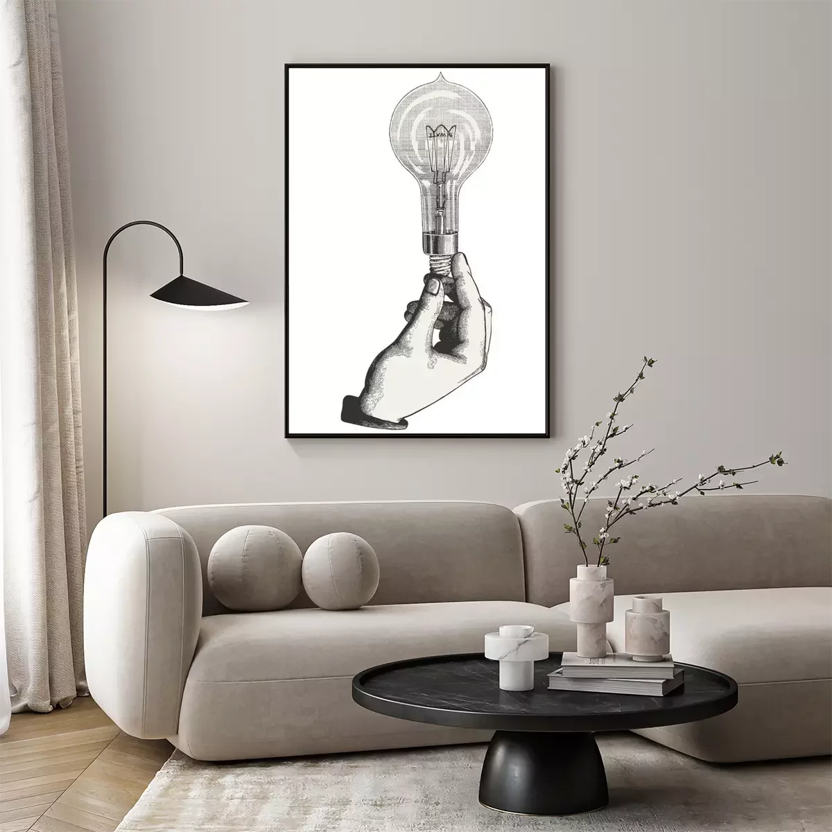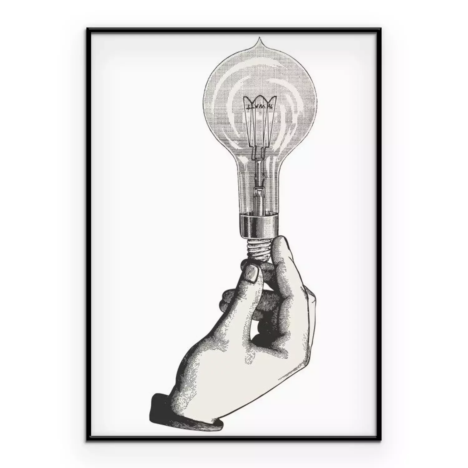 Poster Man's hand holding a bulb - vector illustration idea concept