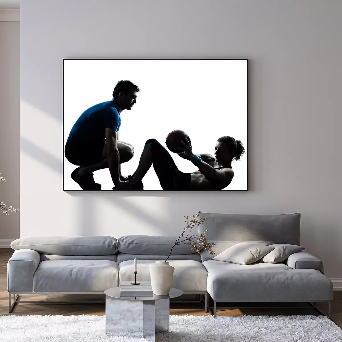 Poster: man vrouw te oefenen workout fitness bal silhouet