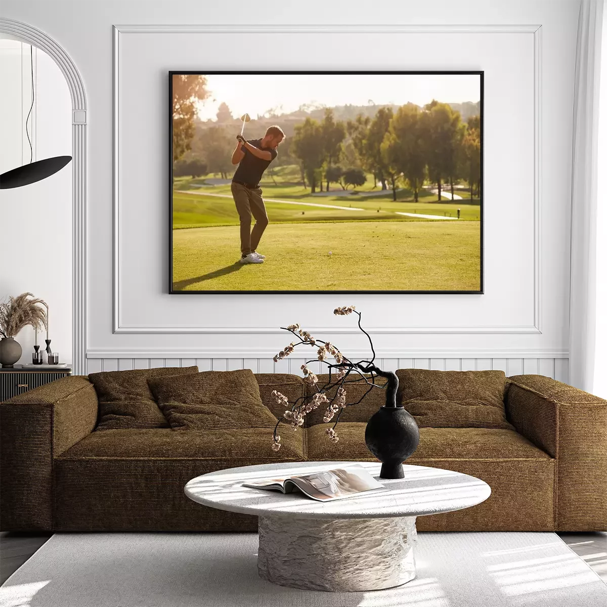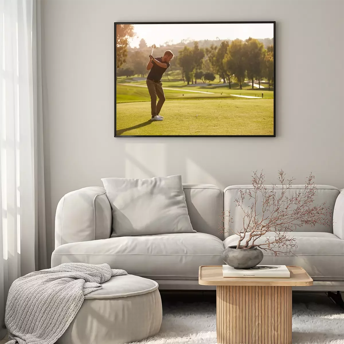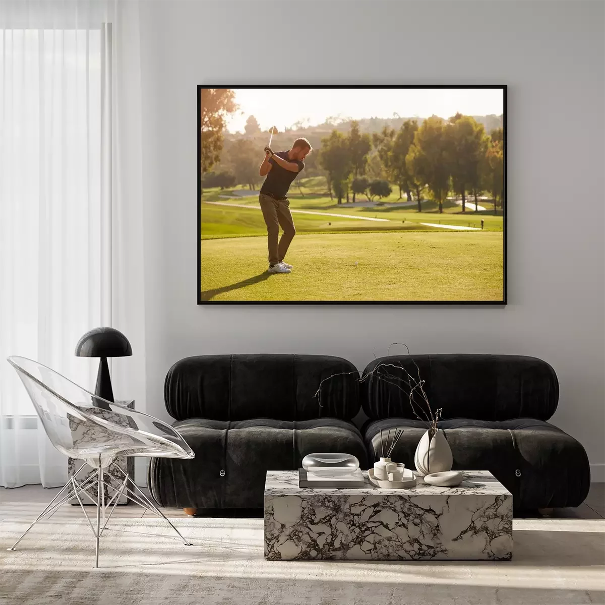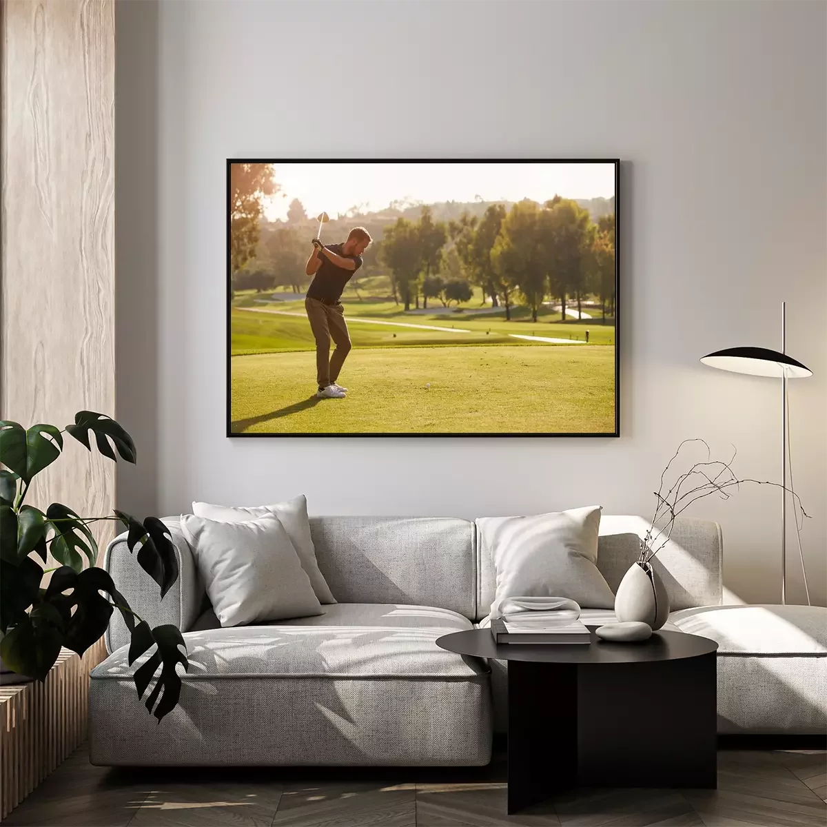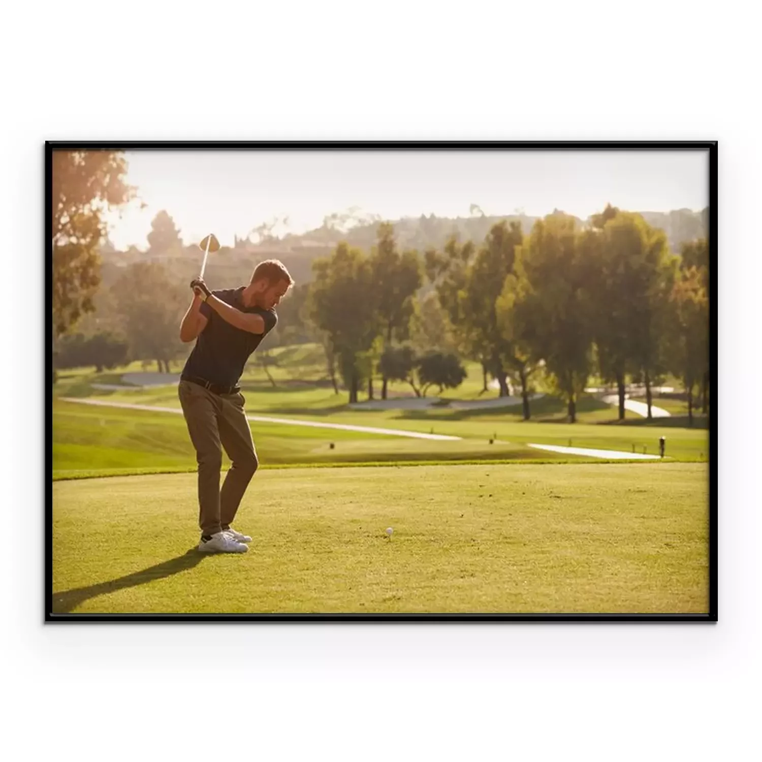 Poster Mannelijke golfer voering tee shot Aan de Golfbaan