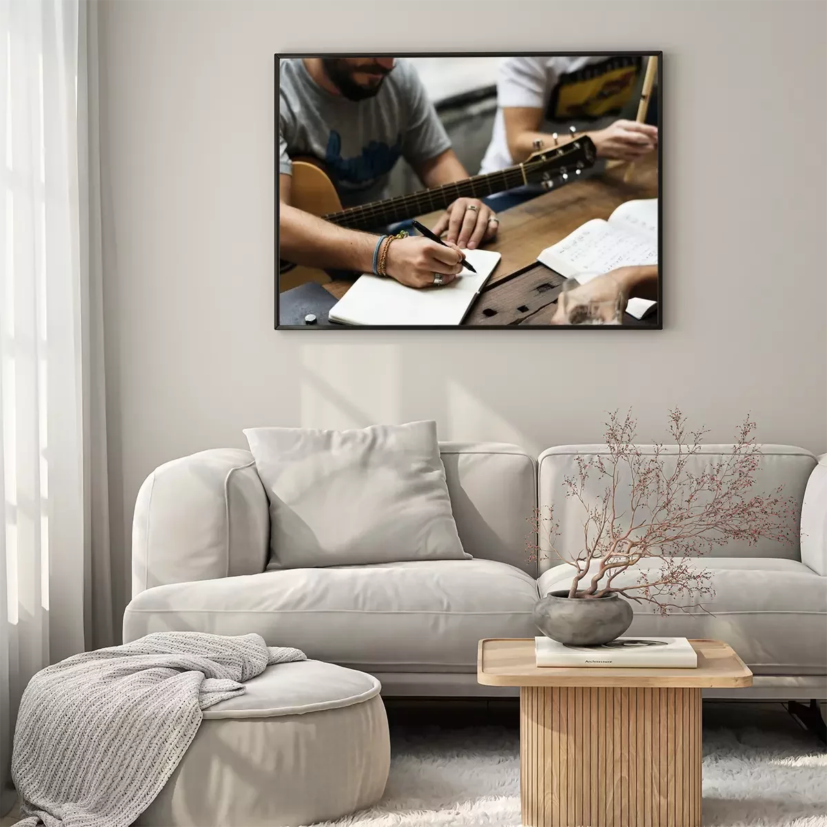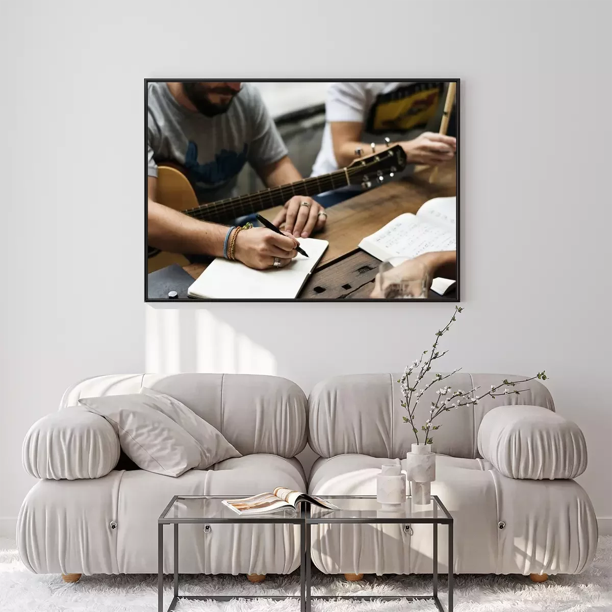 Poster Mannen Play Guitar Schrijf Song Muziek Reheaesal