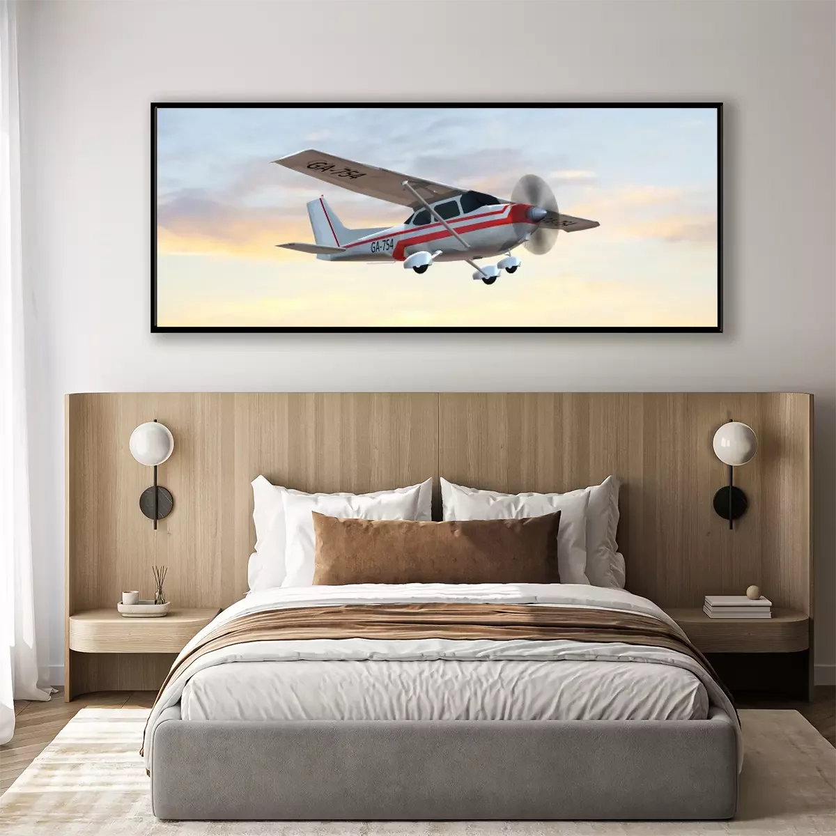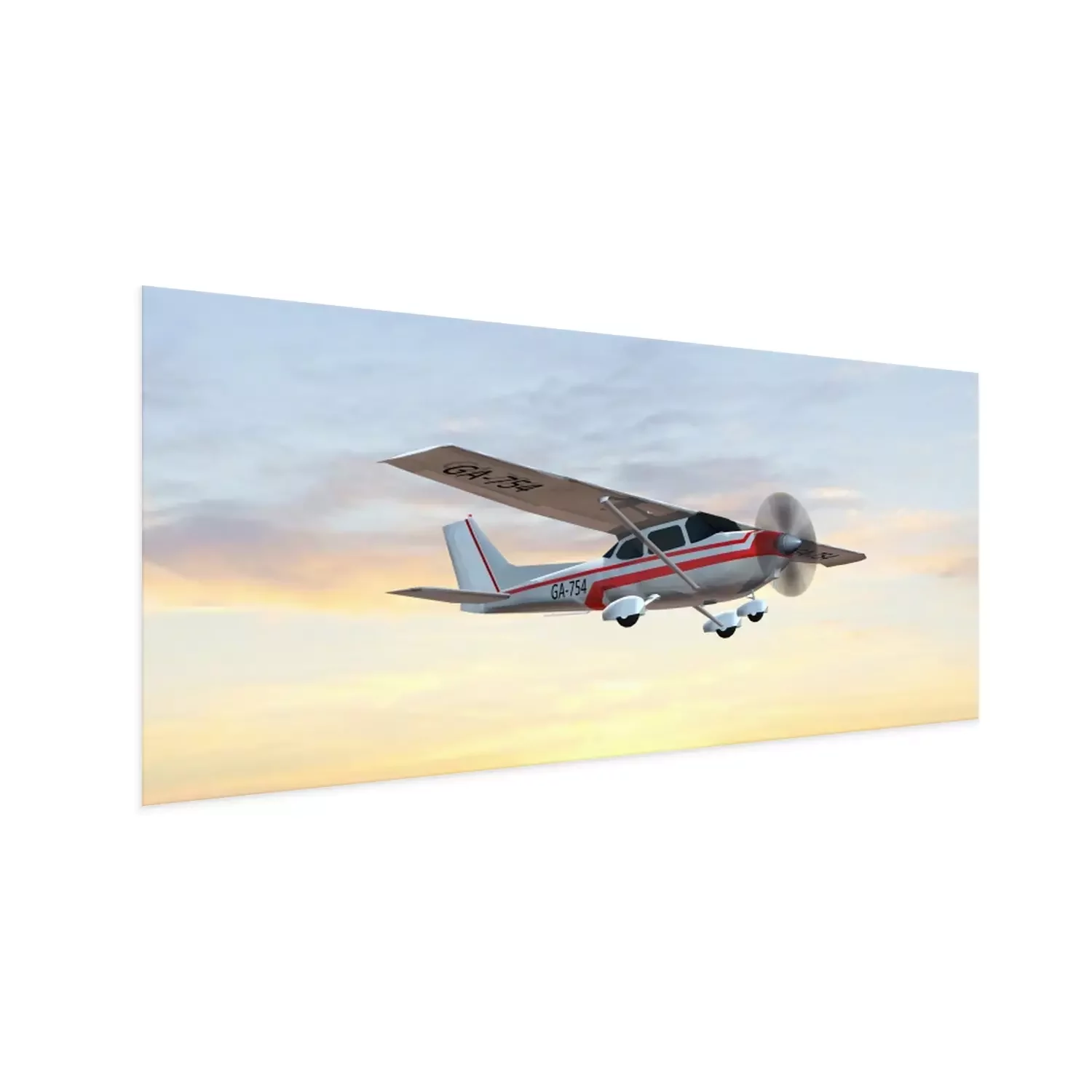 Poster: meest populaire single propeller lichte vliegtuigen vliegen in de zonsondergang