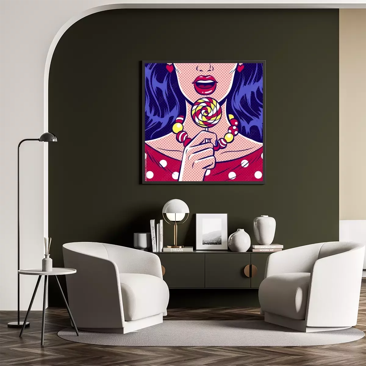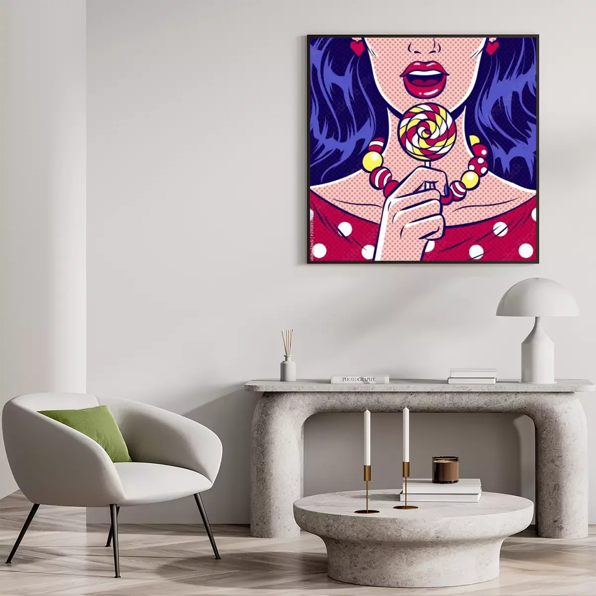 Portret van een vrouw in de stijl van Roy Lichtenstein