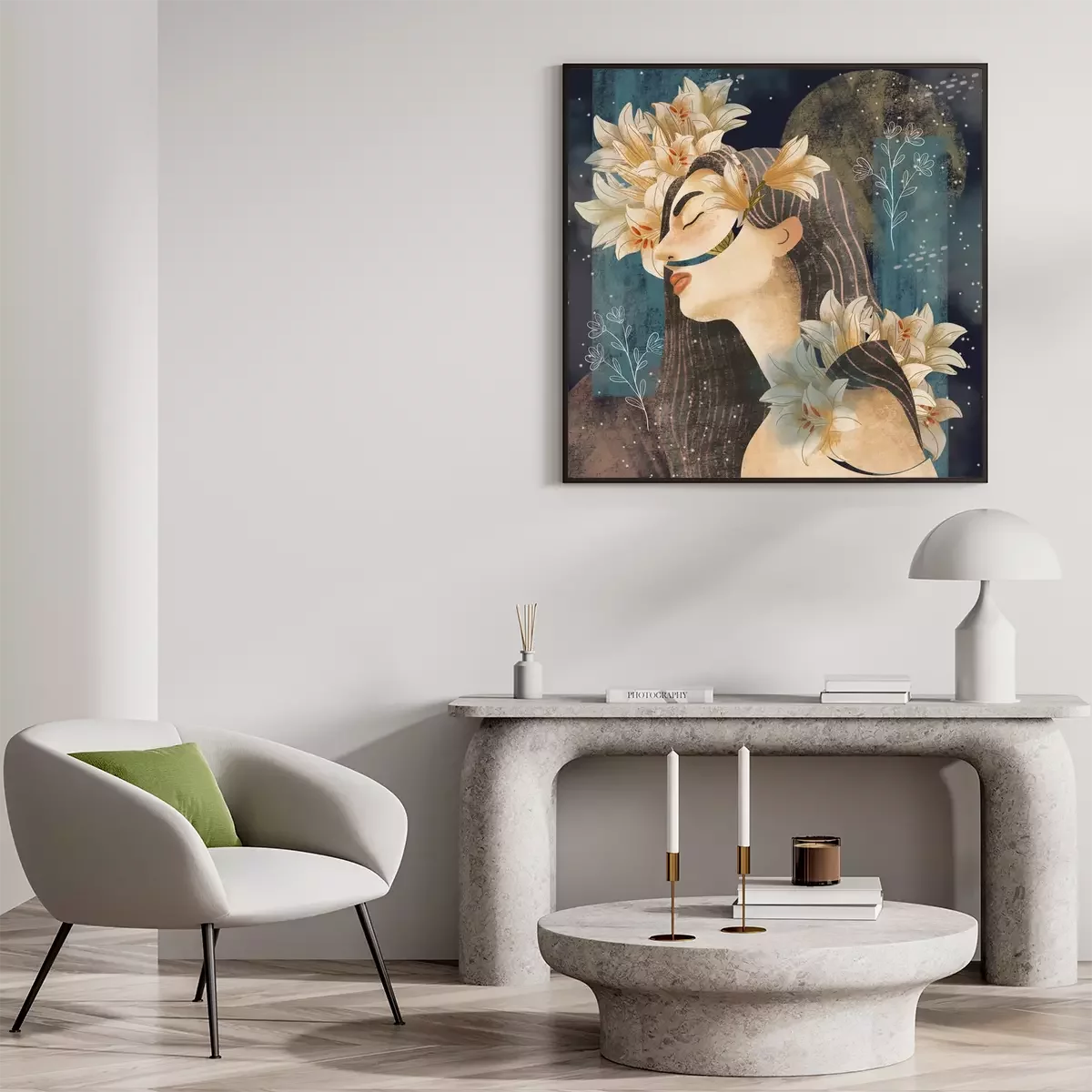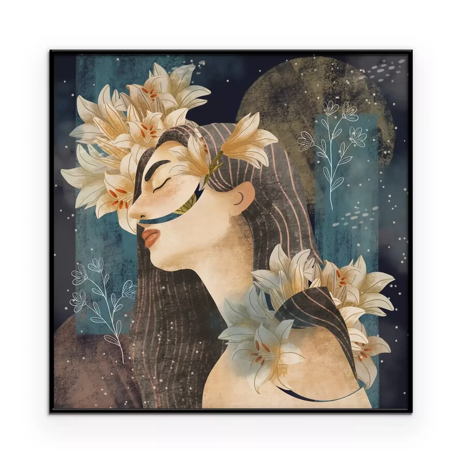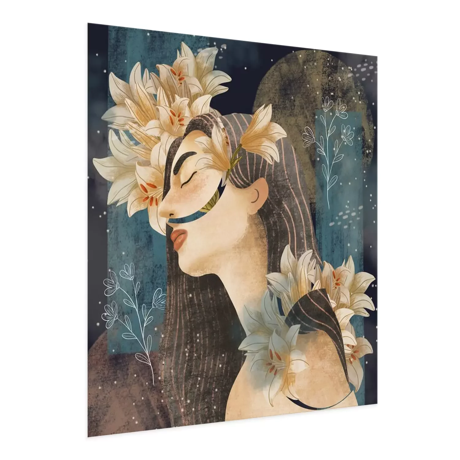 Poster: Meisje met lelies in haar haar
