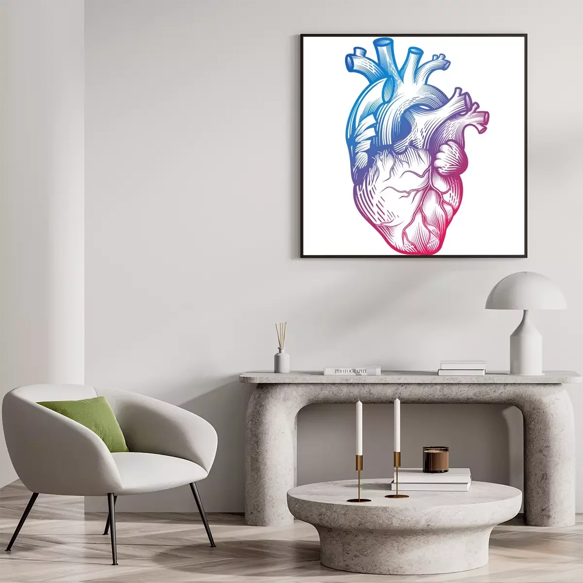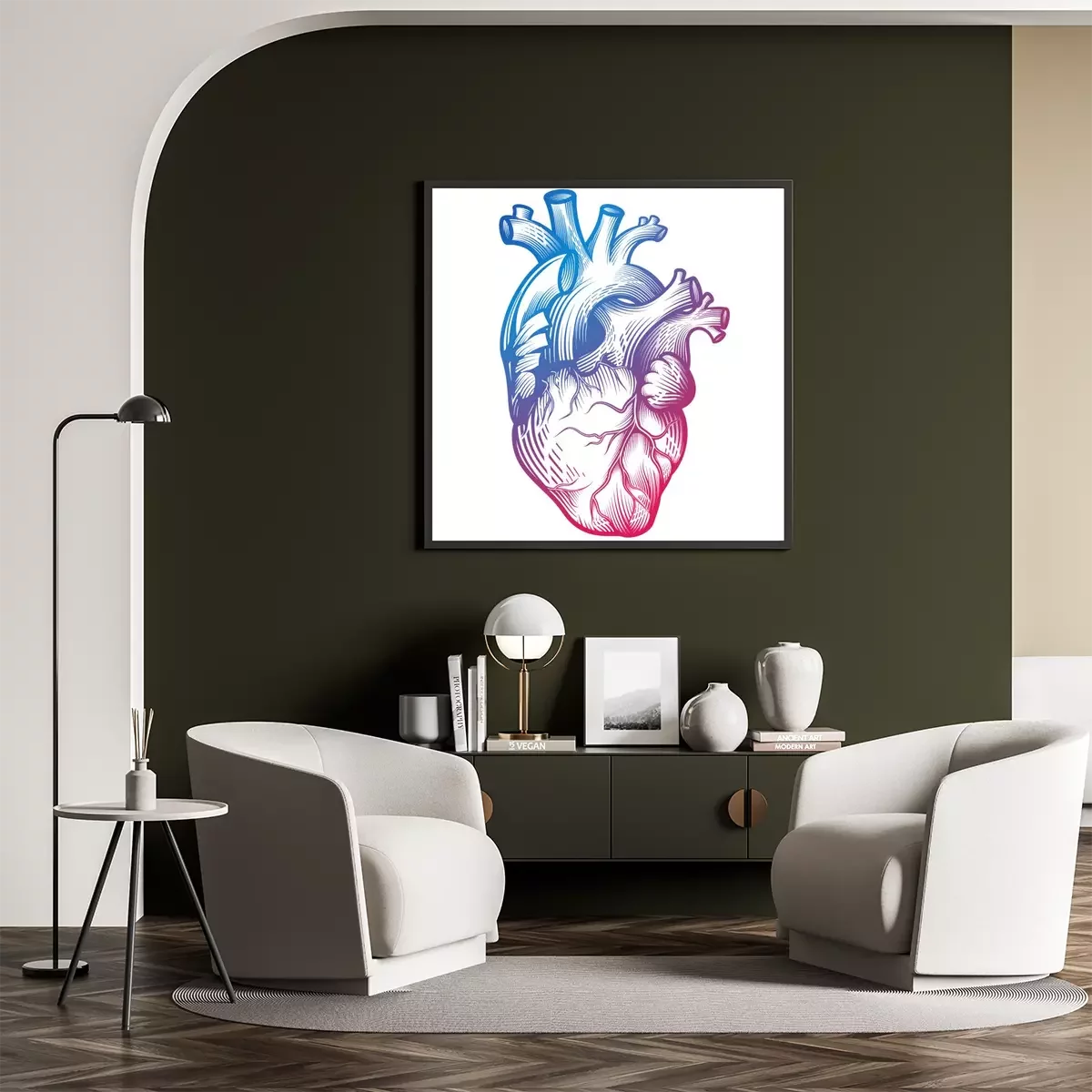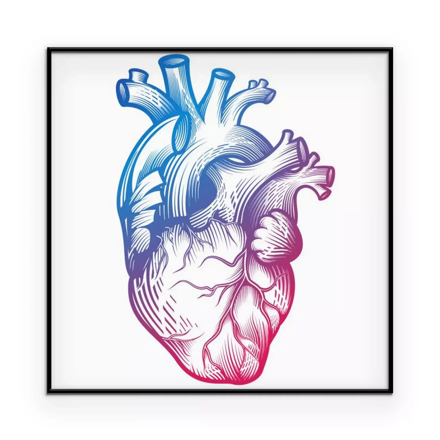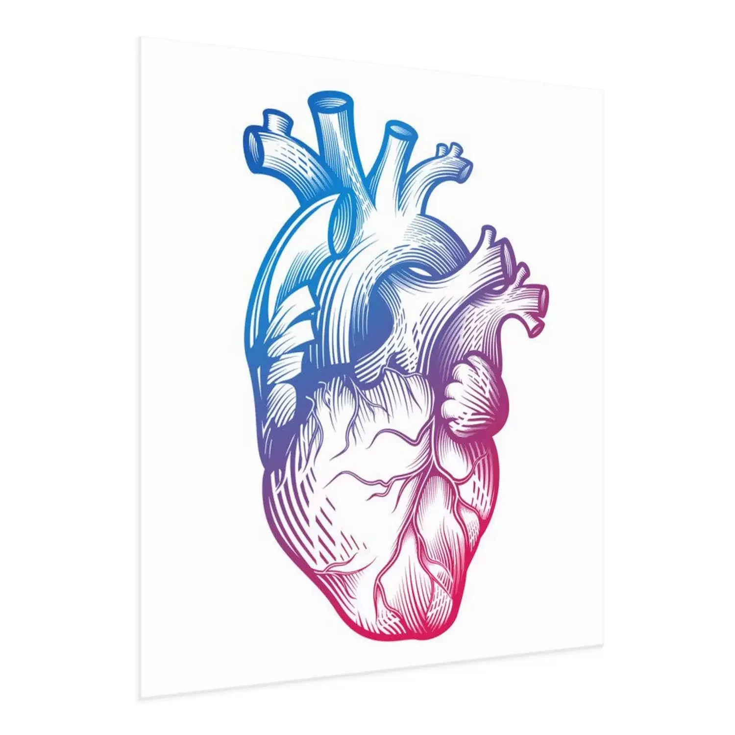 Poster Menselijk hart in gravuretechniek met onscherpe kleurverloop. Anatomisch correcte hand getrokken lijnkunst geïsoleerd op wit. Tattoo, t-shirt print ontwerp. Vector illustratie