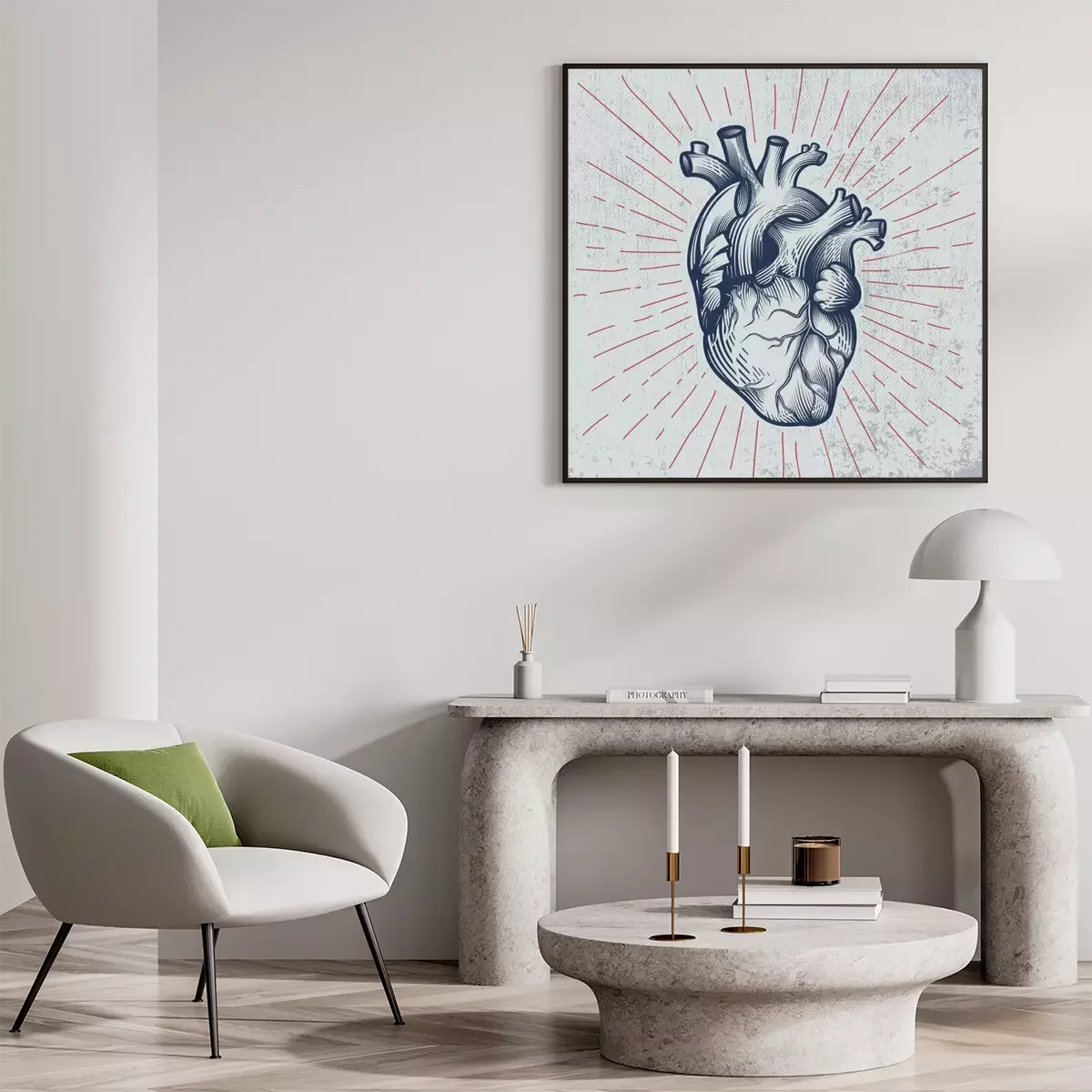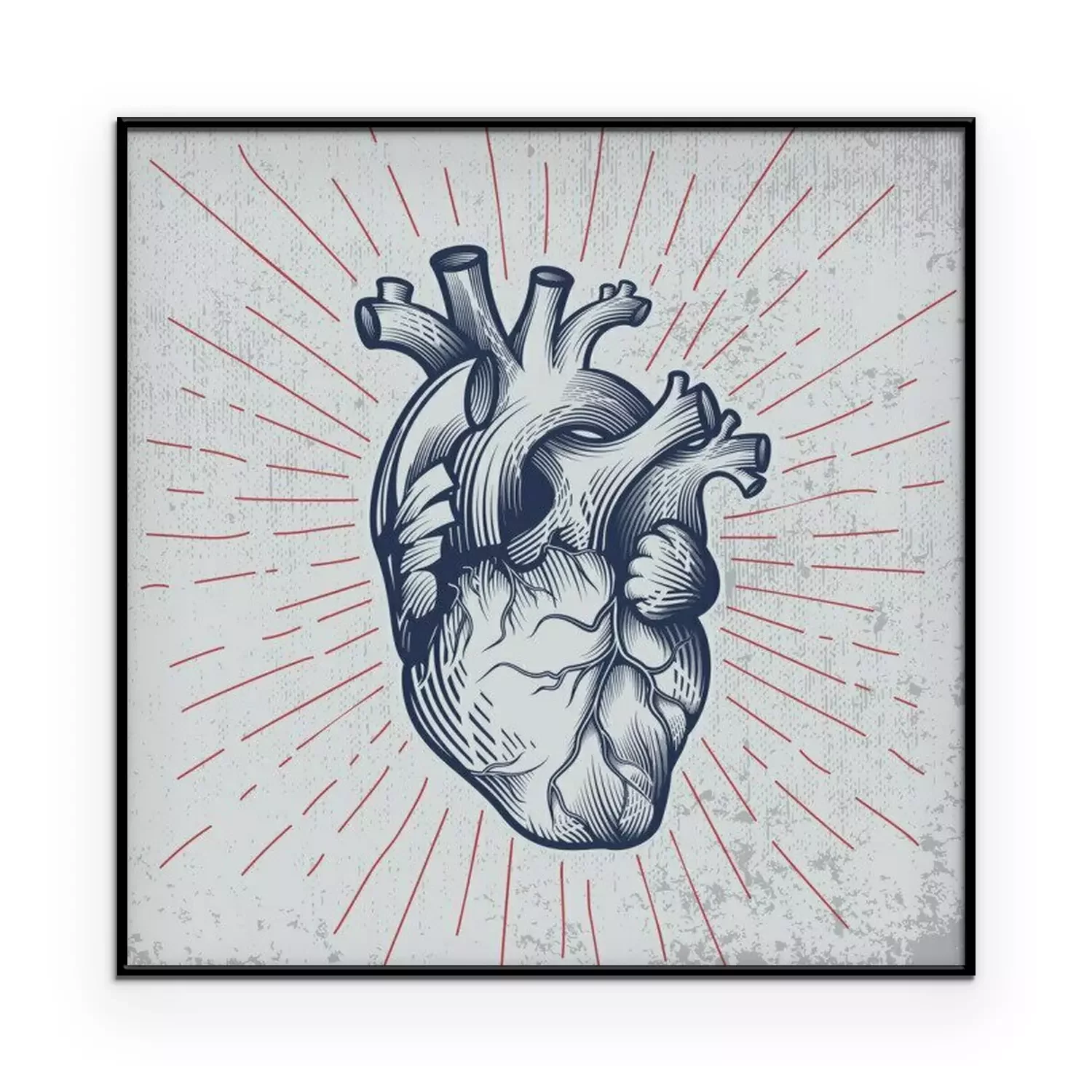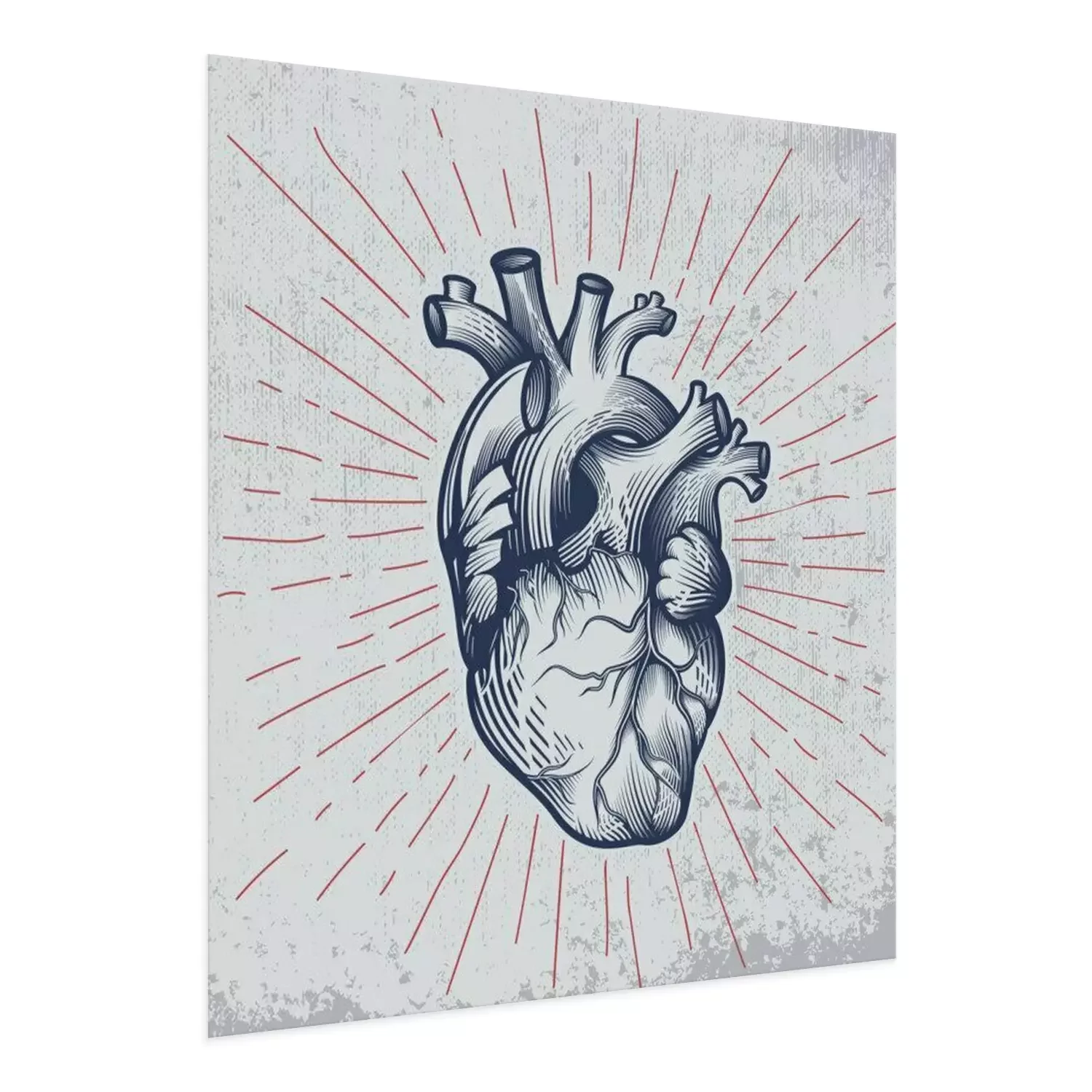 Poster Menselijk hart in gravuretechniek met sterstralen op grungeachtergrond. Anatomisch correcte hand getrokken lijntekeningen. Tattoo, t-shirt print ontwerp. Vector illustratie