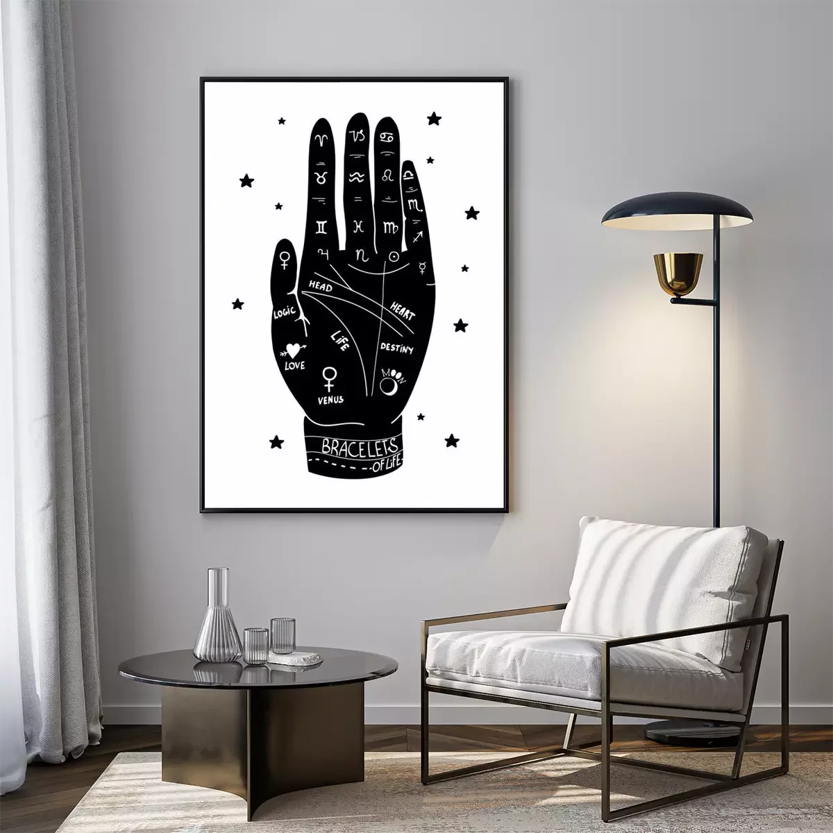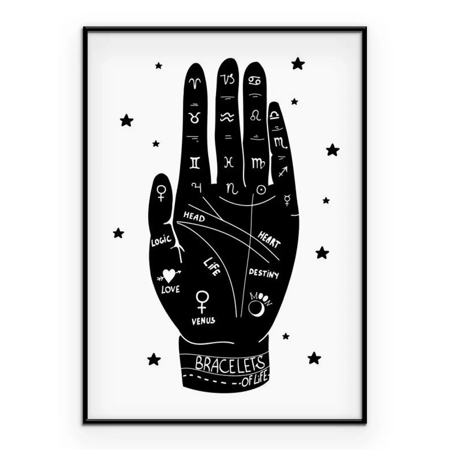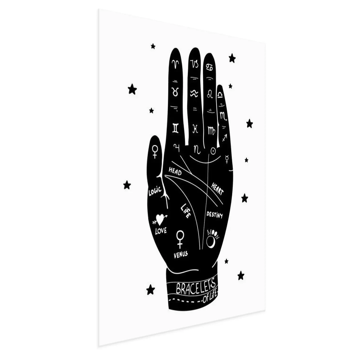 Poster Menselijke hand en lijnen gebruikt voor waarzeggerij