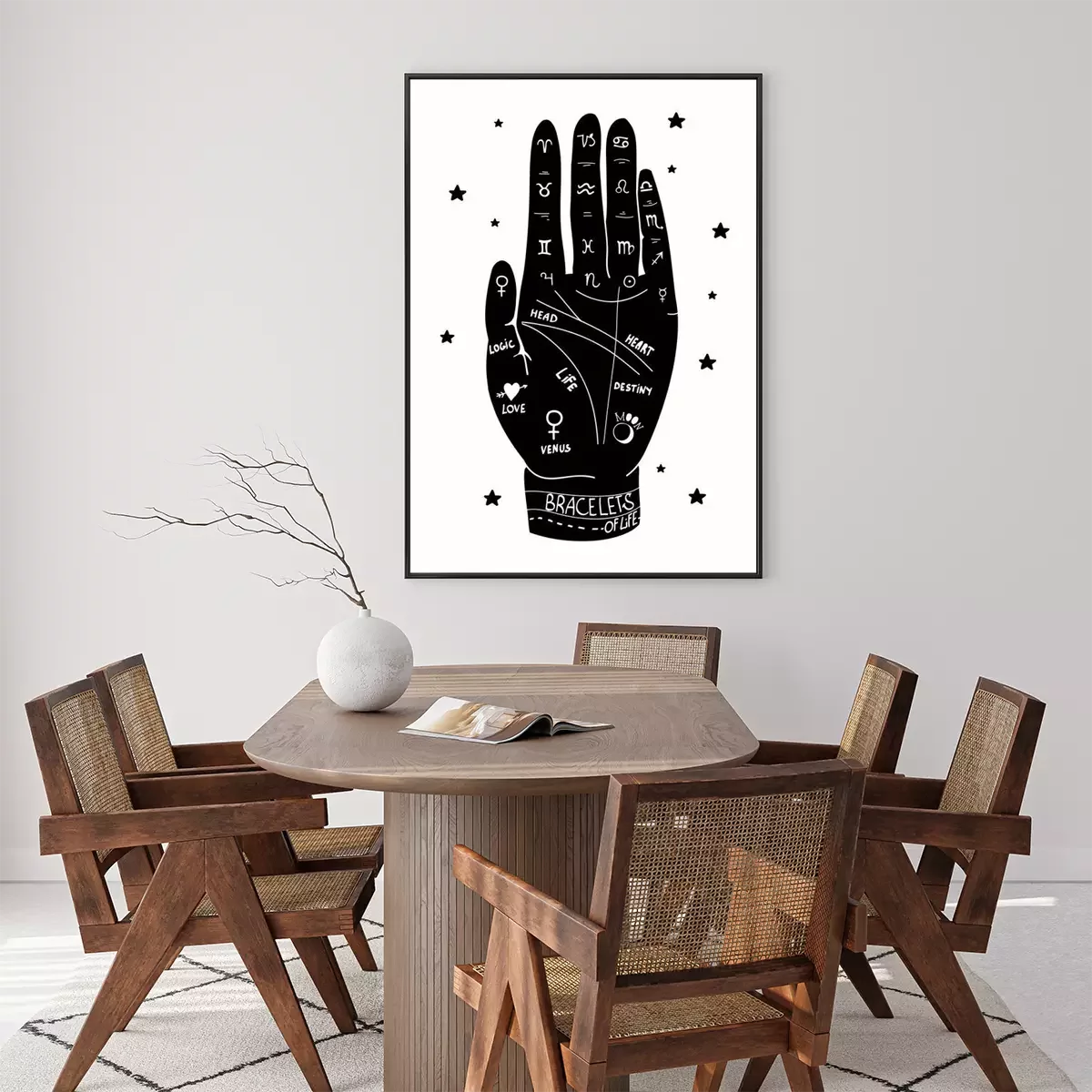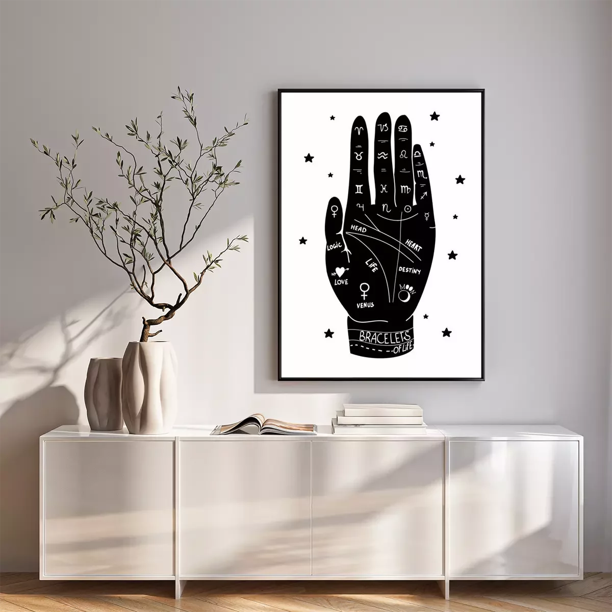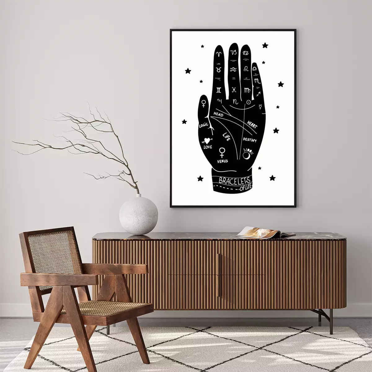 Poster Menselijke hand en lijnen gebruikt voor waarzeggerij