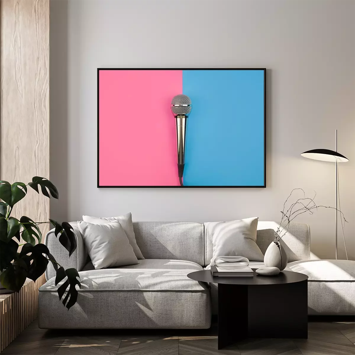 Poster Microphone for karaoke on a pink-blue background.