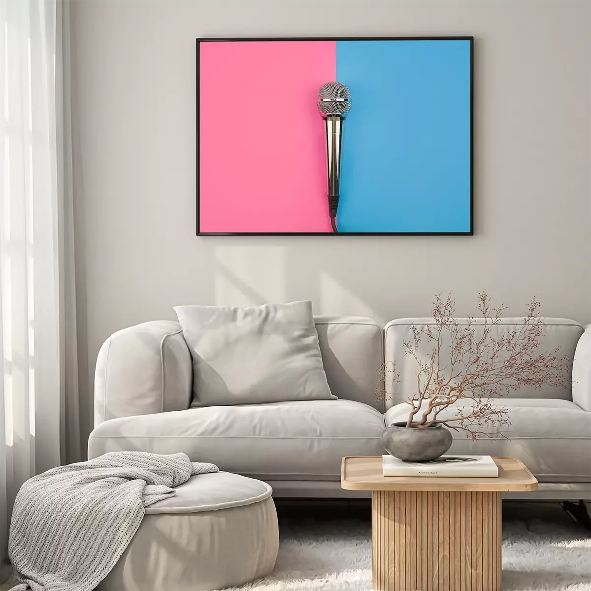 Poster: Microphone for karaoke on a pink-blue background.