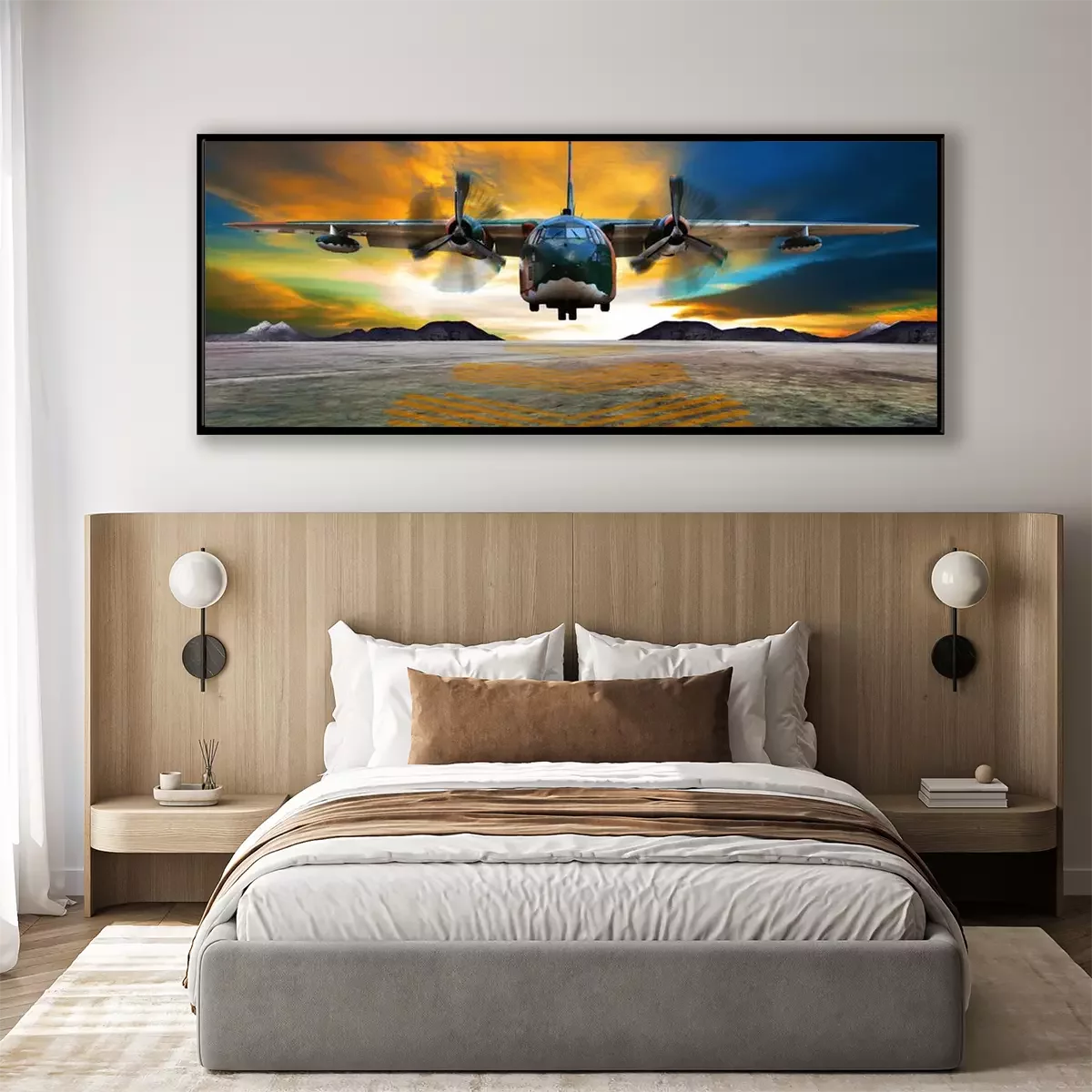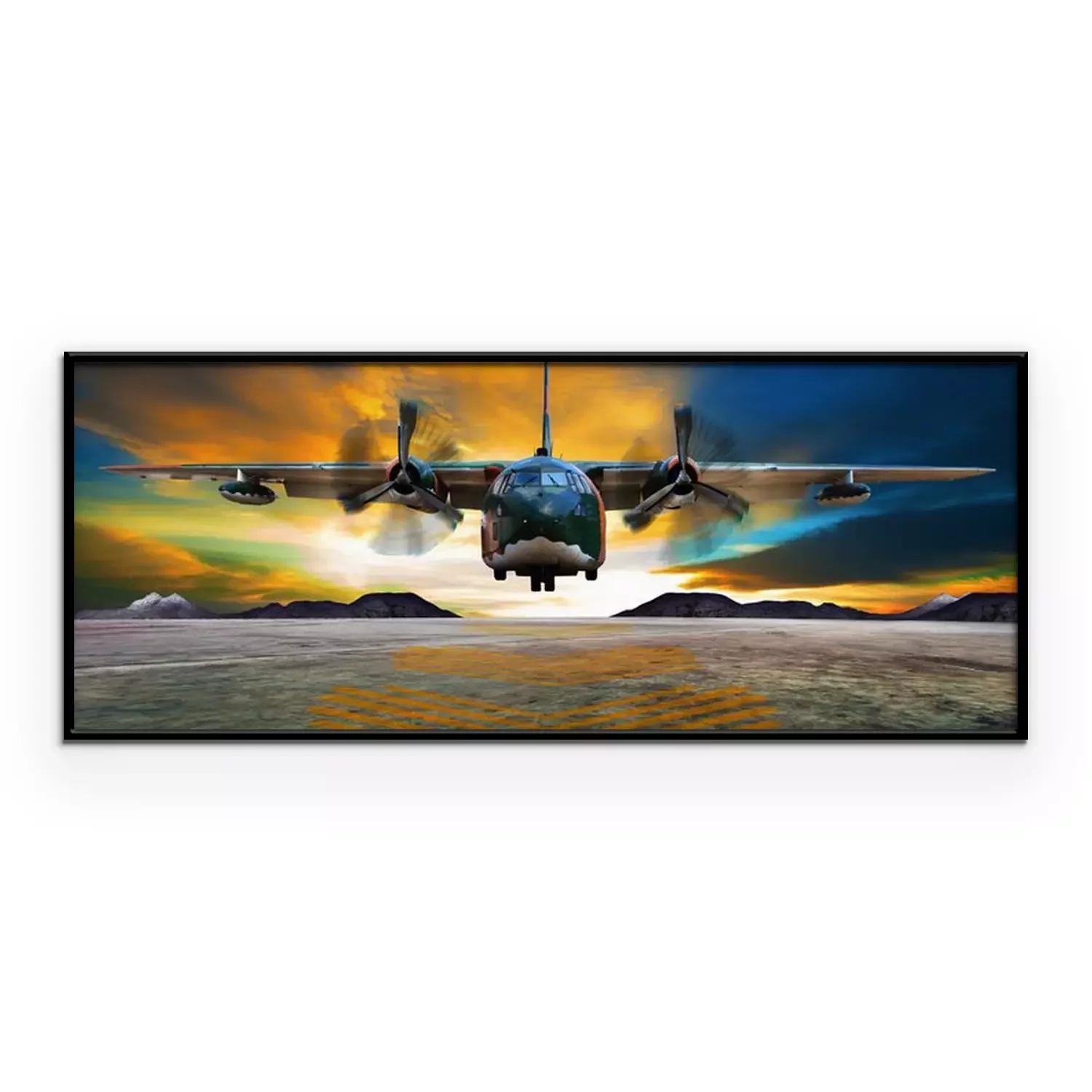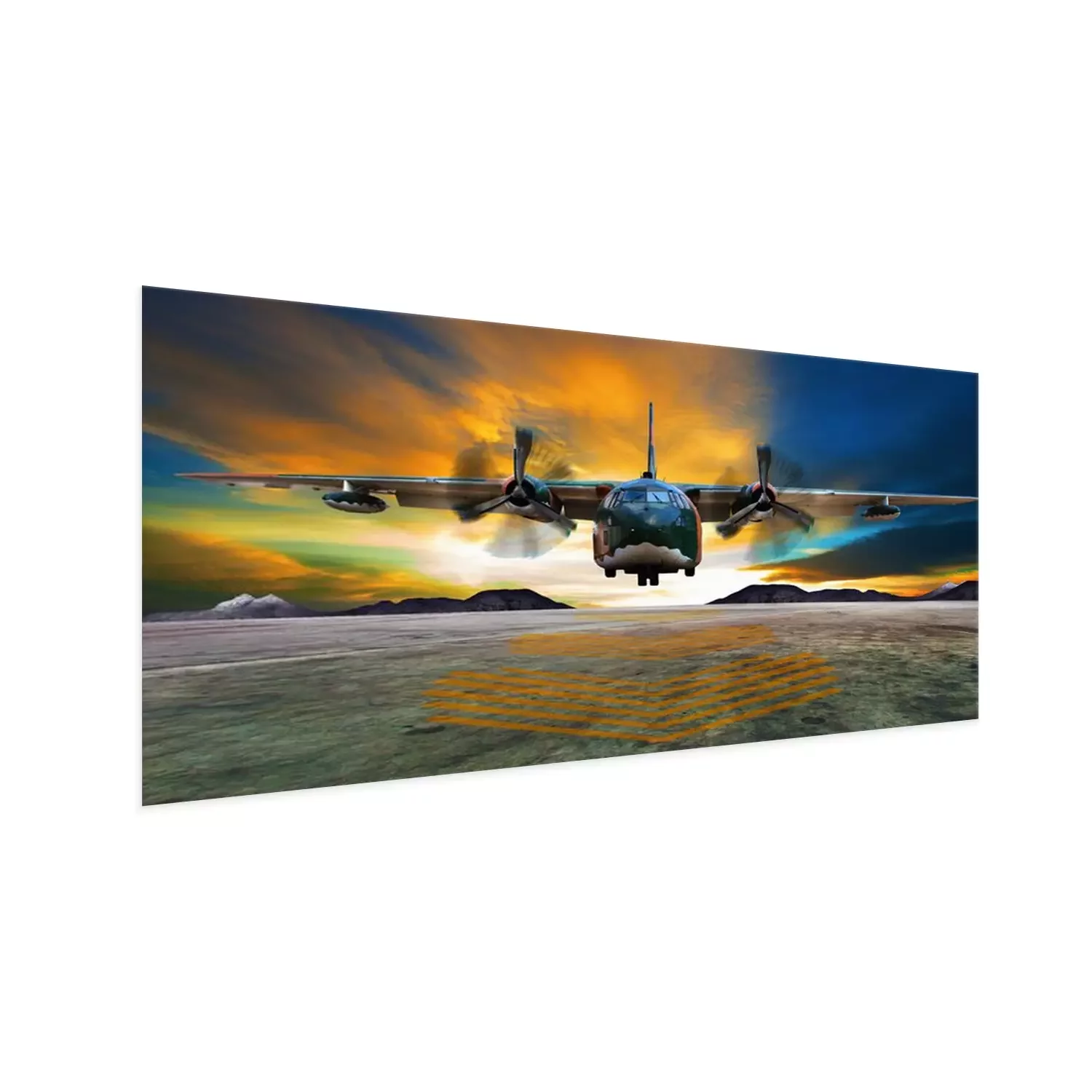 Poster: military plane landing on airforce runways against beautiful dus
