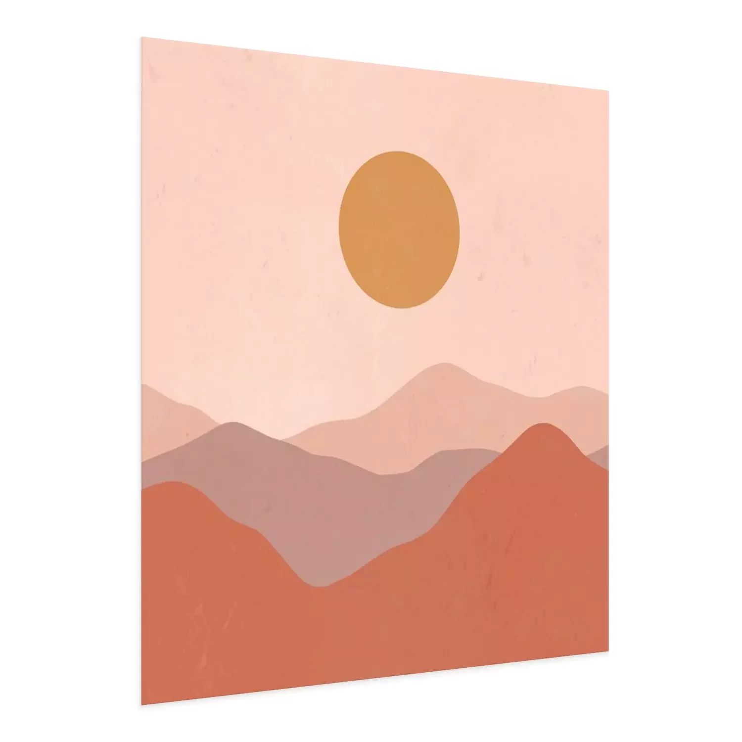 Poster Minimalist landscape mountain sun texture mid-century modern illustration