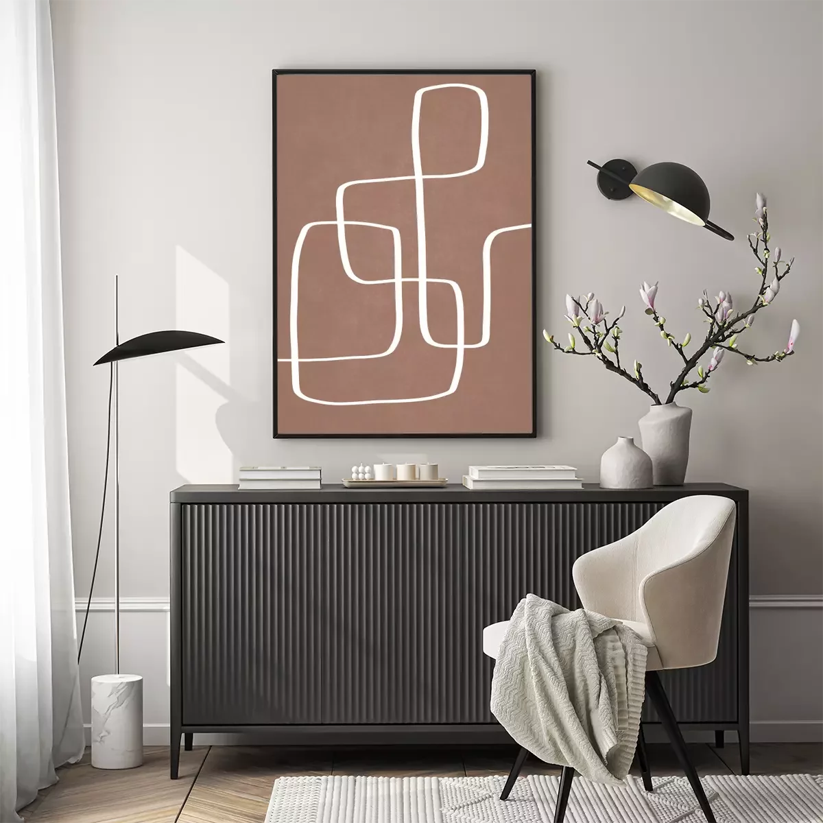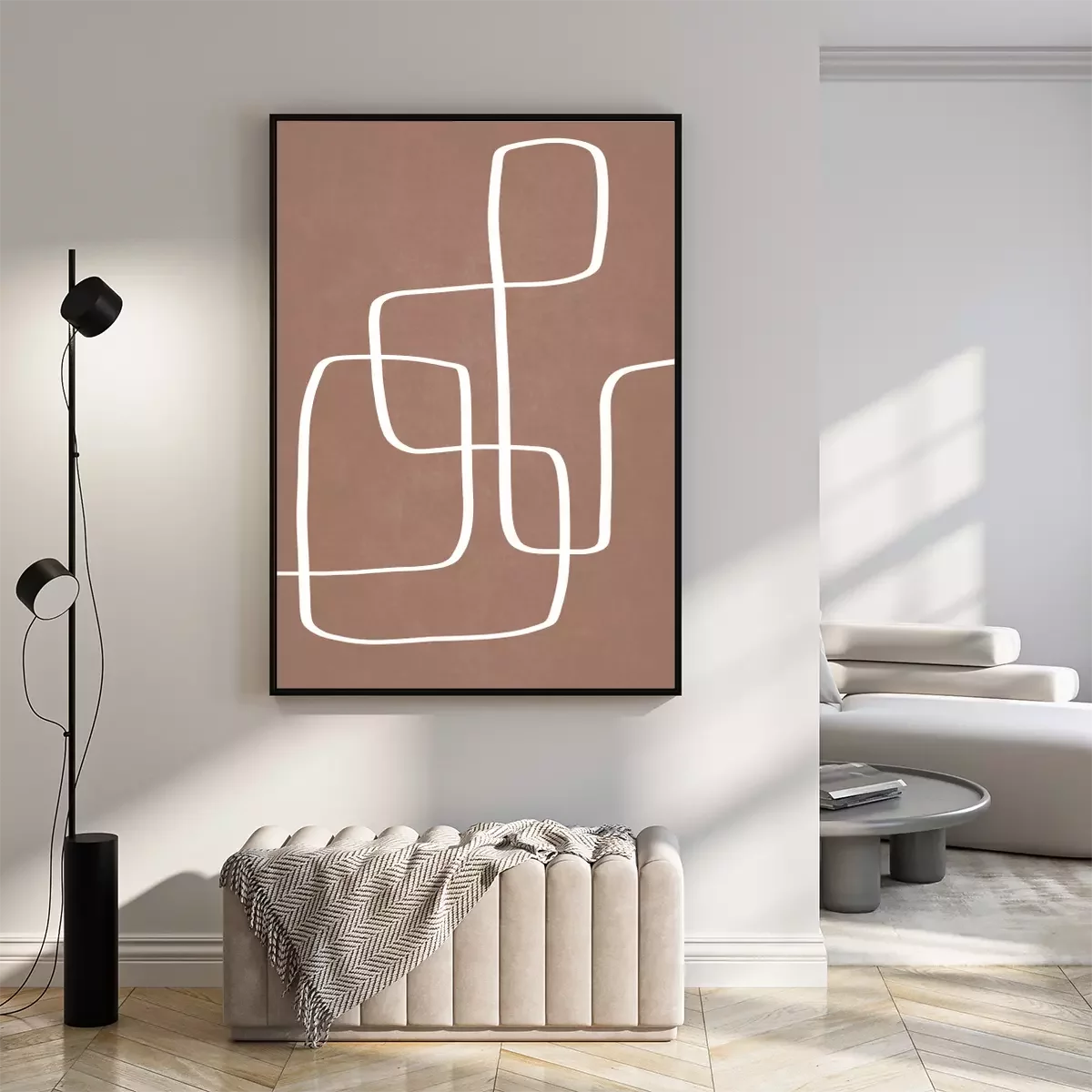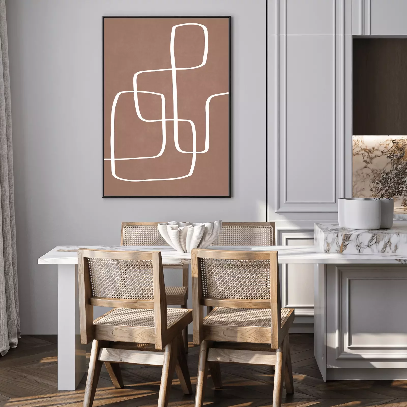 Minimalist pattern white lines on mocha mousse background