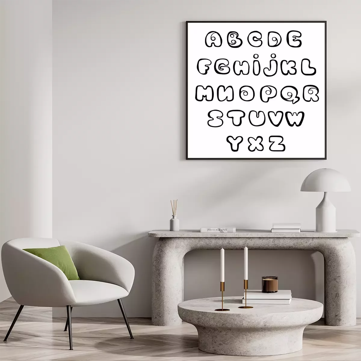 Poster: Minimalistisch alfabet op een witte achtergrond