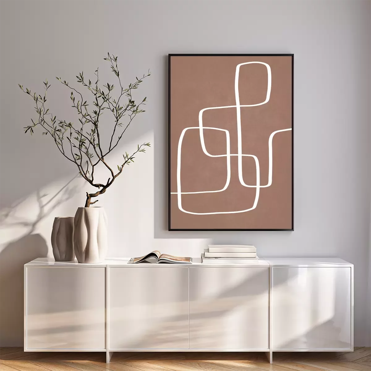 Poster: Minimalistisch patroon op een achtergrond in mocha mousse kleuren