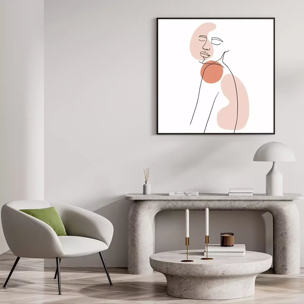 Lijntekening van een vrouw met kleuraccentenProbleemloze bezorging verzorgd door vertrouwde vervoerders