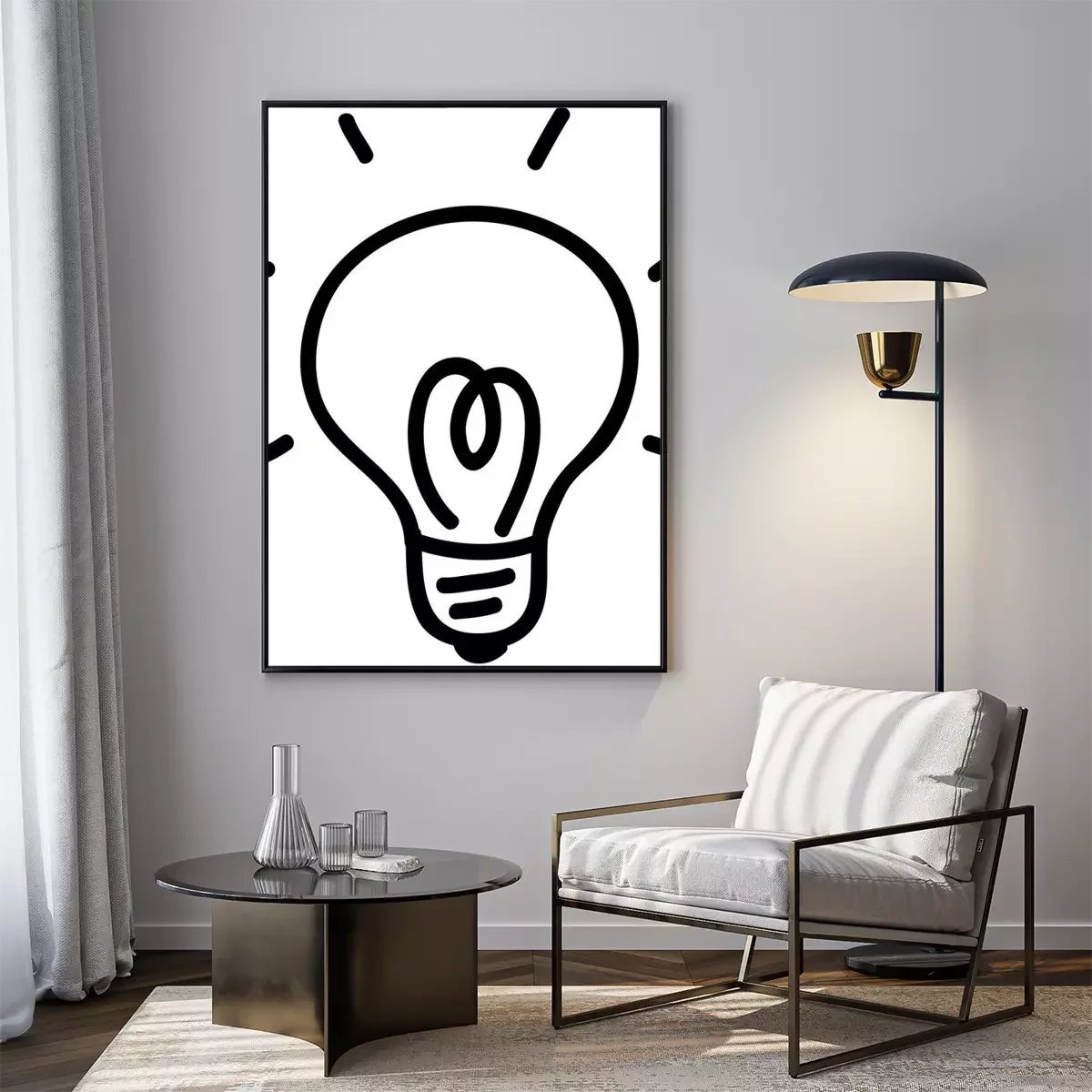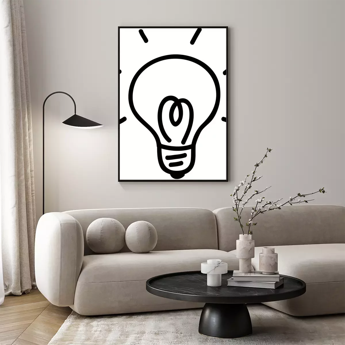 Poster Minimalistische gloeilampafbeeldingen in zwart en wit