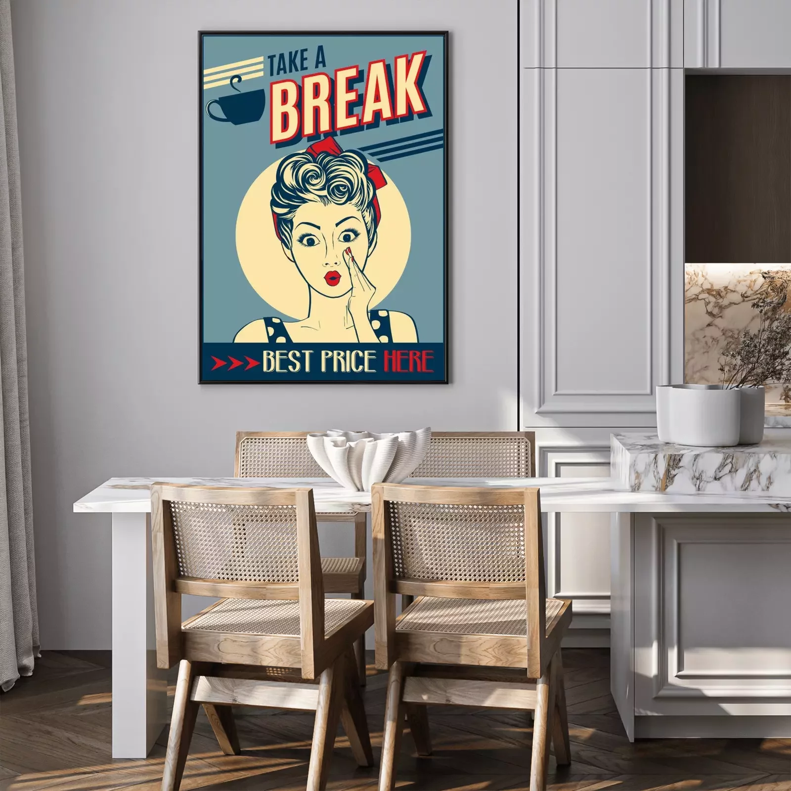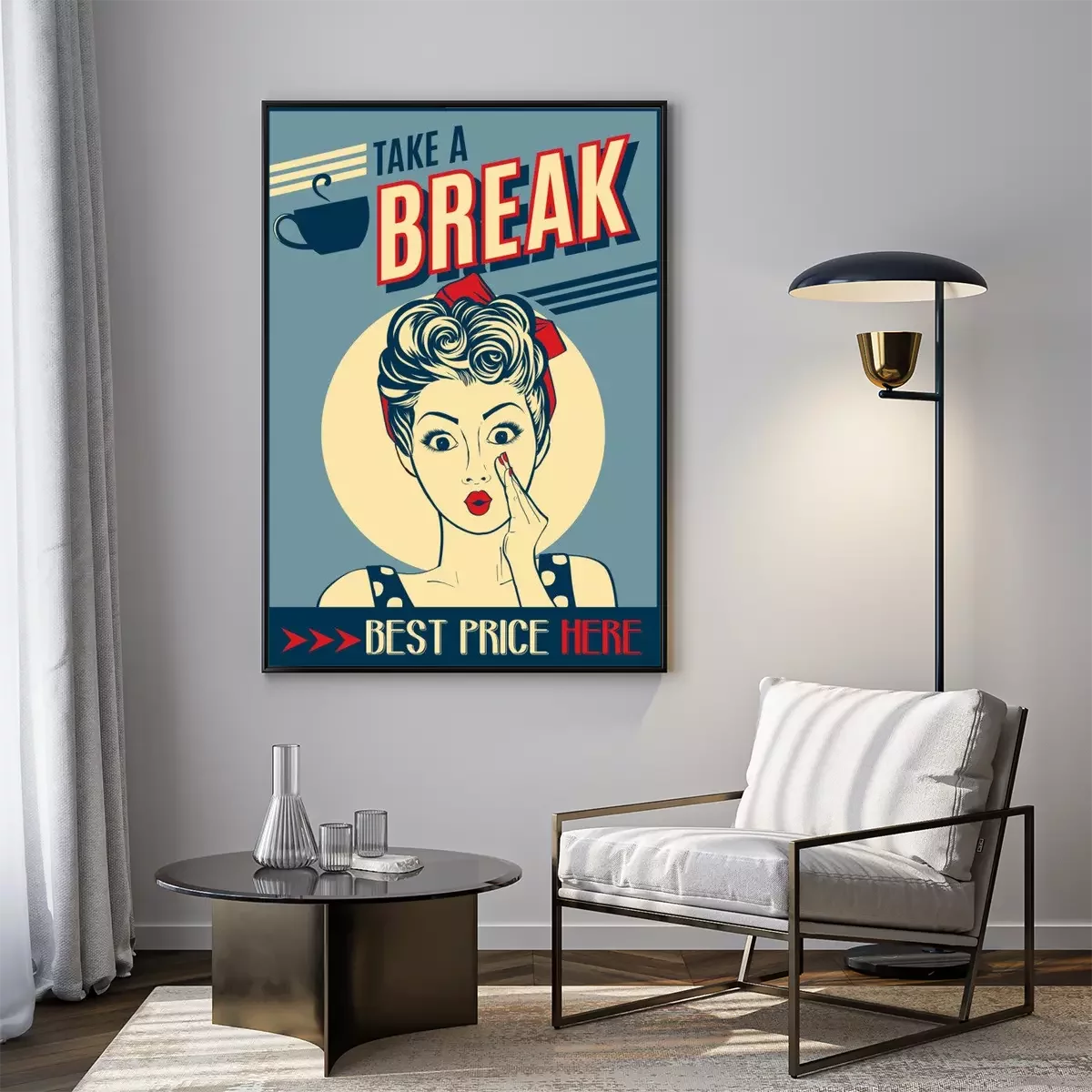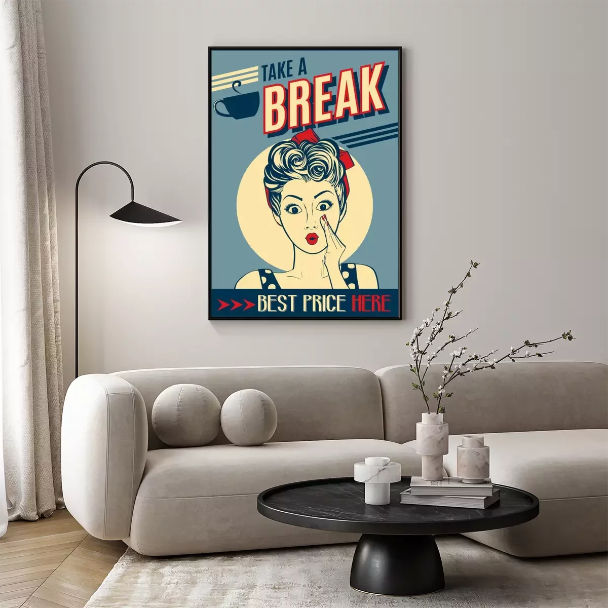 reclame koffie retro poster met pop-art vrouw