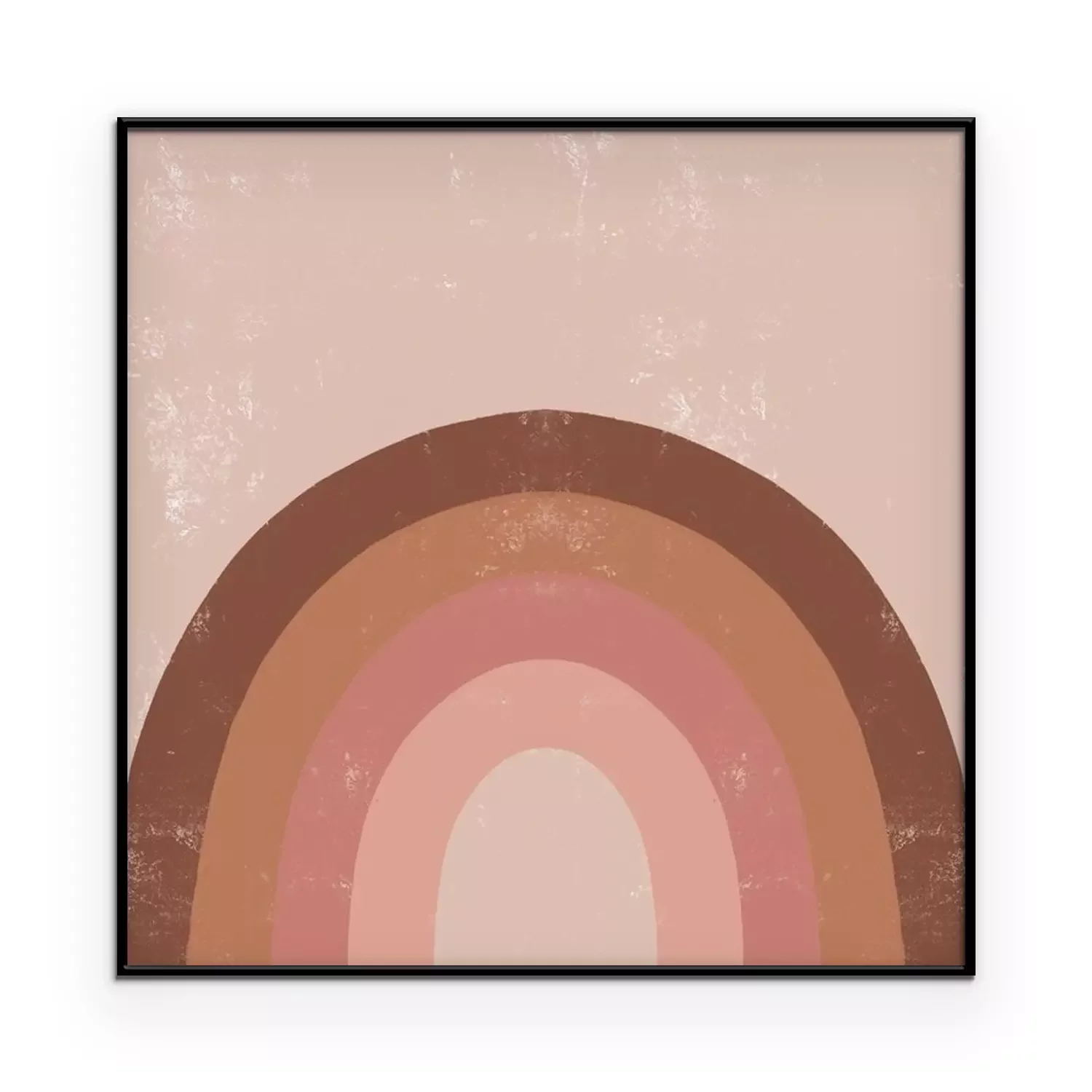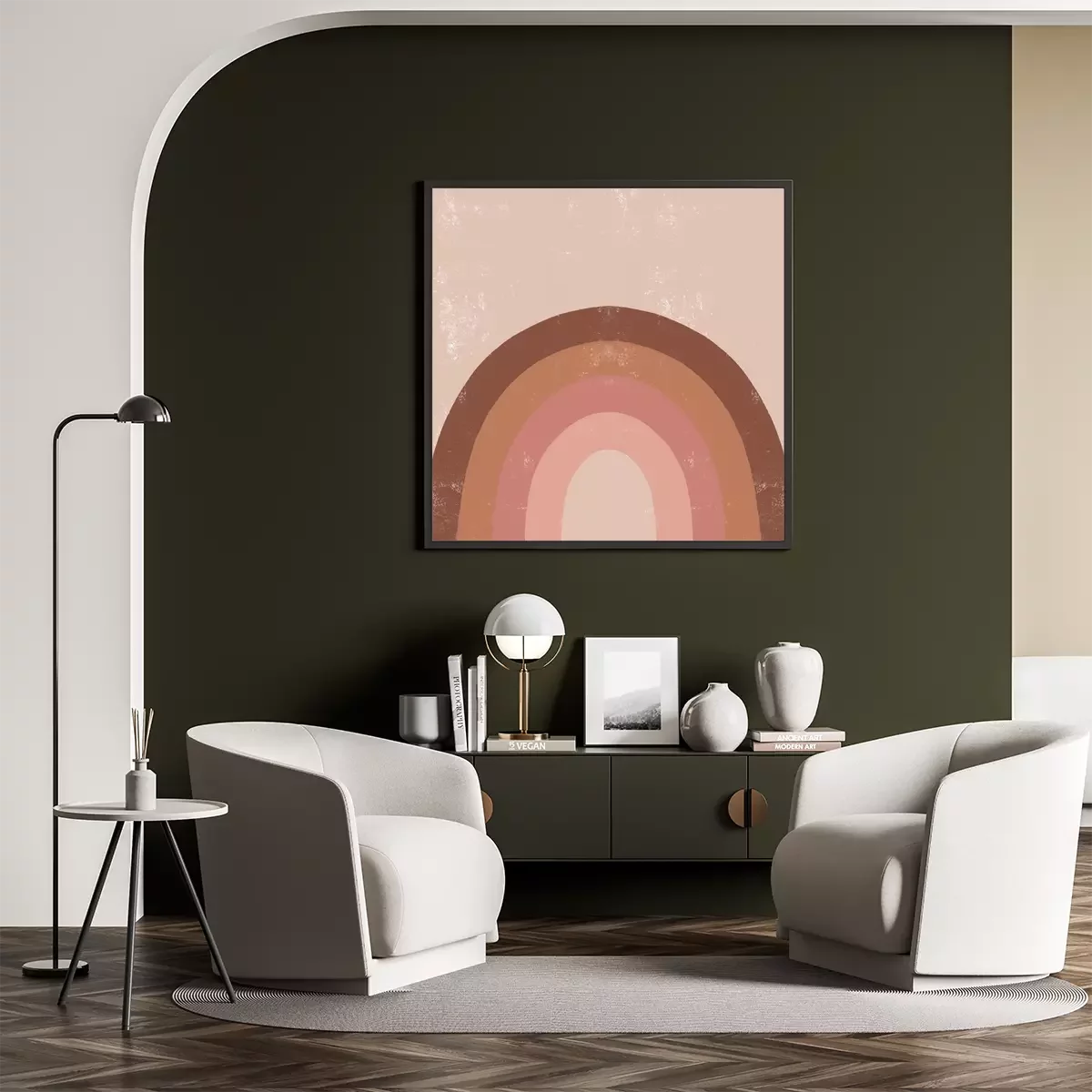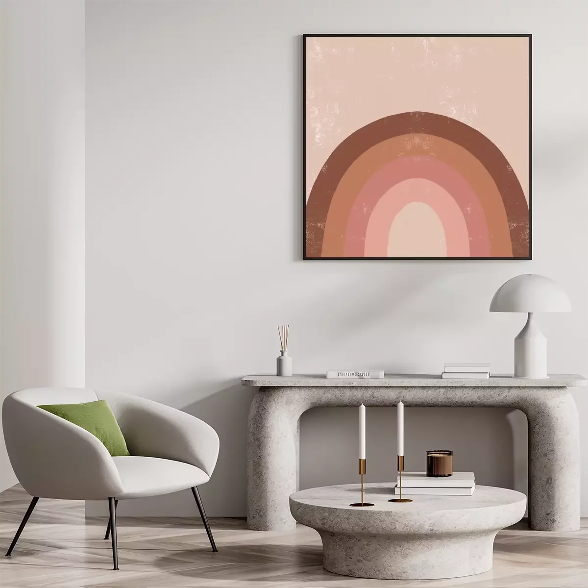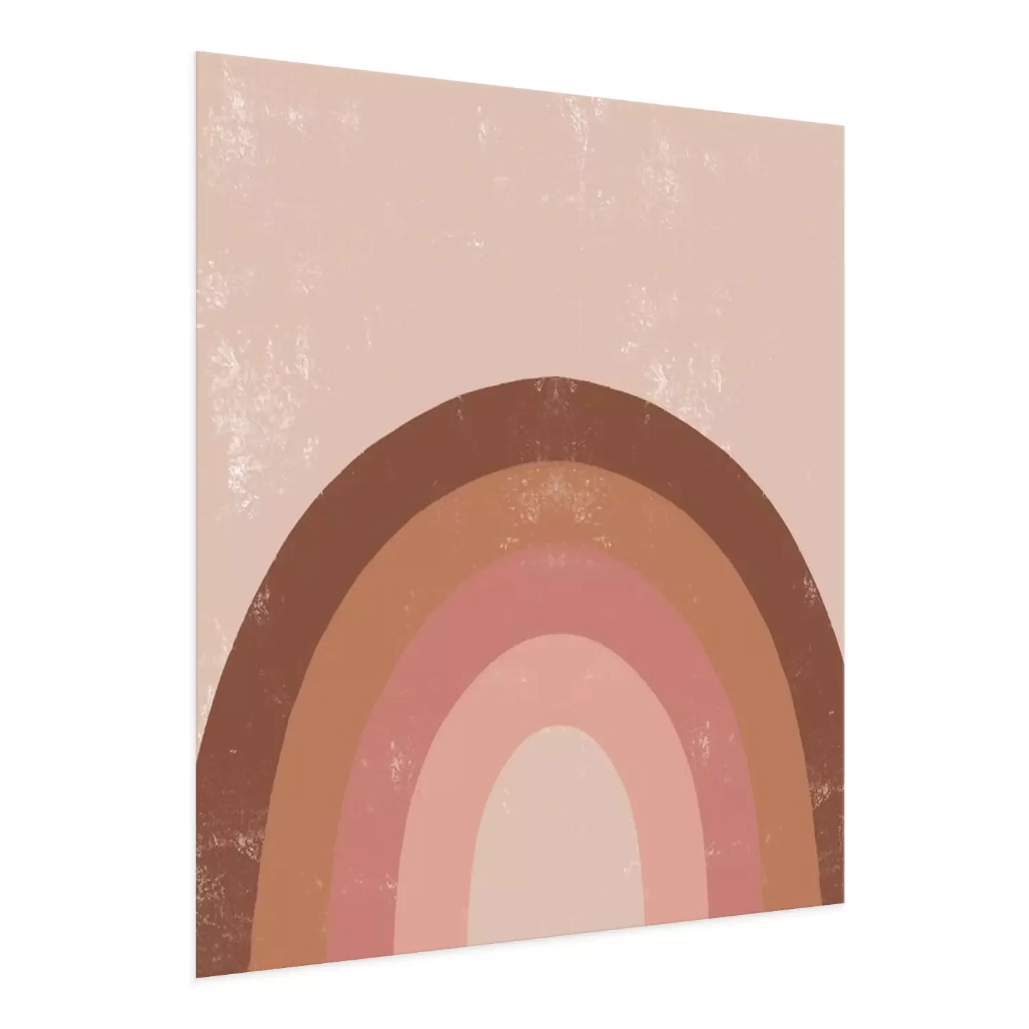 Poster: Modern abstract art with textured rainbow. Minimalist boho style for design and decoration. Hand drawn illustration in pastel colors. Perfect for home and nursery decor.