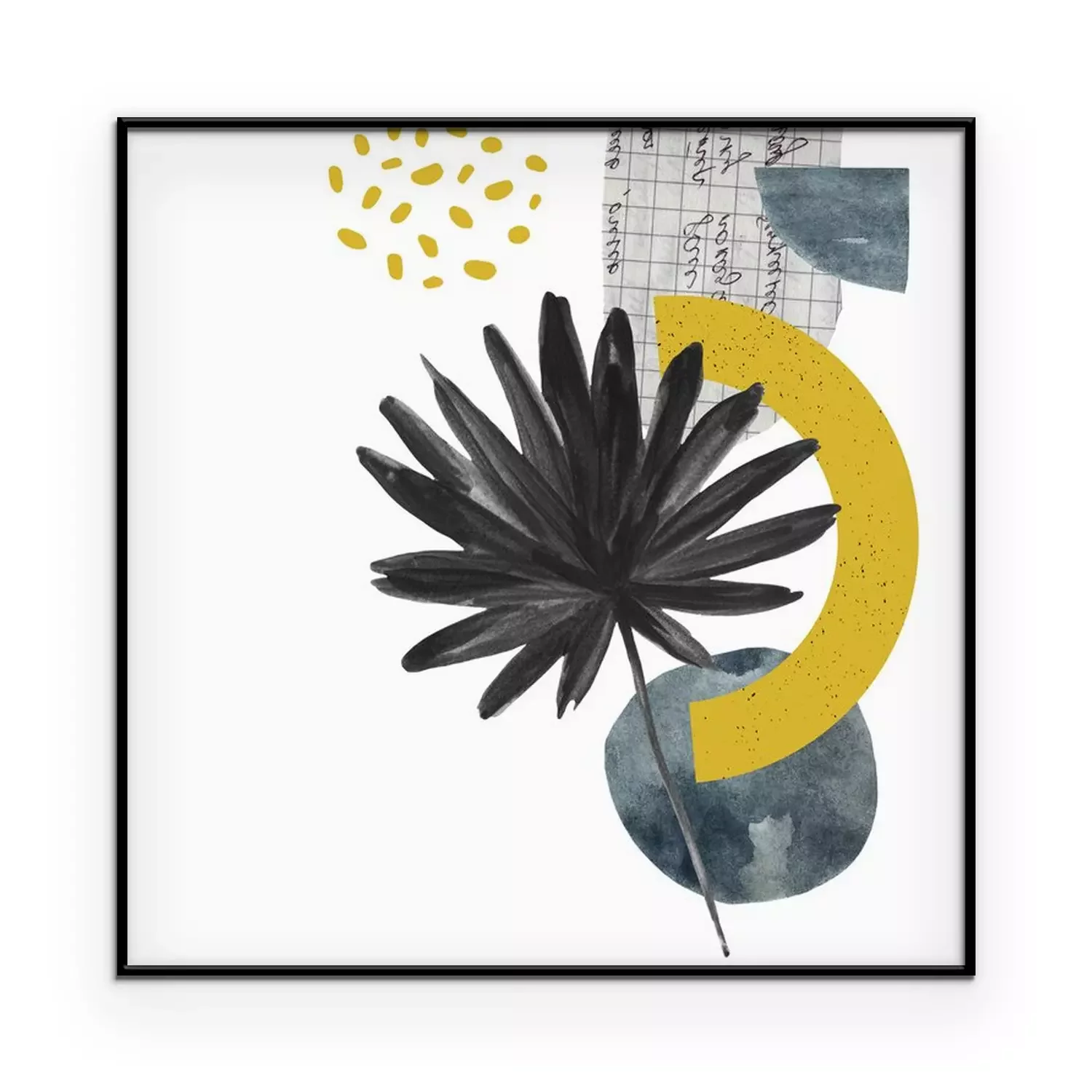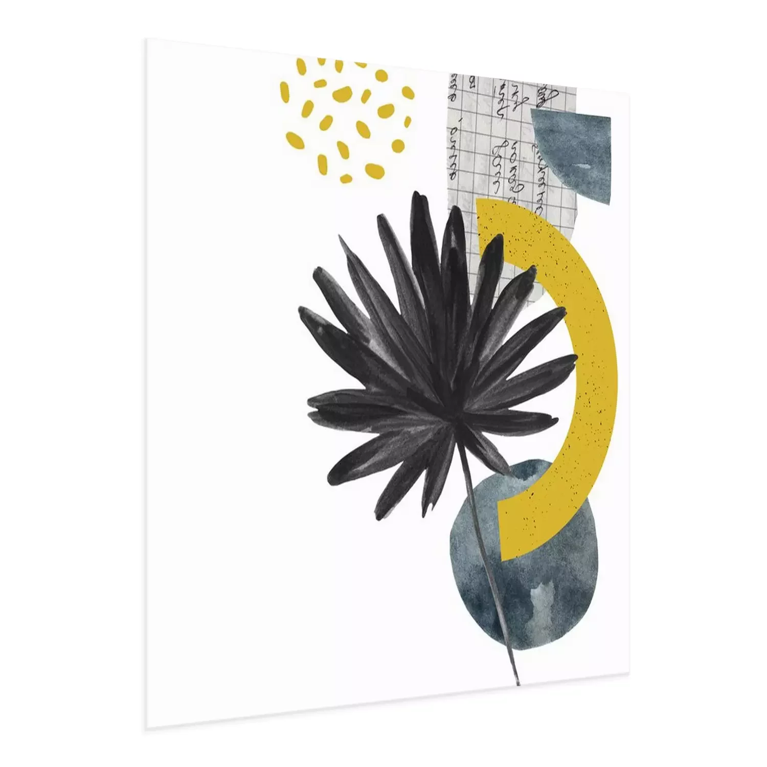 Poster Modern art illustration with tropical palm leaf, grainy grunge textures, doodles, minimal elements