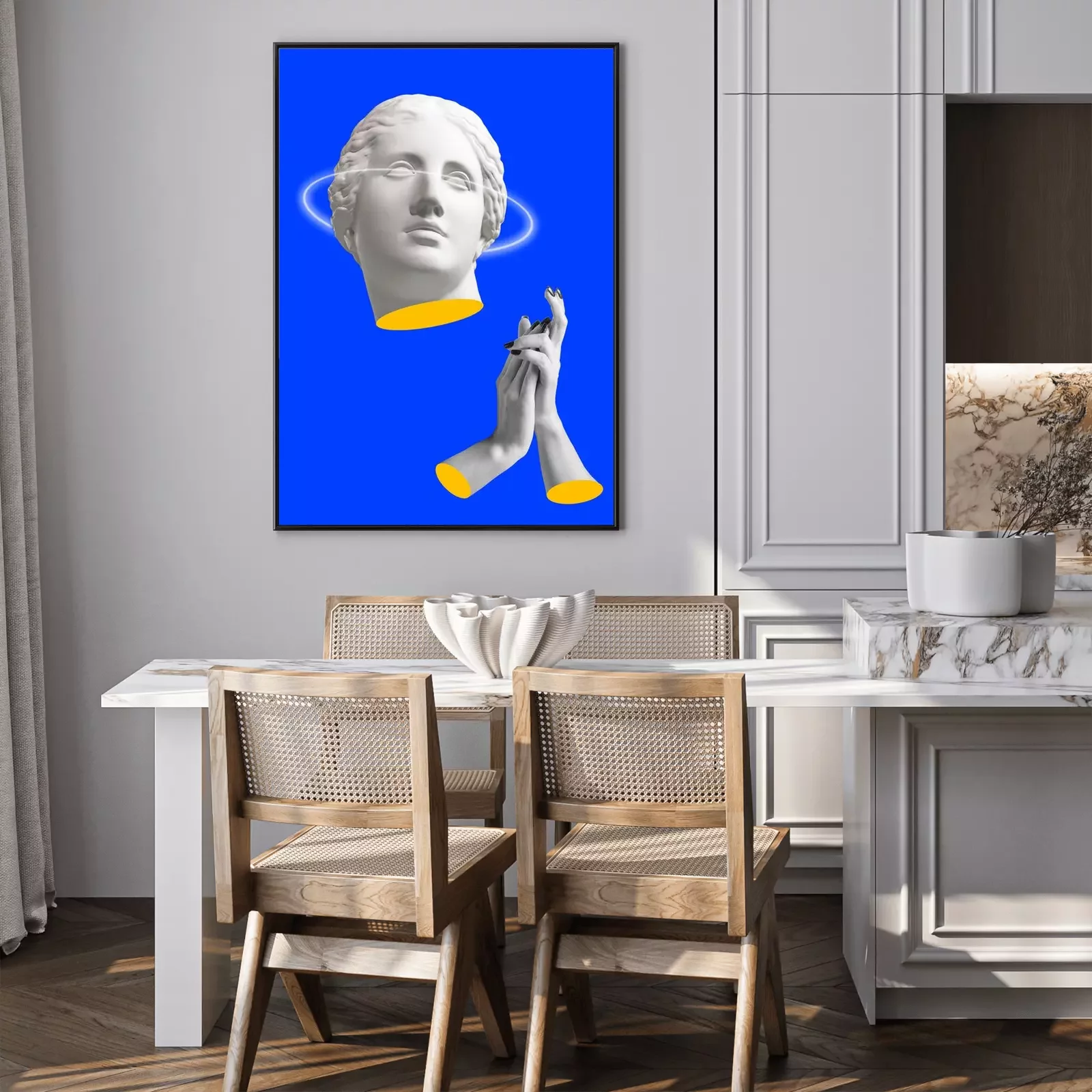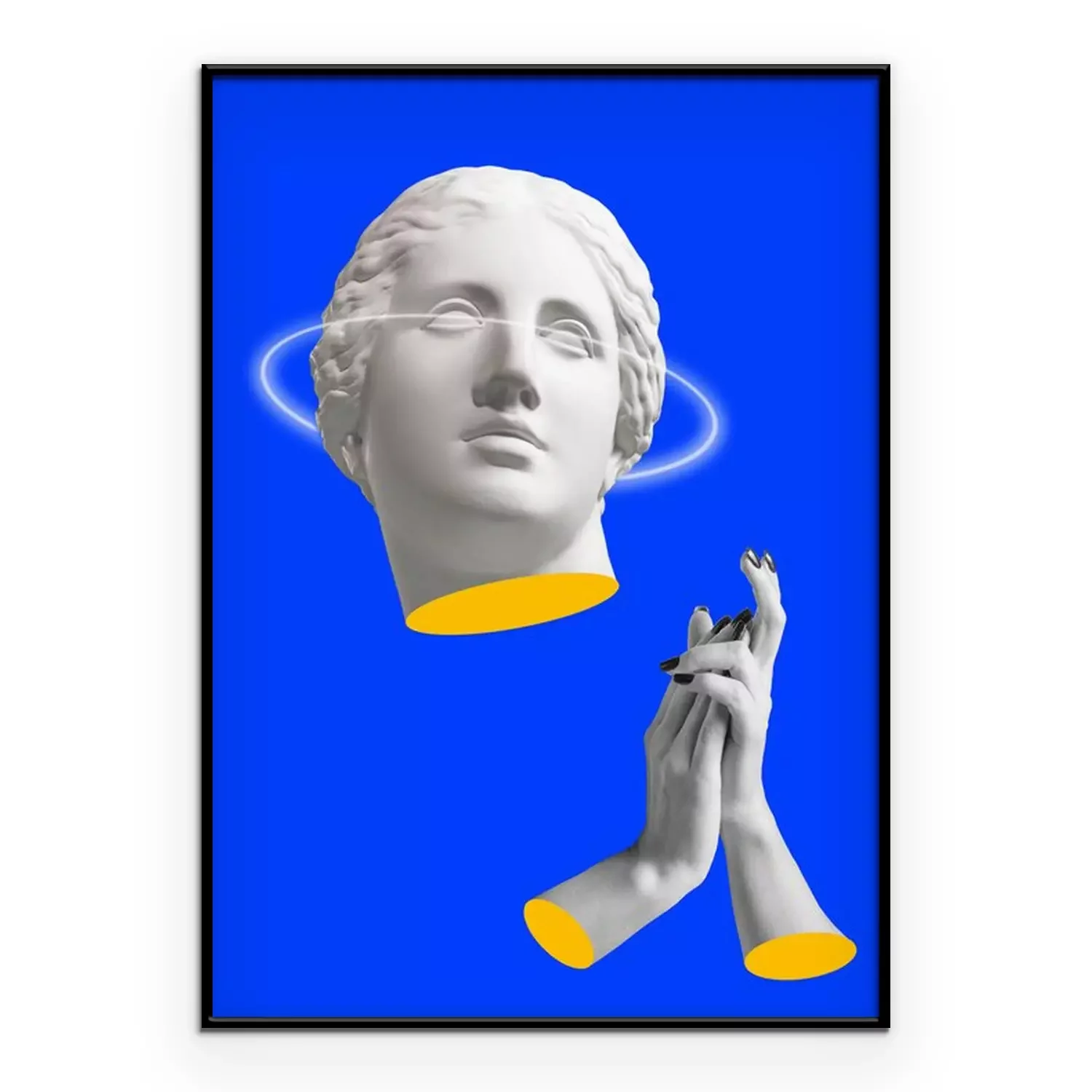 Poster: Modern conceptual art poster with ancient statue of bust of Venus. Collage of contemporary art.
