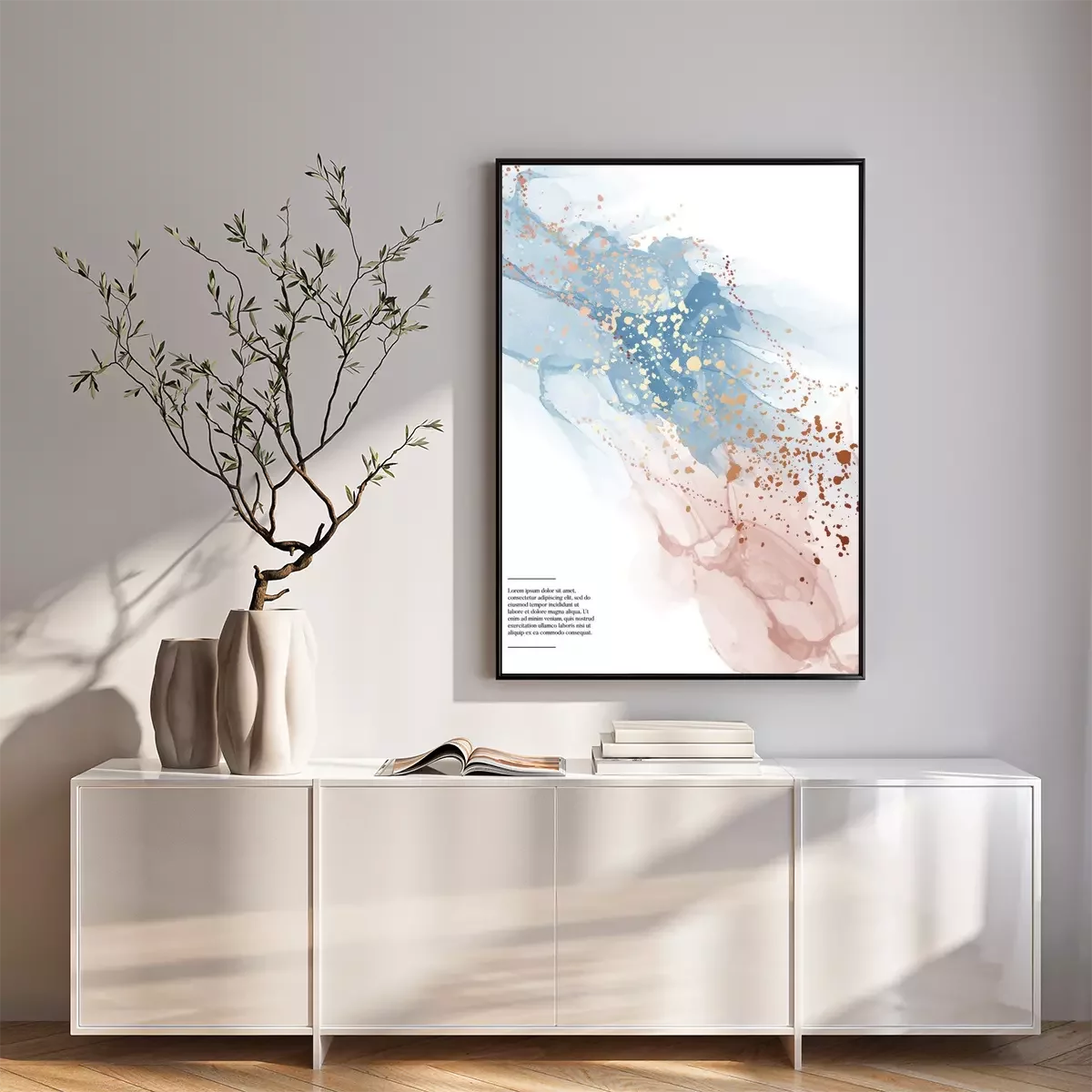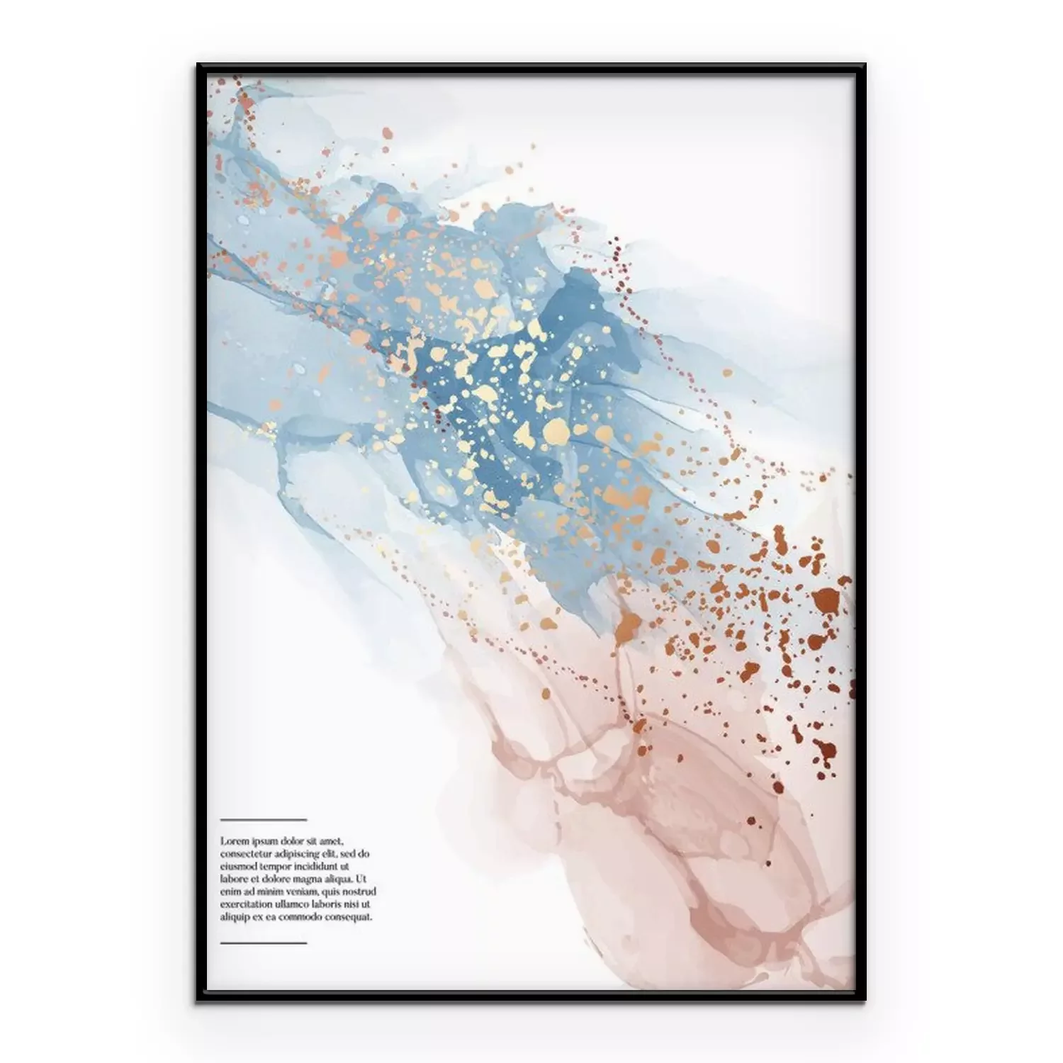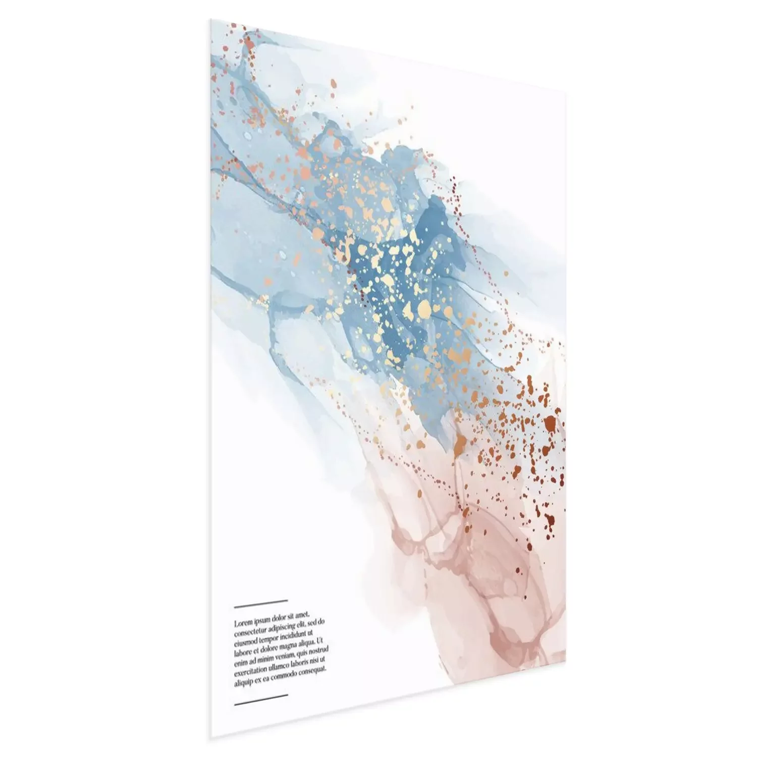Poster Modern watercolor blue pink ink with gold glitter splashes. Alcohol ink modern texture in vector. Fluid soft design template, elegant banner