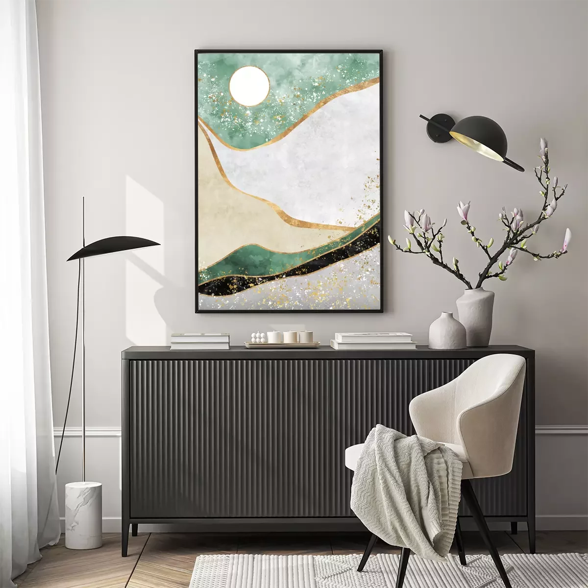 Deze posters zijn gedrukt in zeer hoge resolutie (1440 dpi) op papier van uitstekende kwaliteit. Het gebruik van HP Latex-technologie zorgt voor jarenlang levendige kleuren die bestand zijn tegen de schadelijke effecten van UV-straling. Posters zien er geweldig uit in aluminium lijsten met een plexiglas plaat, wat het een elegant karakter geeft. Premium posters worden gedrukt op halfglanzend papier.