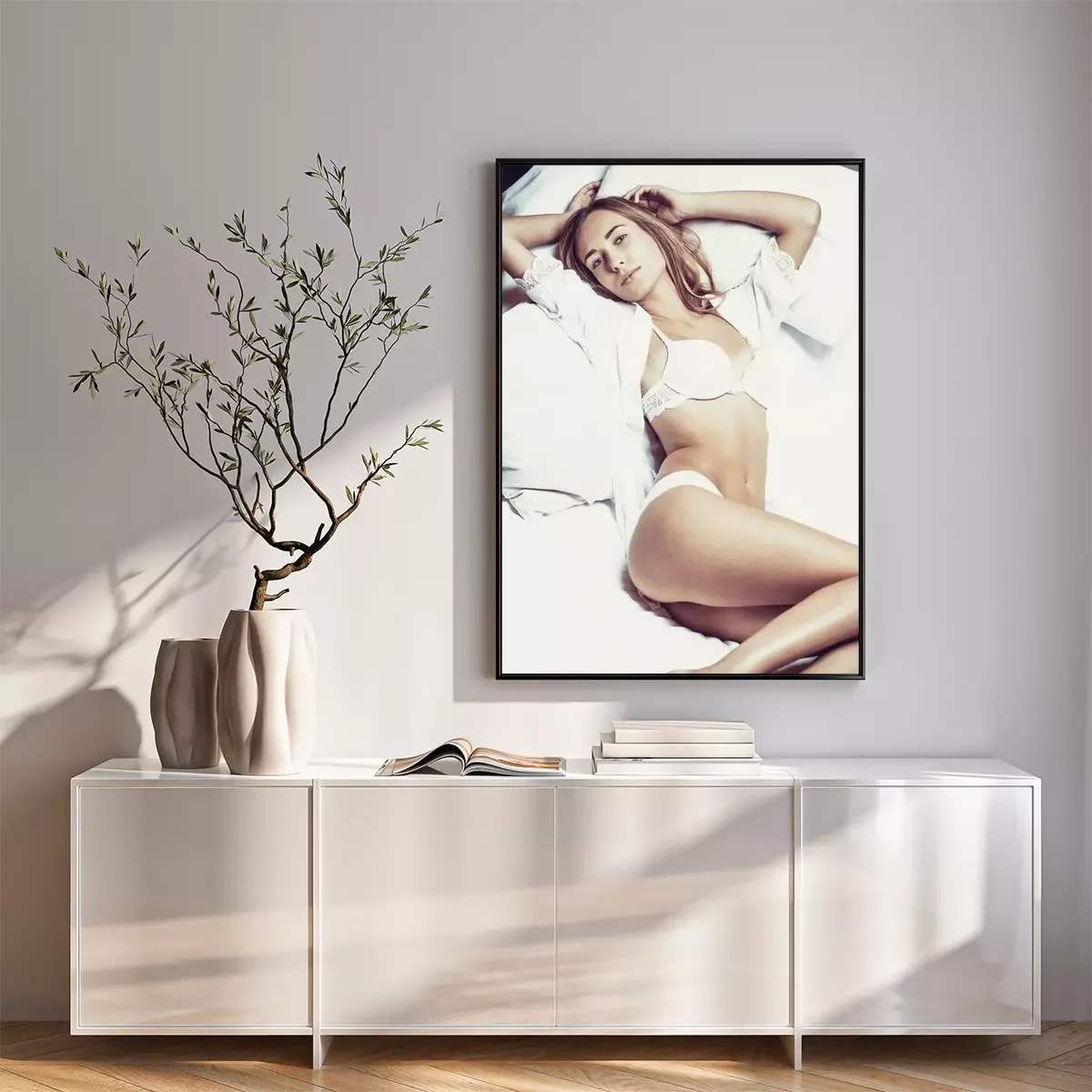 Poster Modieuze foto van de jonge sexy vrouw, gekleed in witte lingerie, geweldig lichaam.